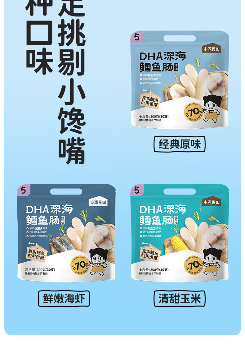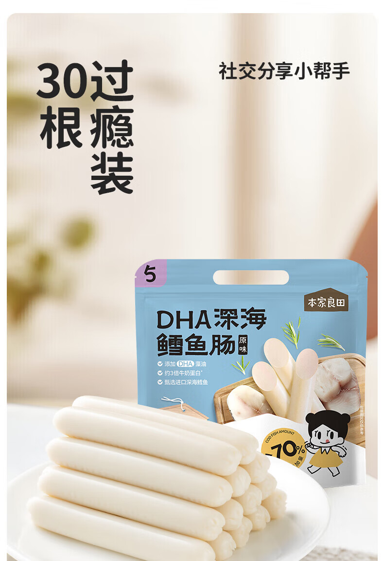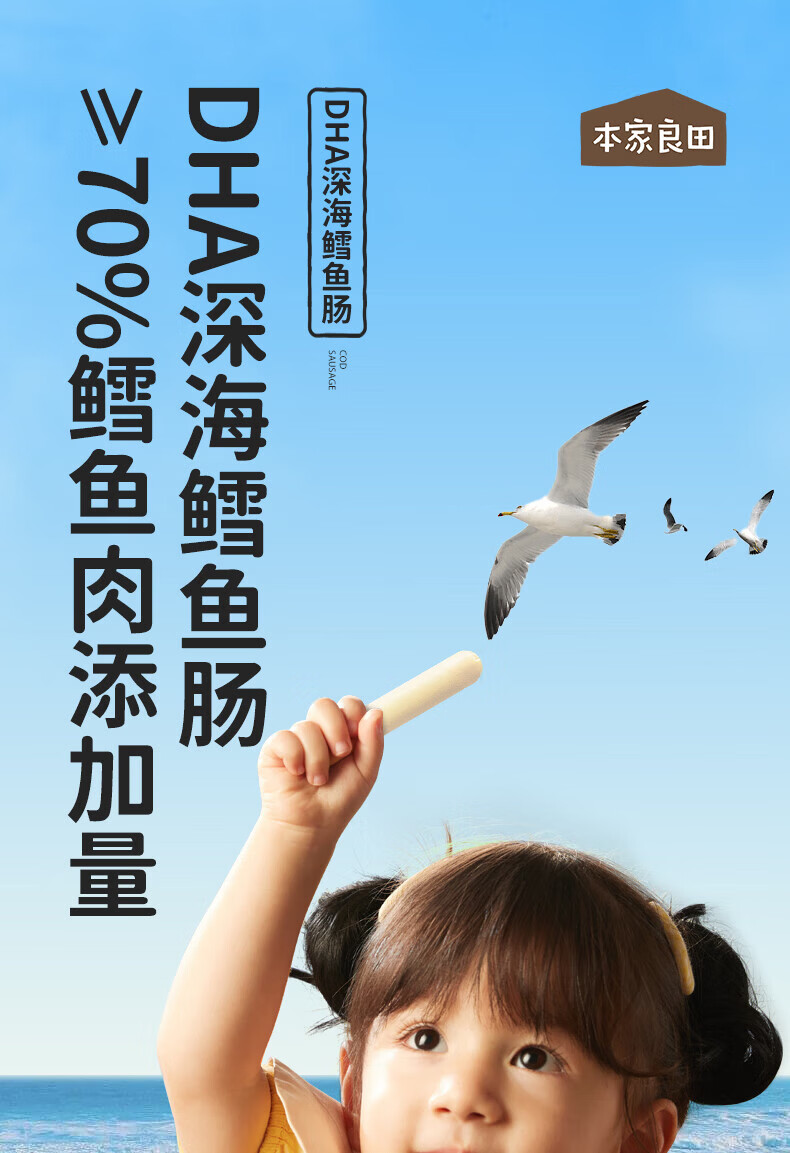 本家良田DHA深海鳕鱼肠300g儿童零食肉肠藻油无添加白糖送儿童宝宝辅食谱 DHA深海鳕鱼肠 原味300g