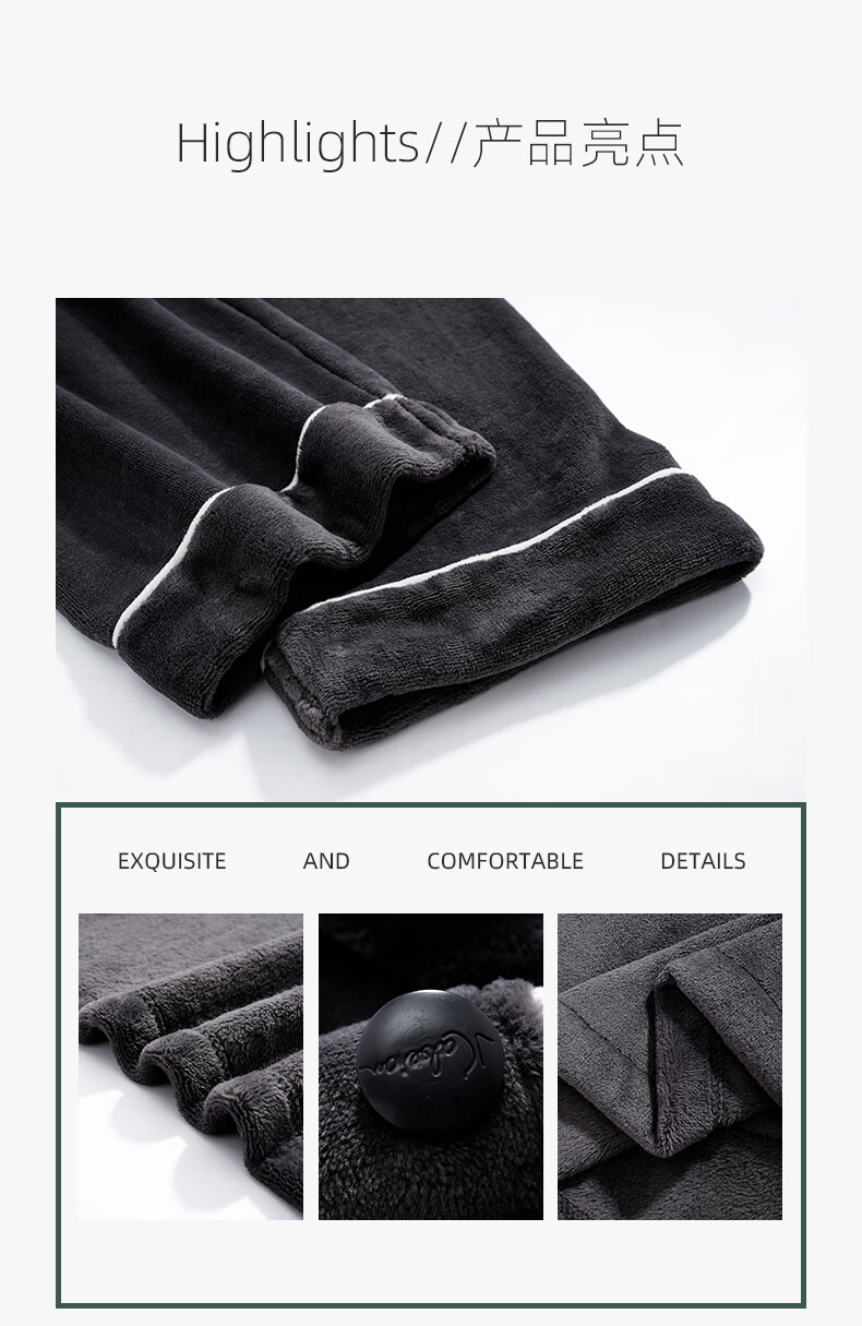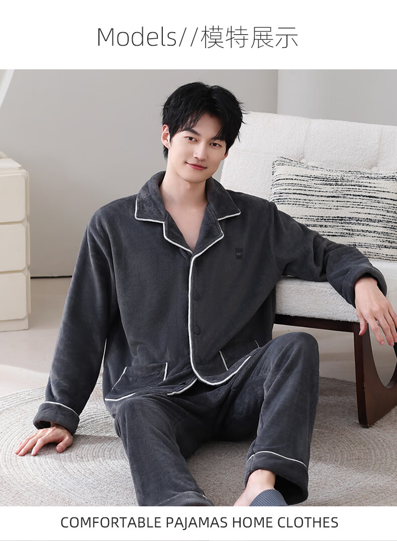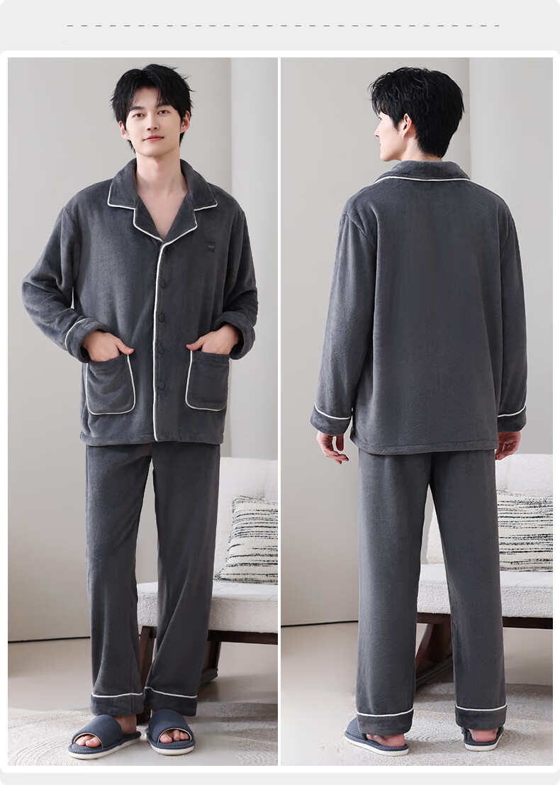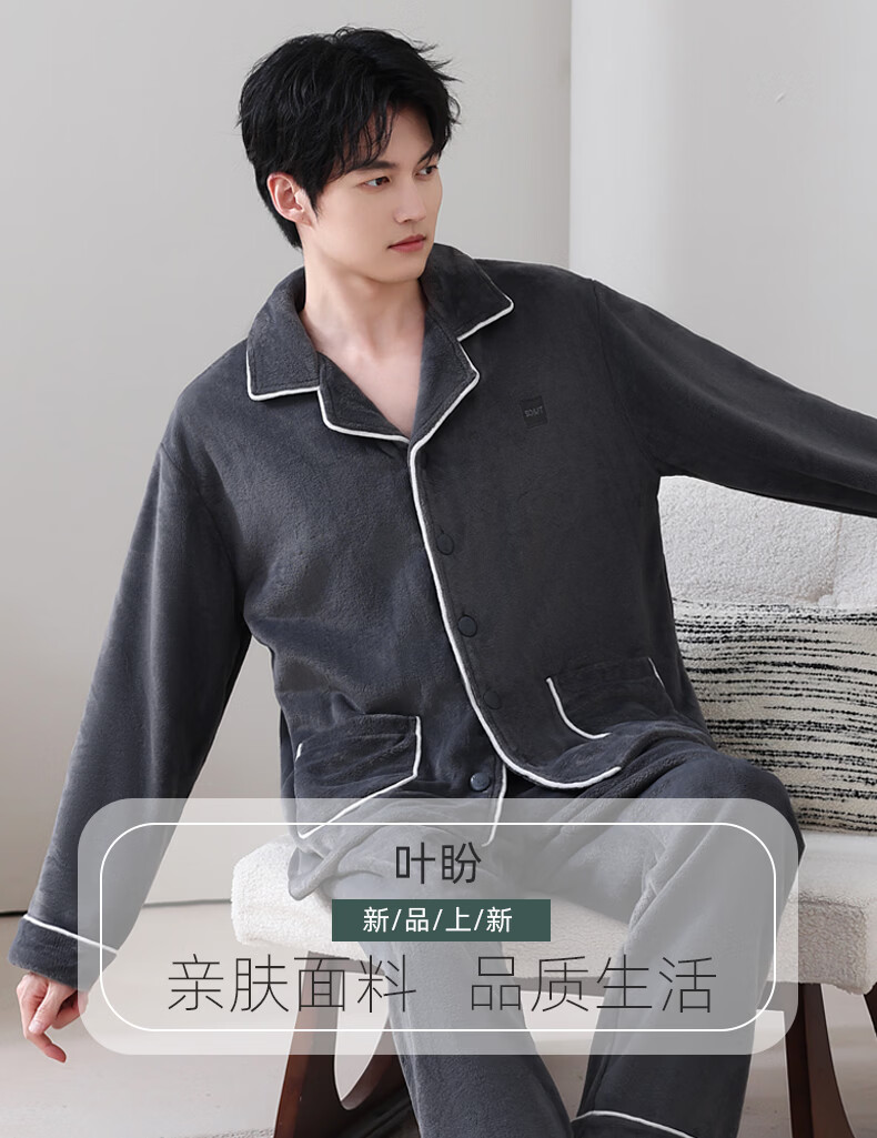 叶盼(yepan)【保暖】法兰绒睡衣男冬季加绒加厚大码高级感男士家居服保暖套装 5905-黑灰 L (170) :建议100-135斤穿着