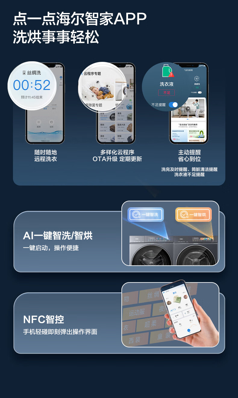 海尔(Haier)滚筒洗衣机全自动带烘干洗烘一体 12公斤大容量超薄 家电国家补贴京东自营659H 一级能效 洗羽绒服
