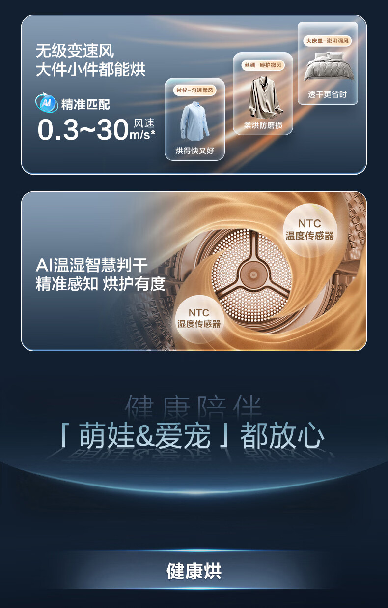 美的(Midea)高速电吹风 39亿等离子护发吹风机 家用负离子吹风筒 儿童可用 智能数显屏FG505蓝 节日/生日礼物