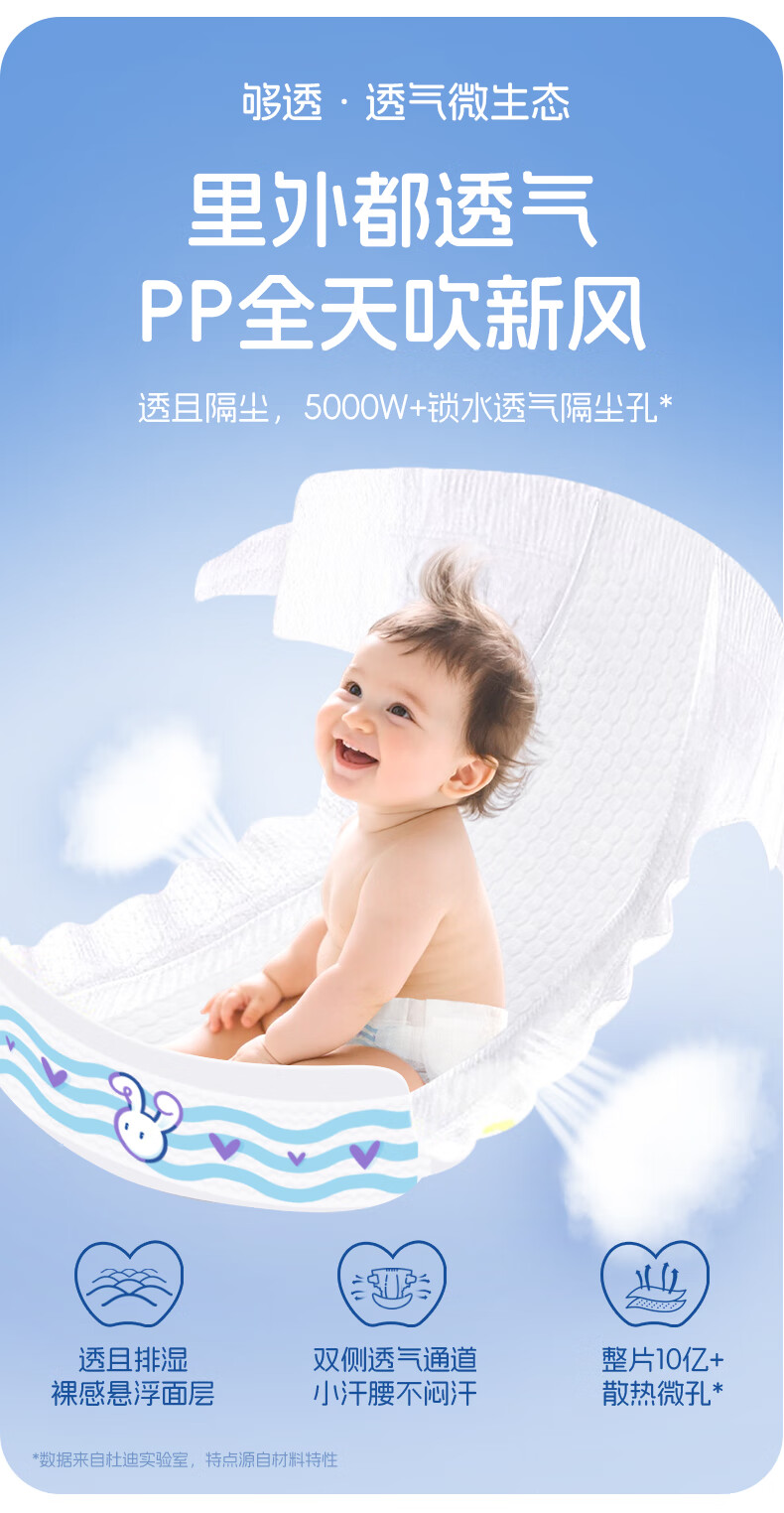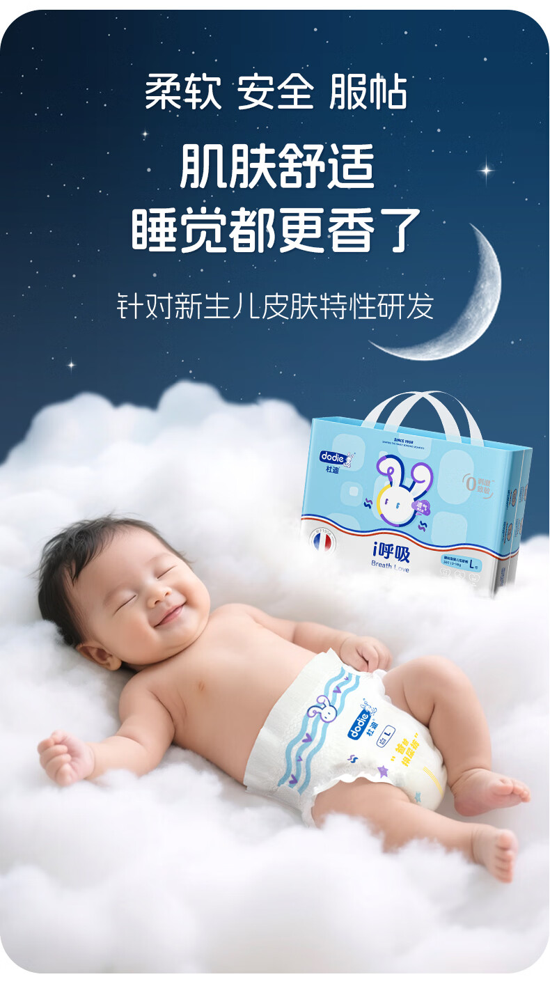 dodie杜迪i呼吸婴儿纸尿裤儿童尿不湿M码42片超薄透气男女宝通用