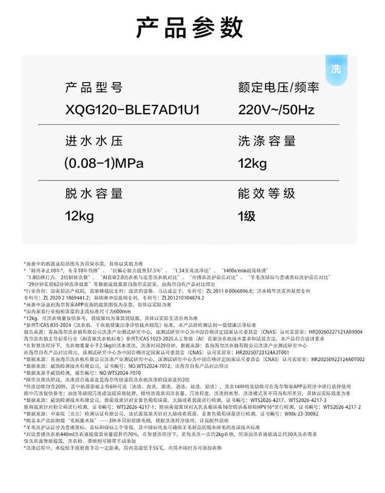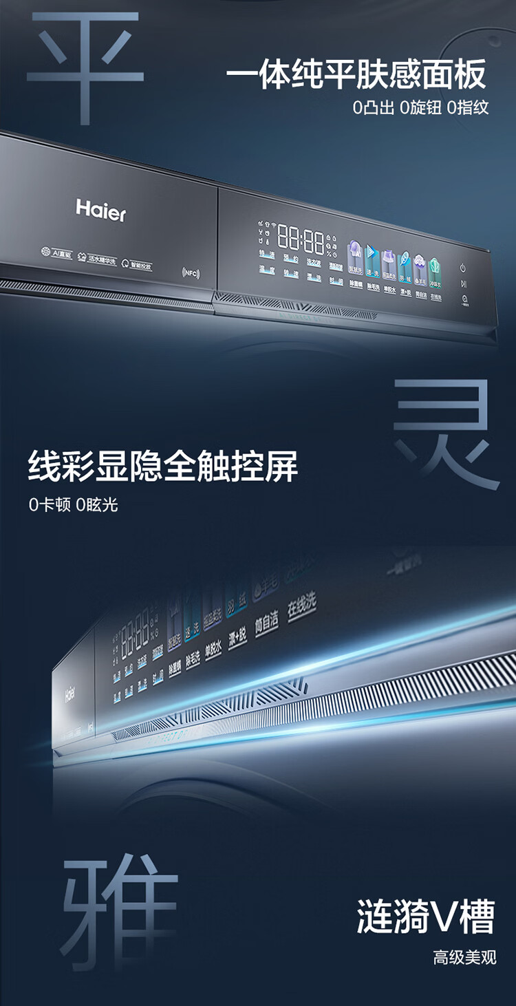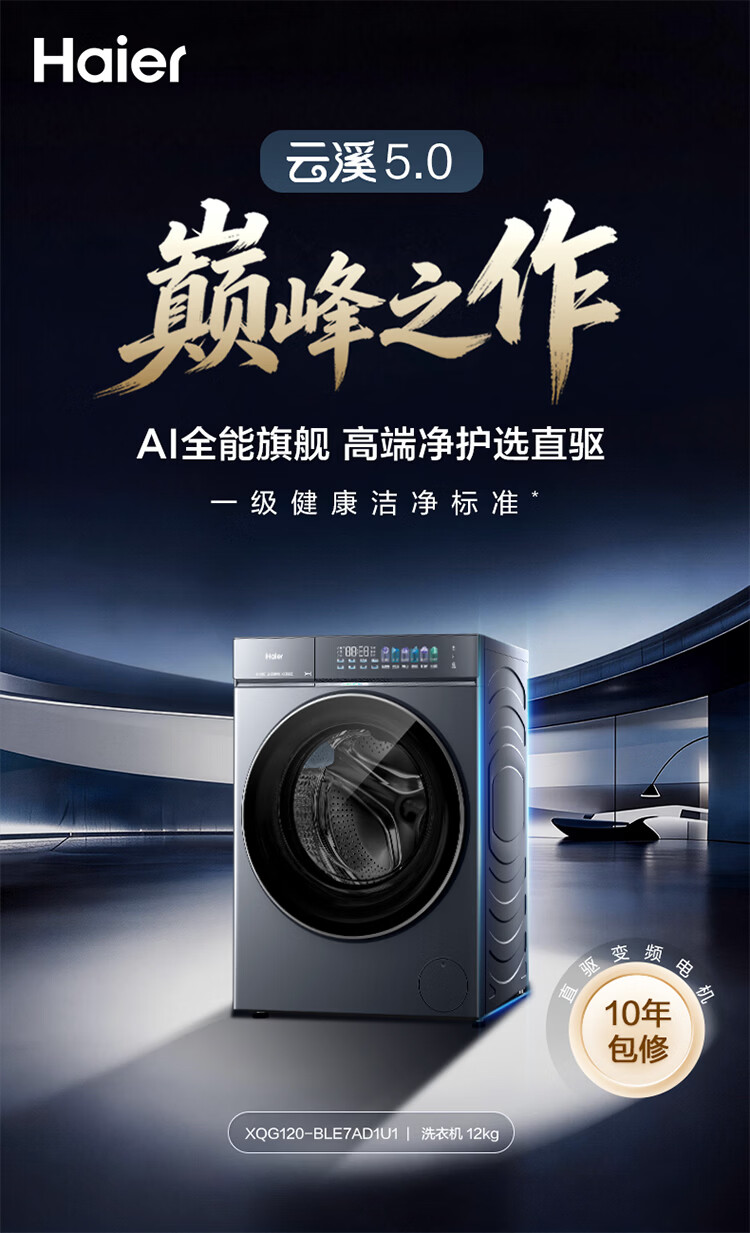海尔(Haier)云溪5.0 全自动滚筒洗衣机AWE同款 10KG单洗家用大容量 AI直驱洁净2.0直驱变频XQG100-BLE7AD1U1 10KG 单洗 首创雨沐洗+AI直驱+1.36高洗净比