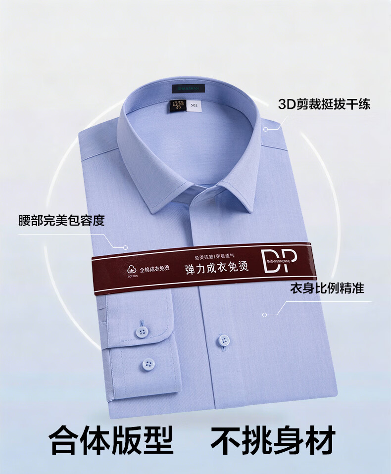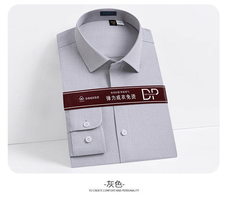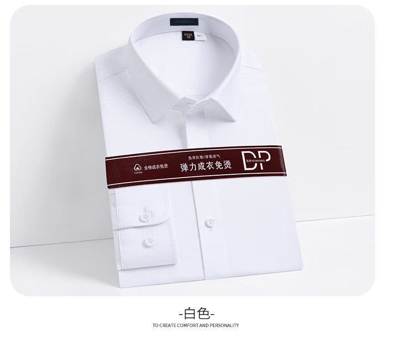 SHANSHAN杉杉【DP免烫】衬衫男长袖春秋新款商务简约正装男衬衣 白色 38