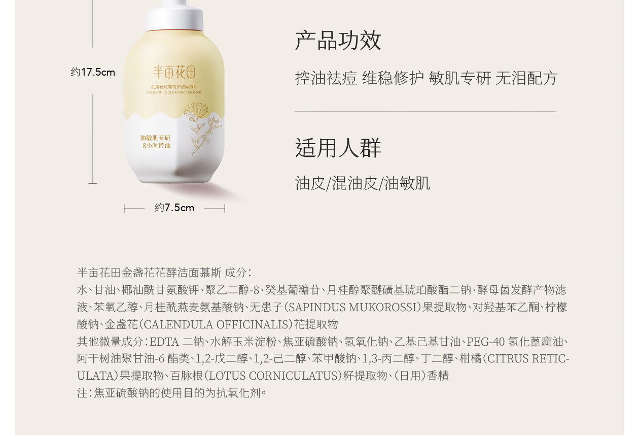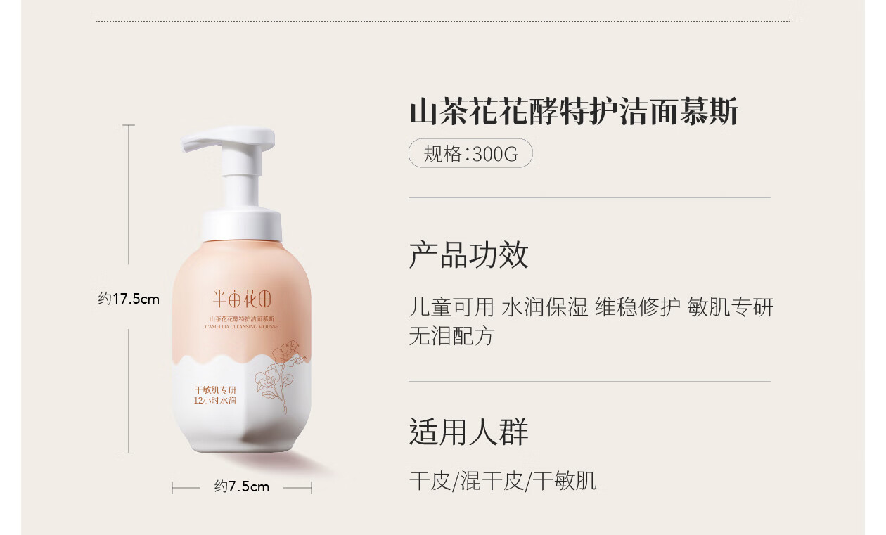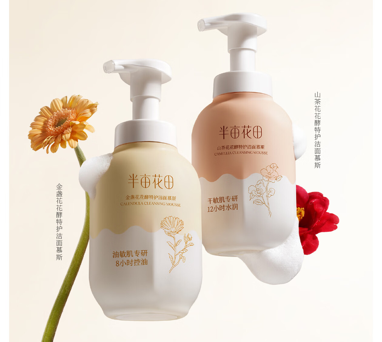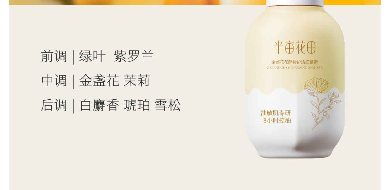 半亩花田洁面慕斯氨基酸洗面奶乳控油祛痘清洁黑头粉刺敏感肌男女士礼物