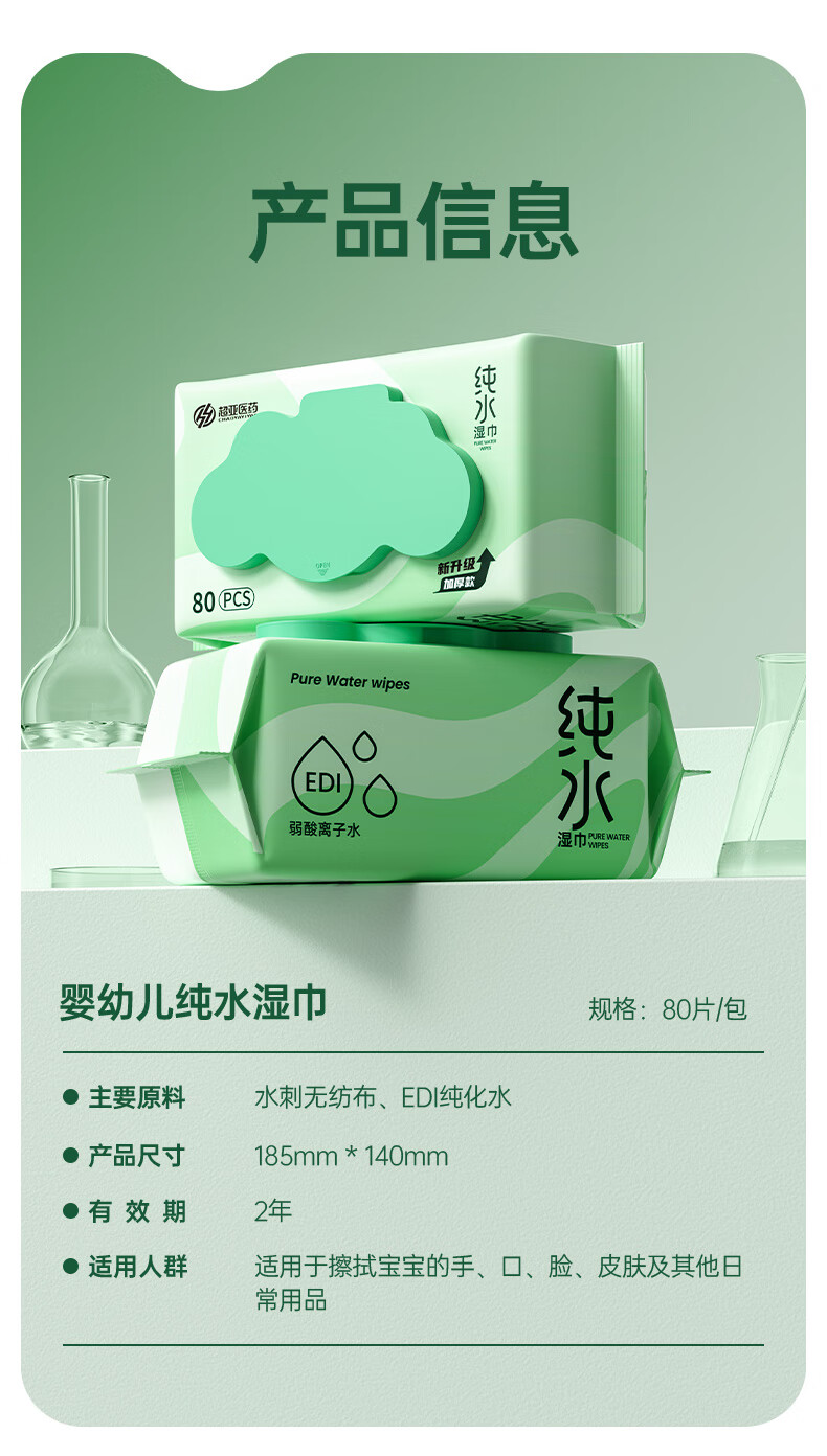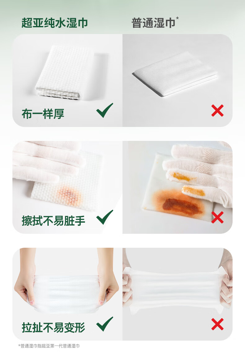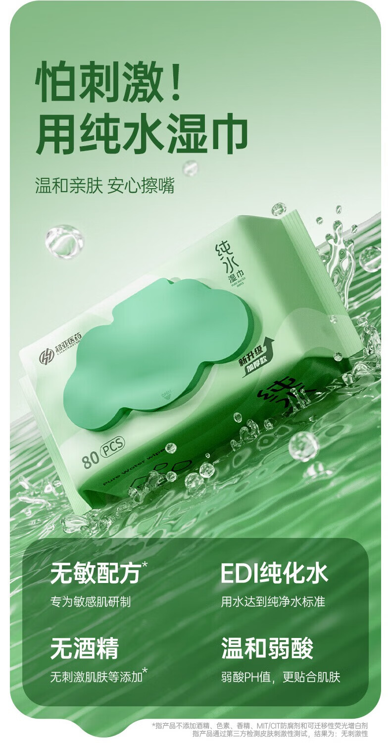 超亚EDI纯水湿巾镜片家庭清洁湿巾婴儿湿纸巾手口宝宝擦脸护理绵湿巾 绿波纹【纯水湿巾】80抽*3包
