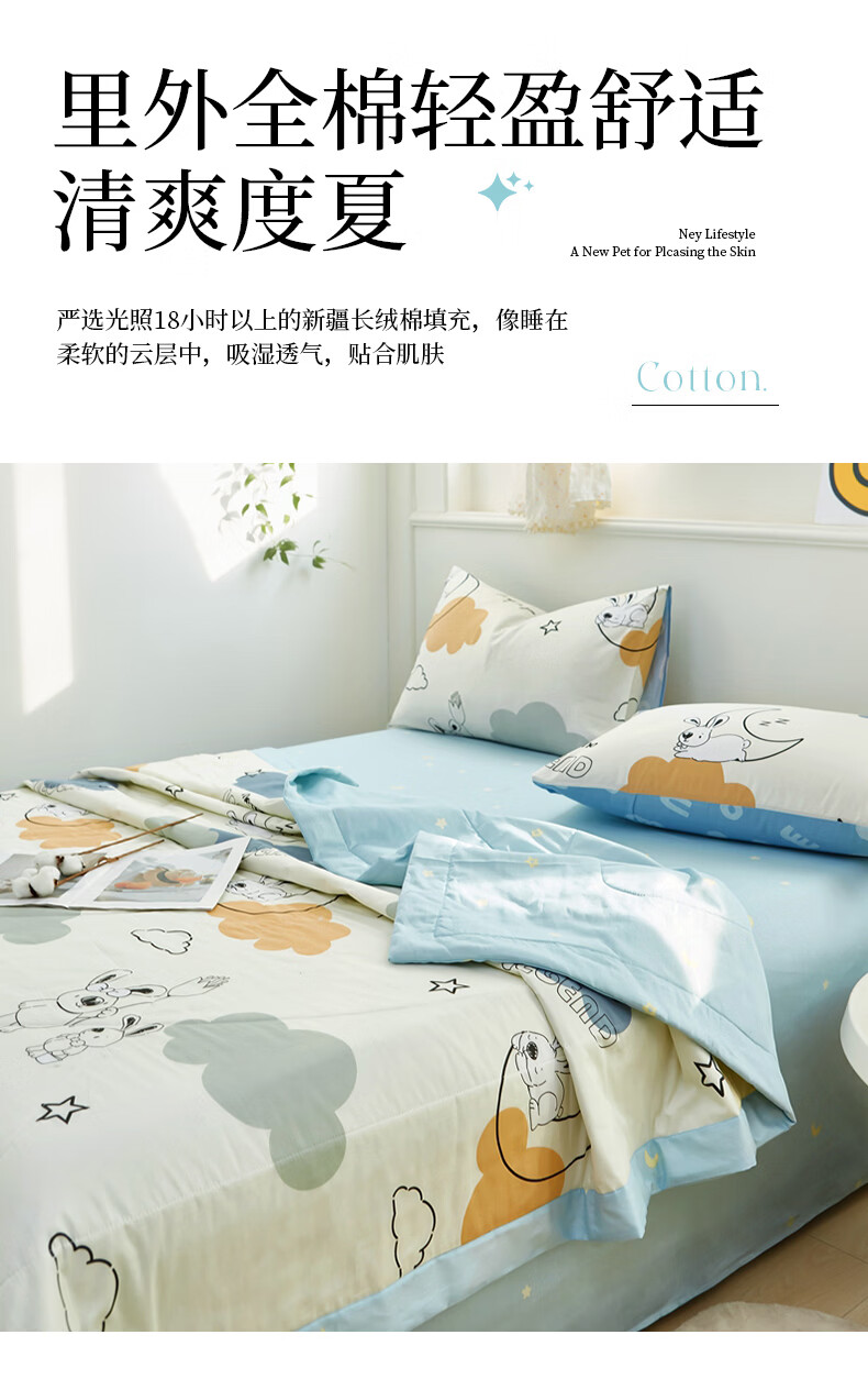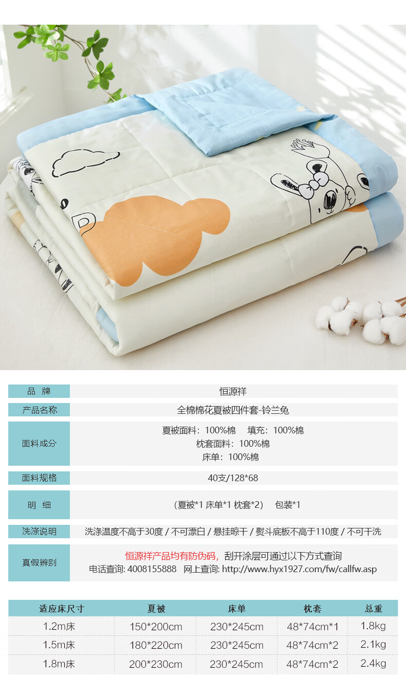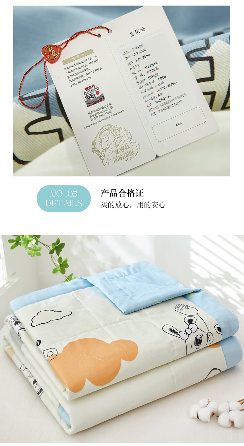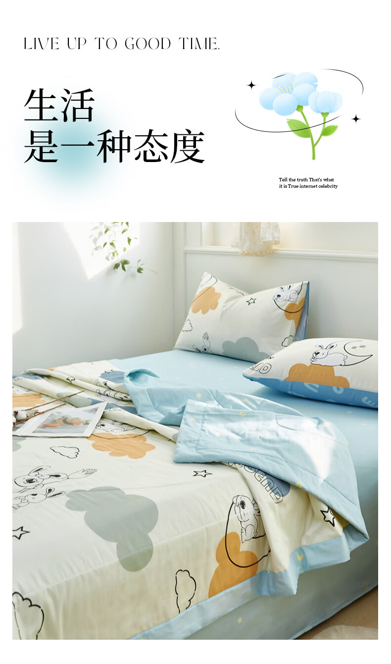 恒源祥 空调被 A类全棉双面印花夏被100%纯棉亲肤透气新品上市薄被子 【新品上市 A类全棉】锦上添花 150*200cm【夏被单件】