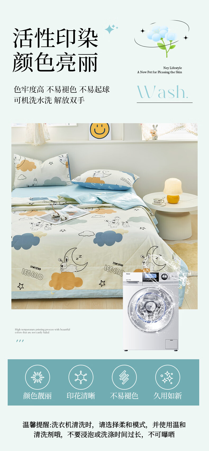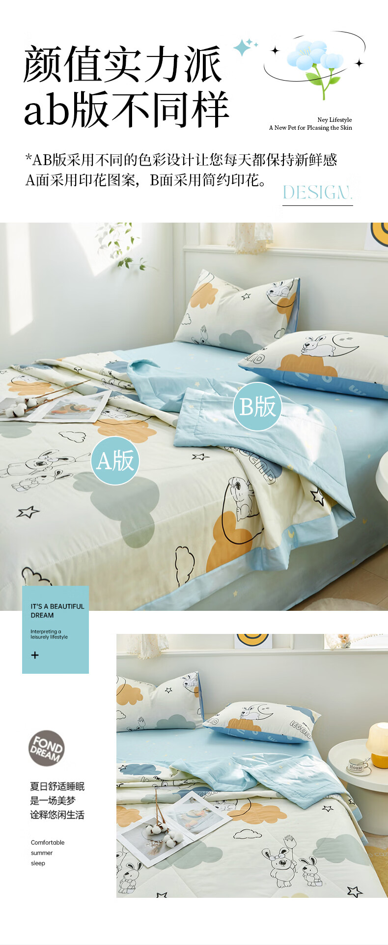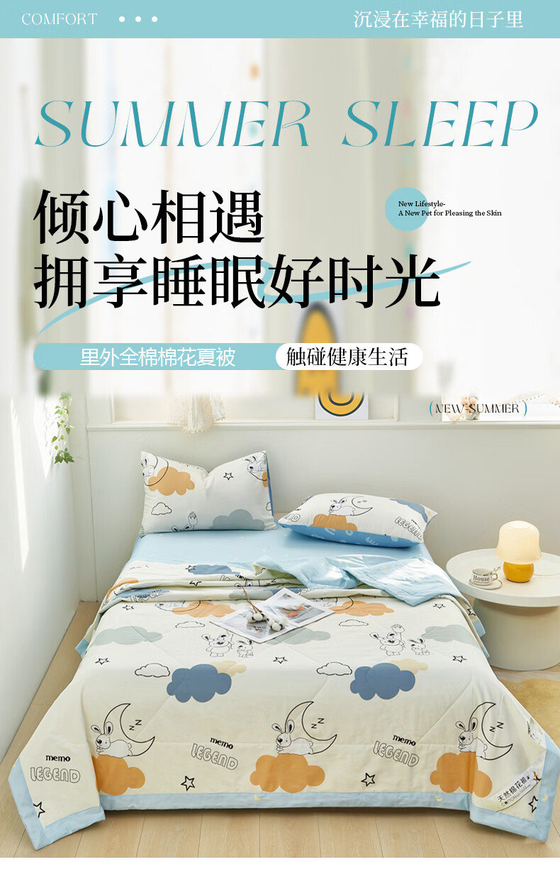 恒源祥 空调被 A类全棉双面印花夏被100%纯棉亲肤透气新品上市薄被子 【新品上市 A类全棉】锦上添花 150*200cm【夏被单件】