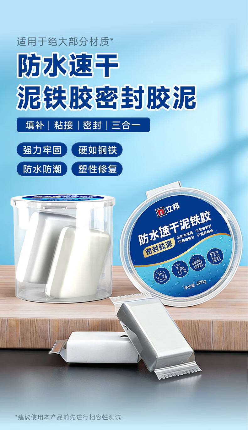 立邦密封胶泥防水塑钢泥堵洞墙壁孔空调下水道漏水防虫堵漏泥铁胶200g