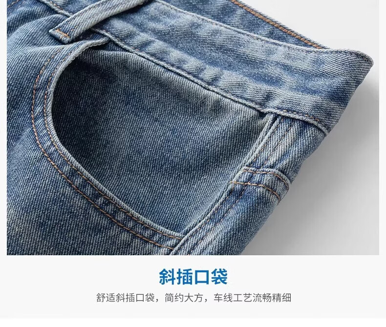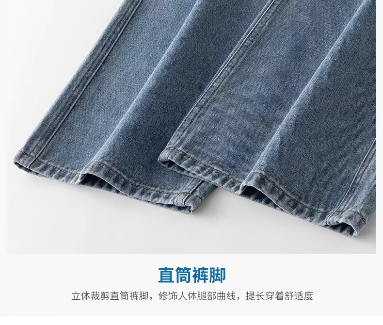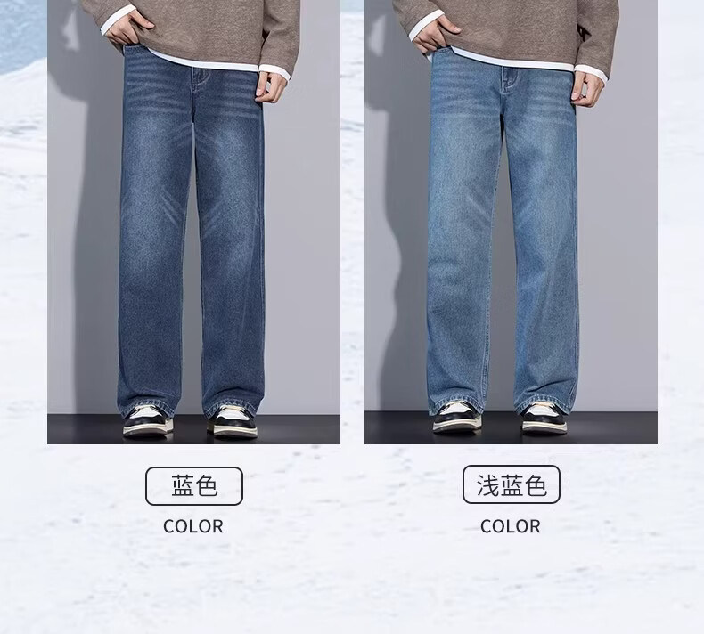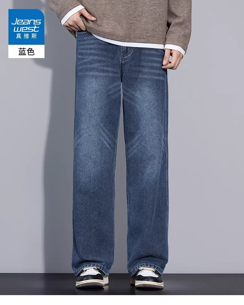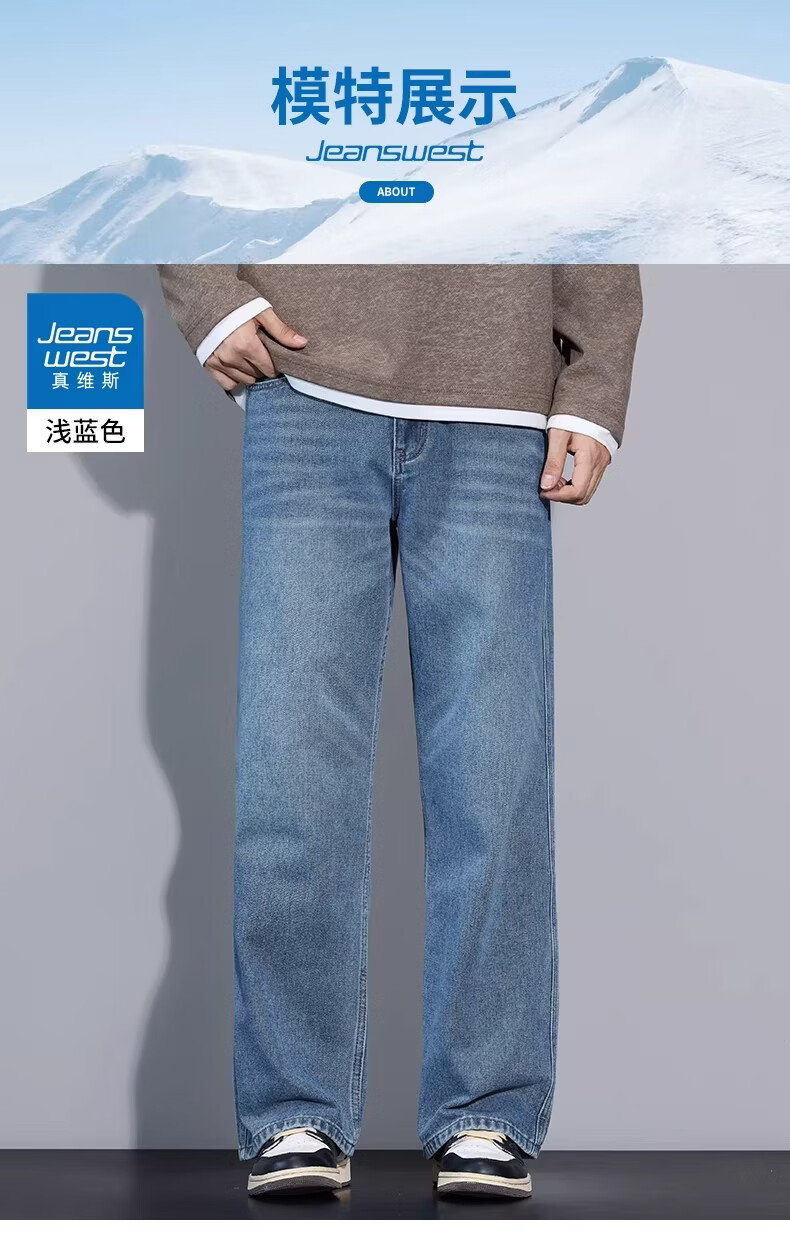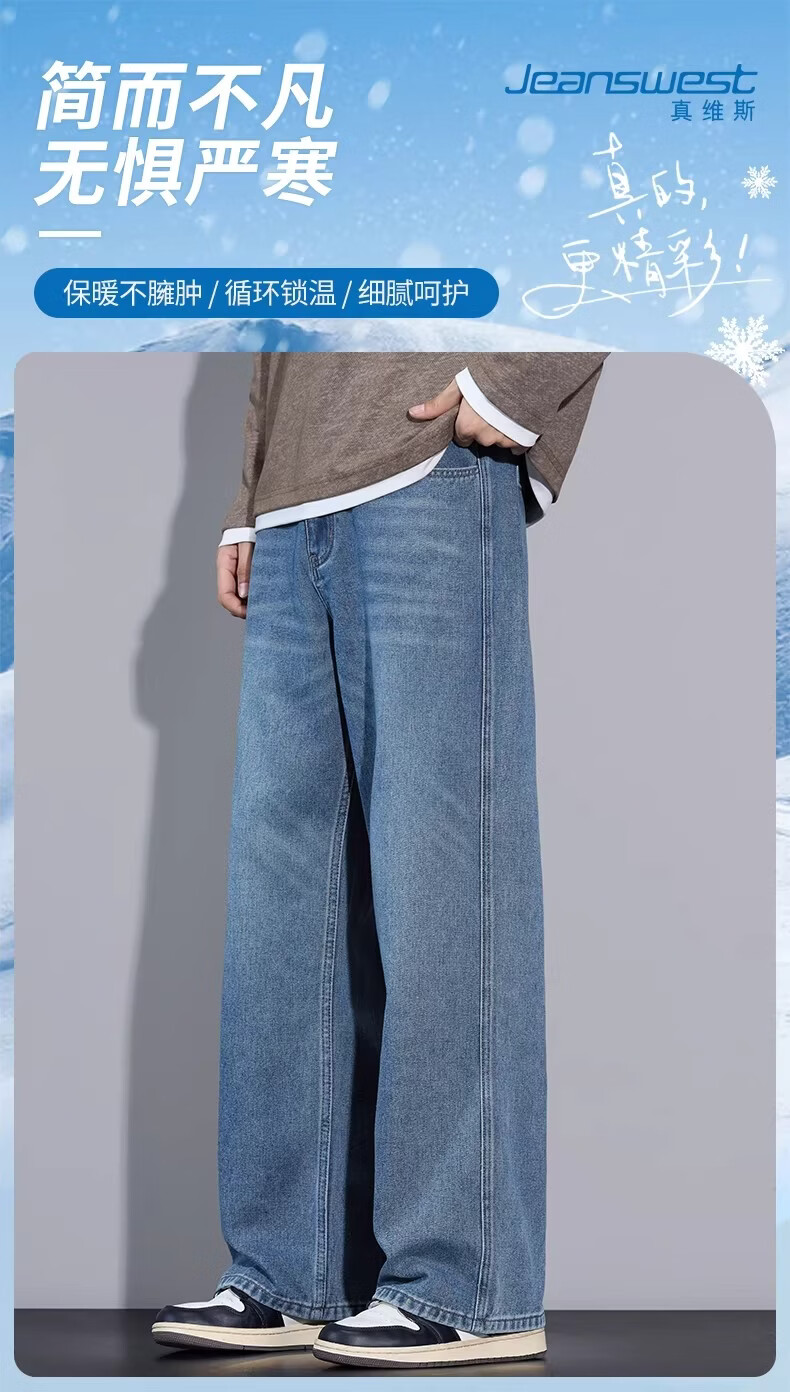 真维斯(Jeanswest)美式复古宽松牛仔裤男冬季新款直筒百搭加绒加厚休闲长裤子 浅蓝色 【舒适耐磨】 M 建议110-120斤