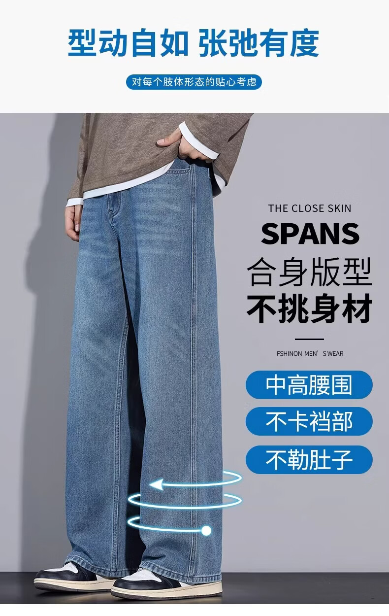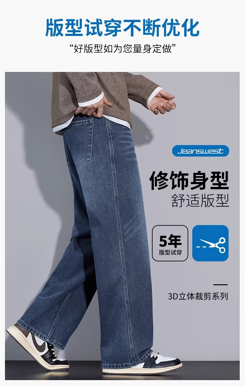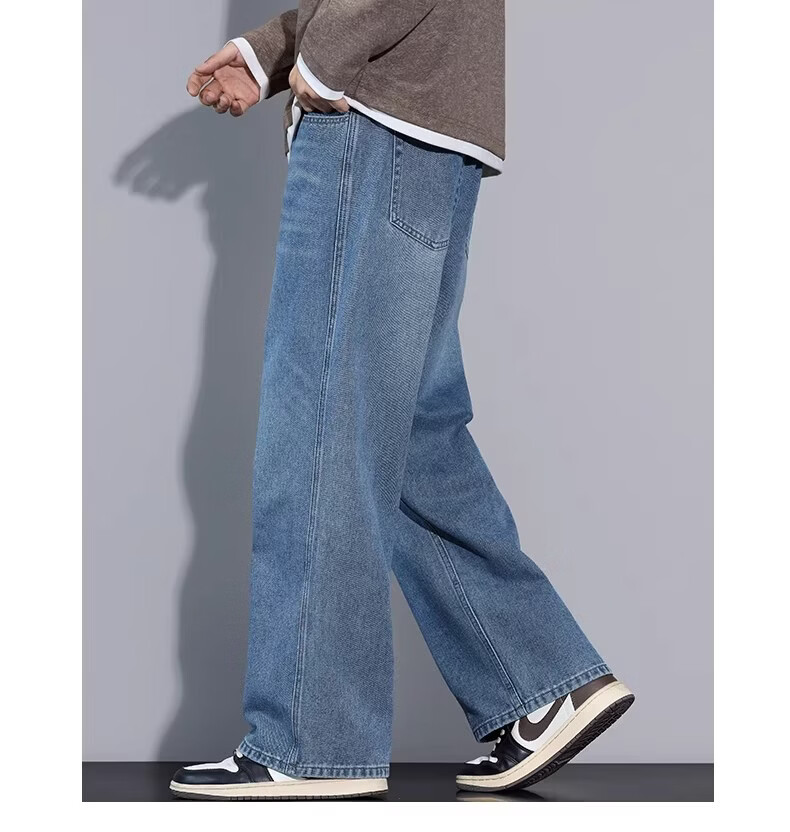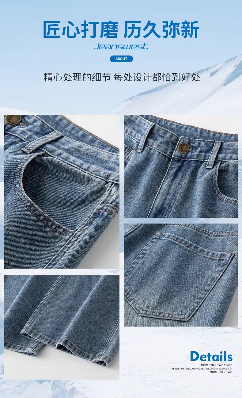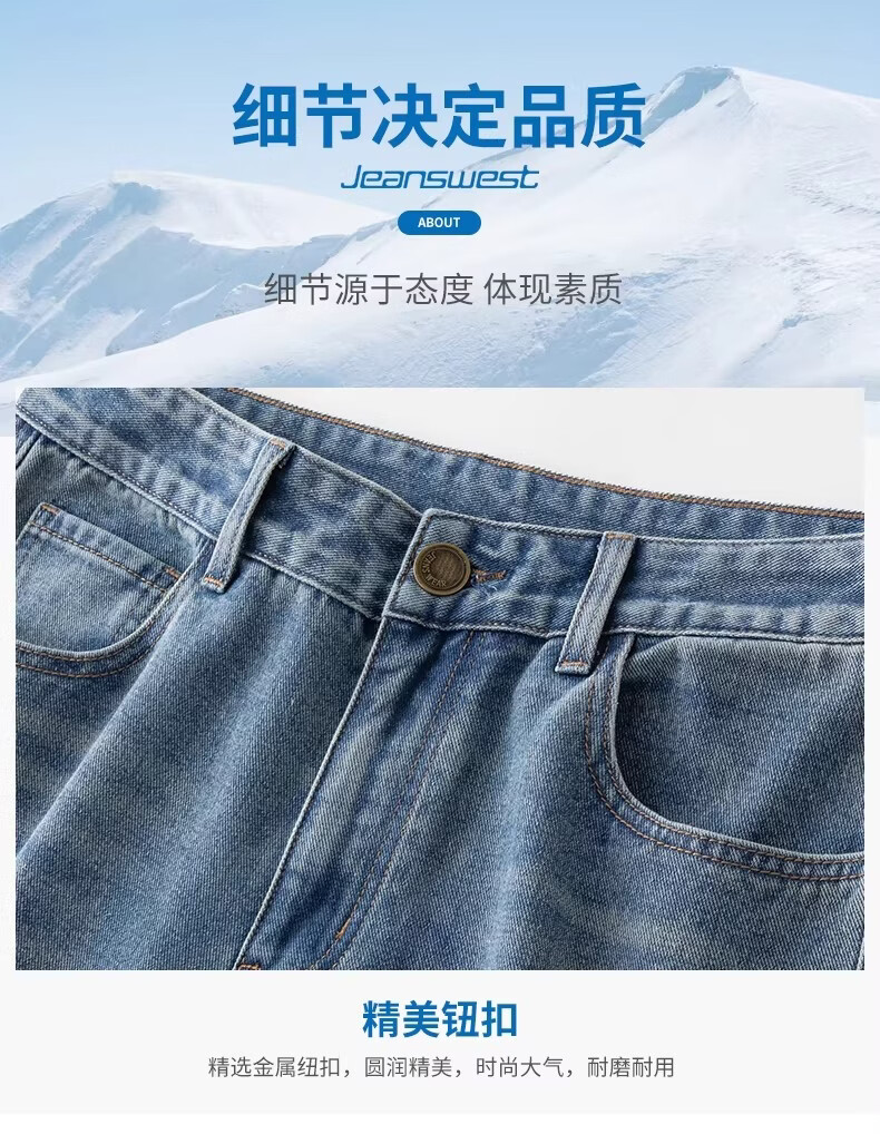 真维斯(Jeanswest)美式复古宽松牛仔裤男冬季新款直筒百搭加绒加厚休闲长裤子 浅蓝色 【舒适耐磨】 M 建议110-120斤
