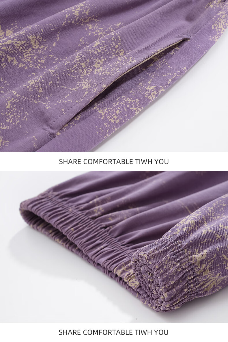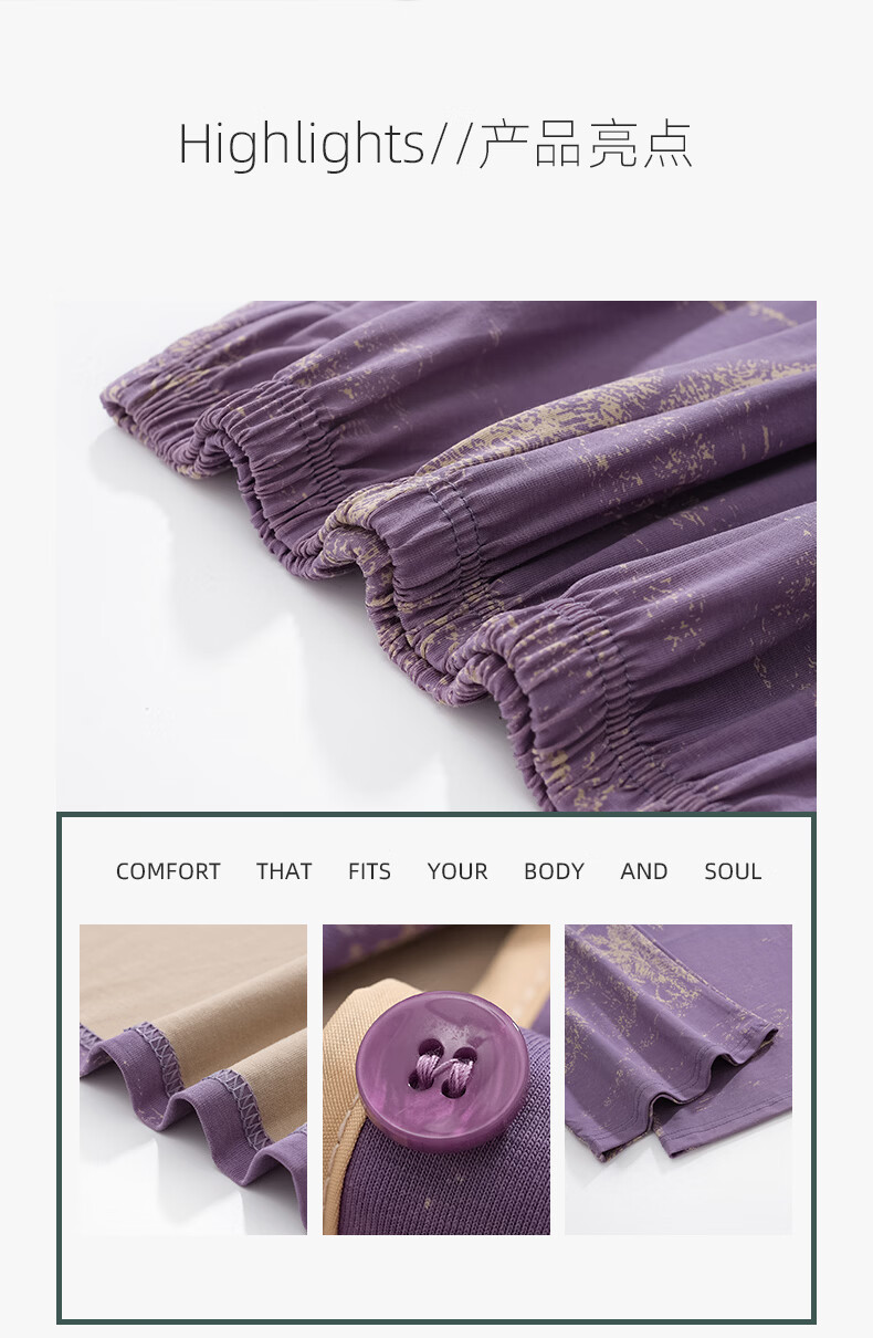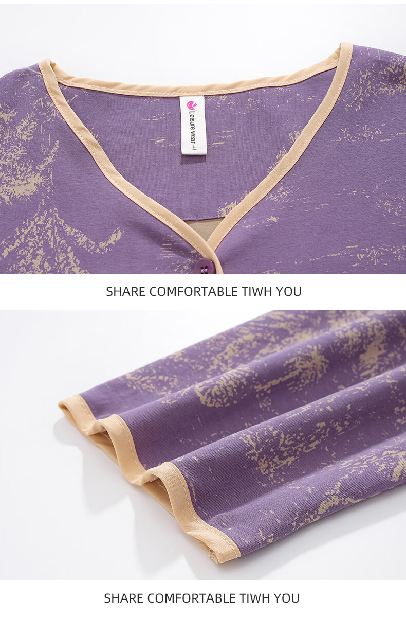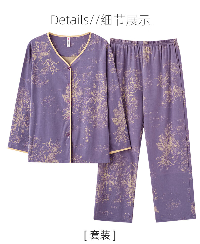 叶盼(yepan)【柔软】莱卡纯棉睡衣女春秋季和服领长袖宽松大码女士家居服套装 7612-紫色 M (160) :建议80-100斤穿着
