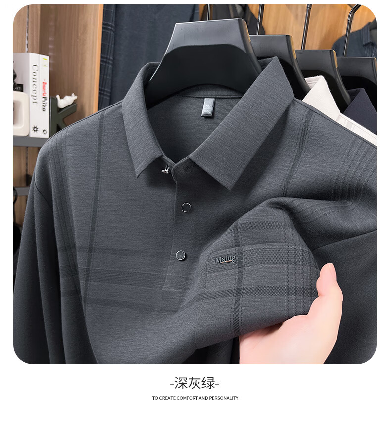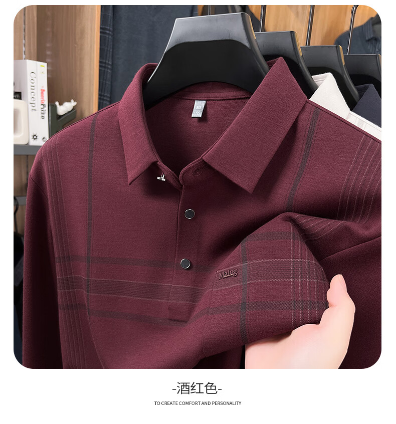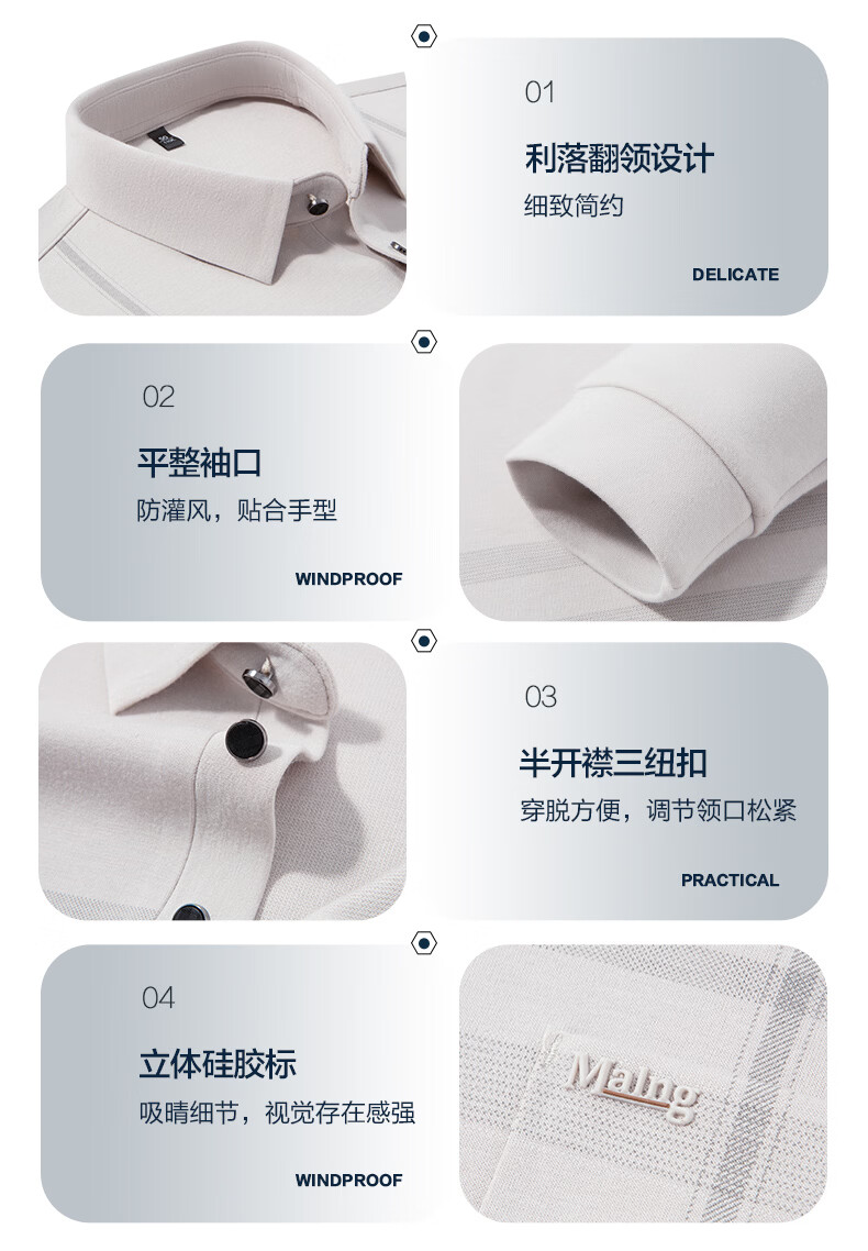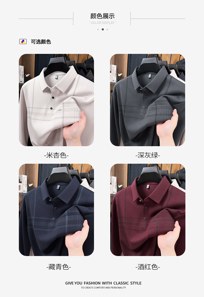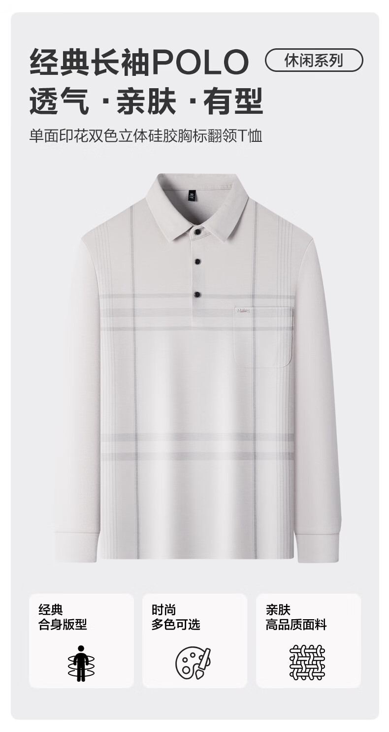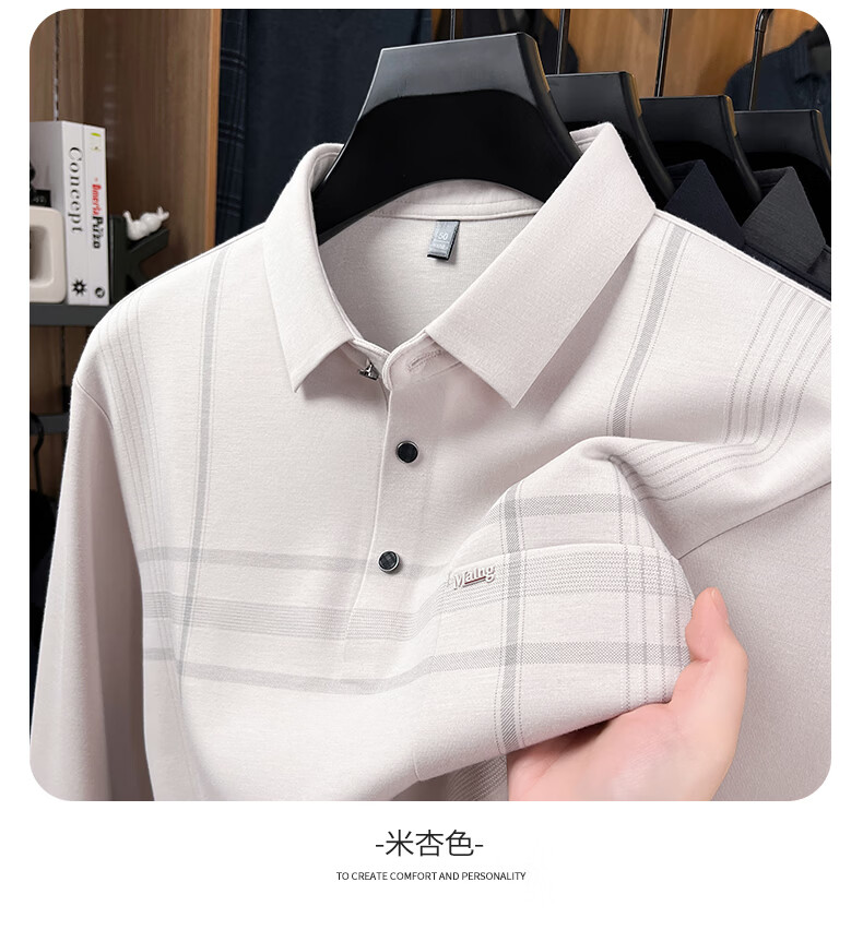 SHANSHAN杉杉男士长袖T恤2026年春季商务POLO衫时尚百搭针织内搭上衣衣服 米杏色 M /170