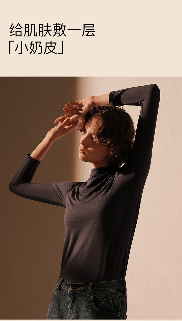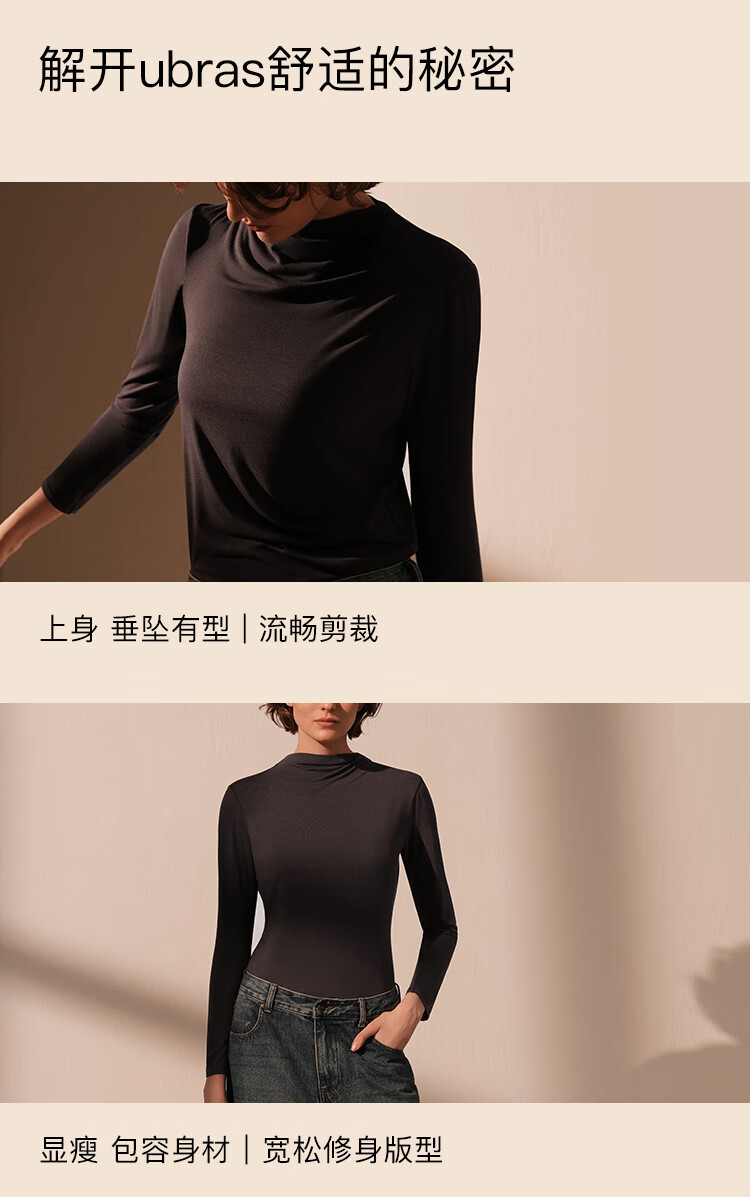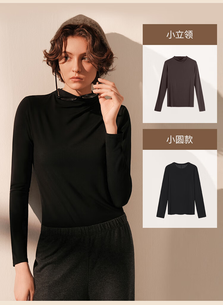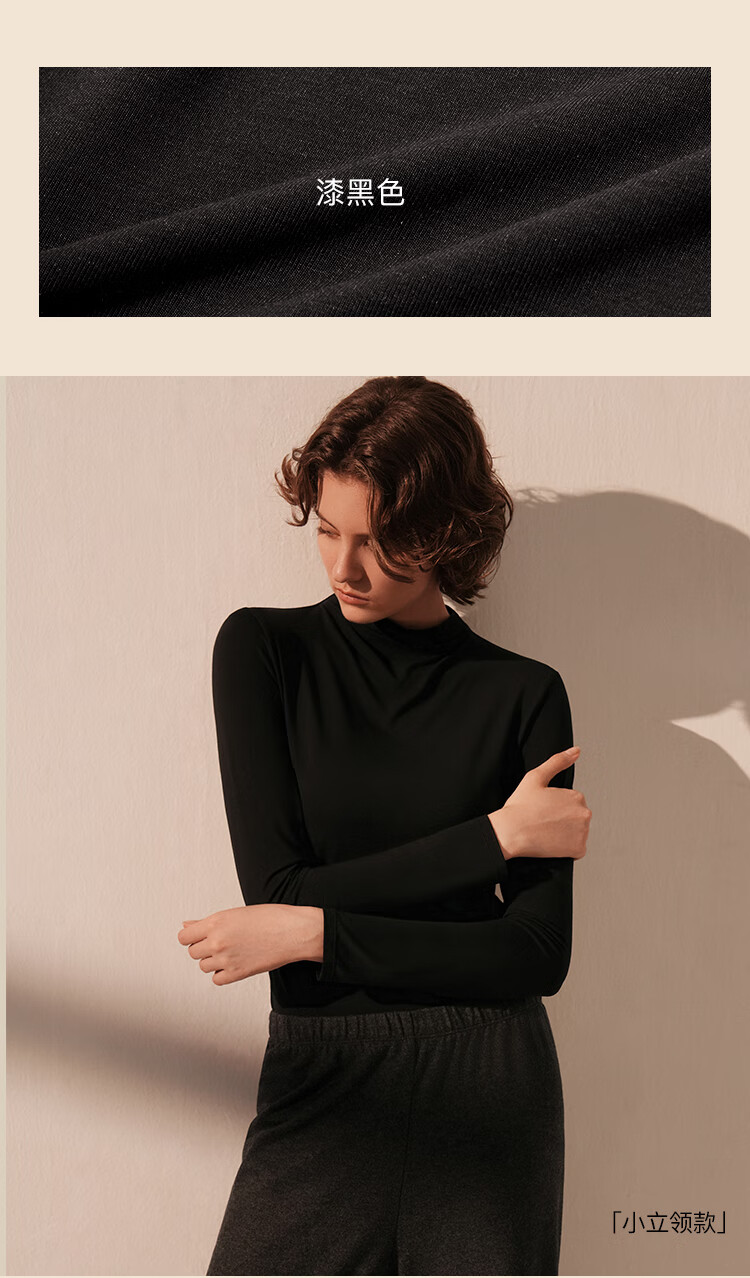 ubras新品修身肌底衣女肌底衣秋衣内搭外穿长袖漆黑色L
