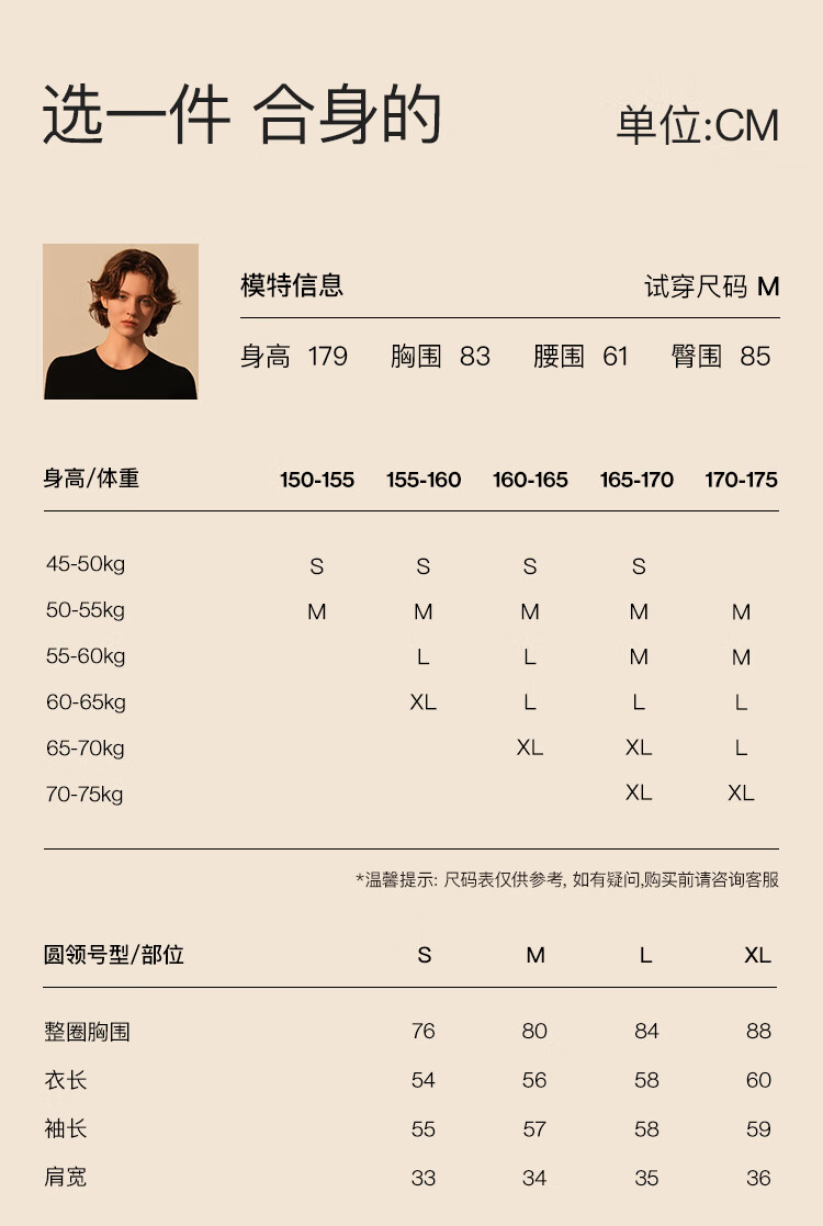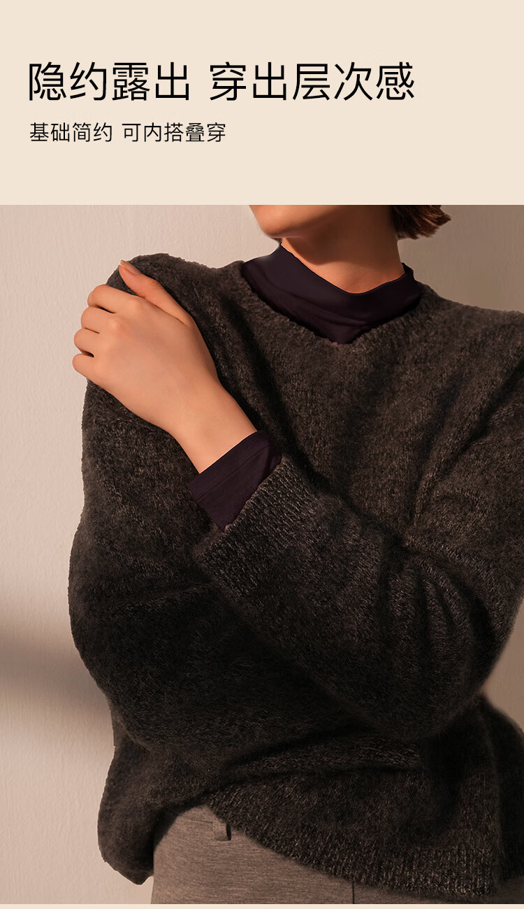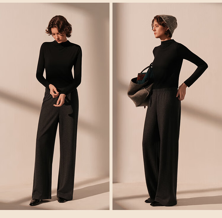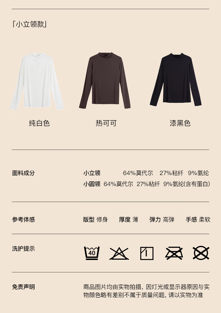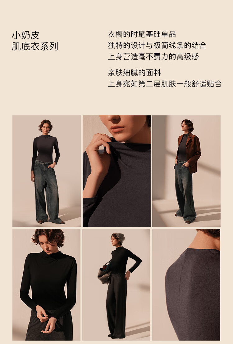 ubras新品修身肌底衣女肌底衣秋衣内搭外穿长袖漆黑色L