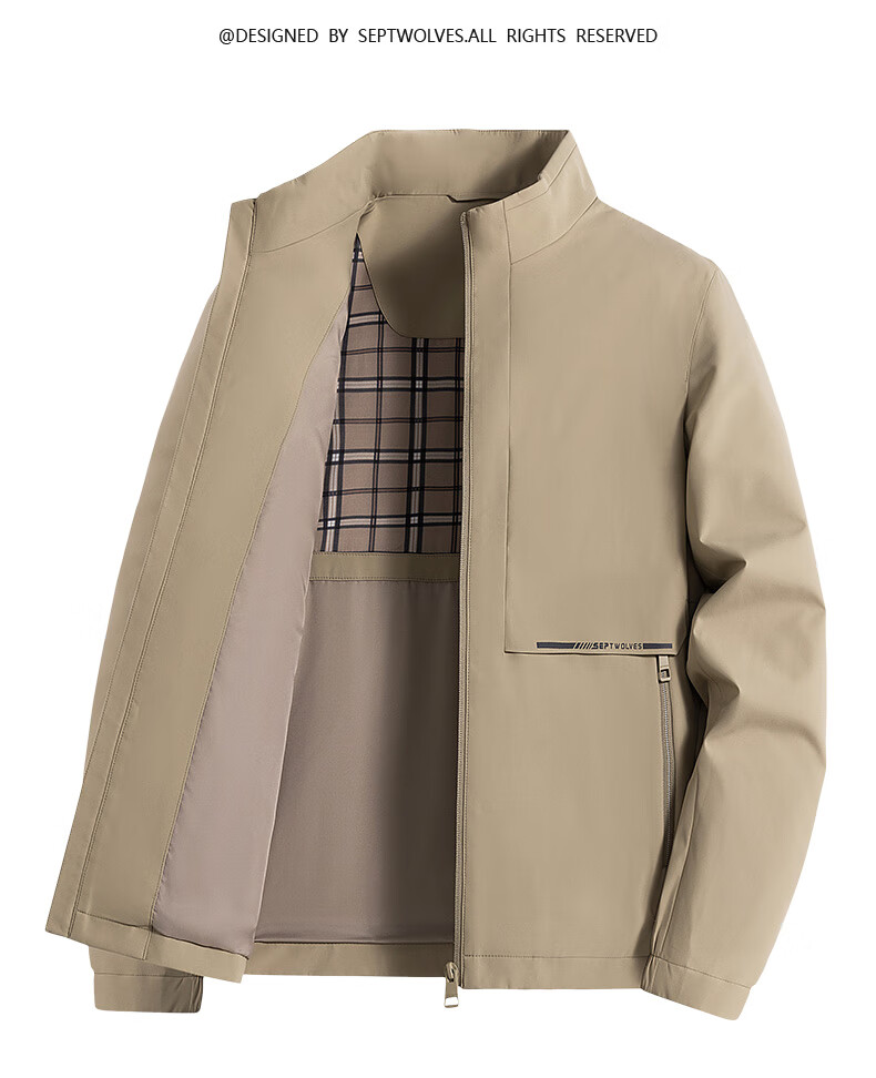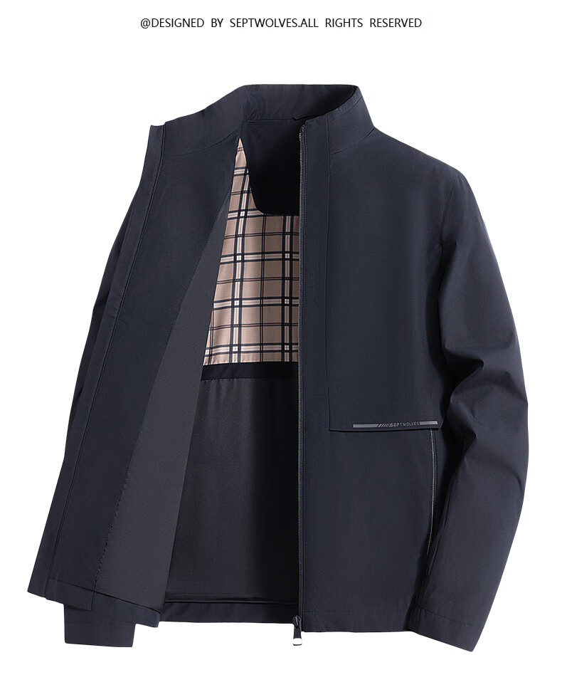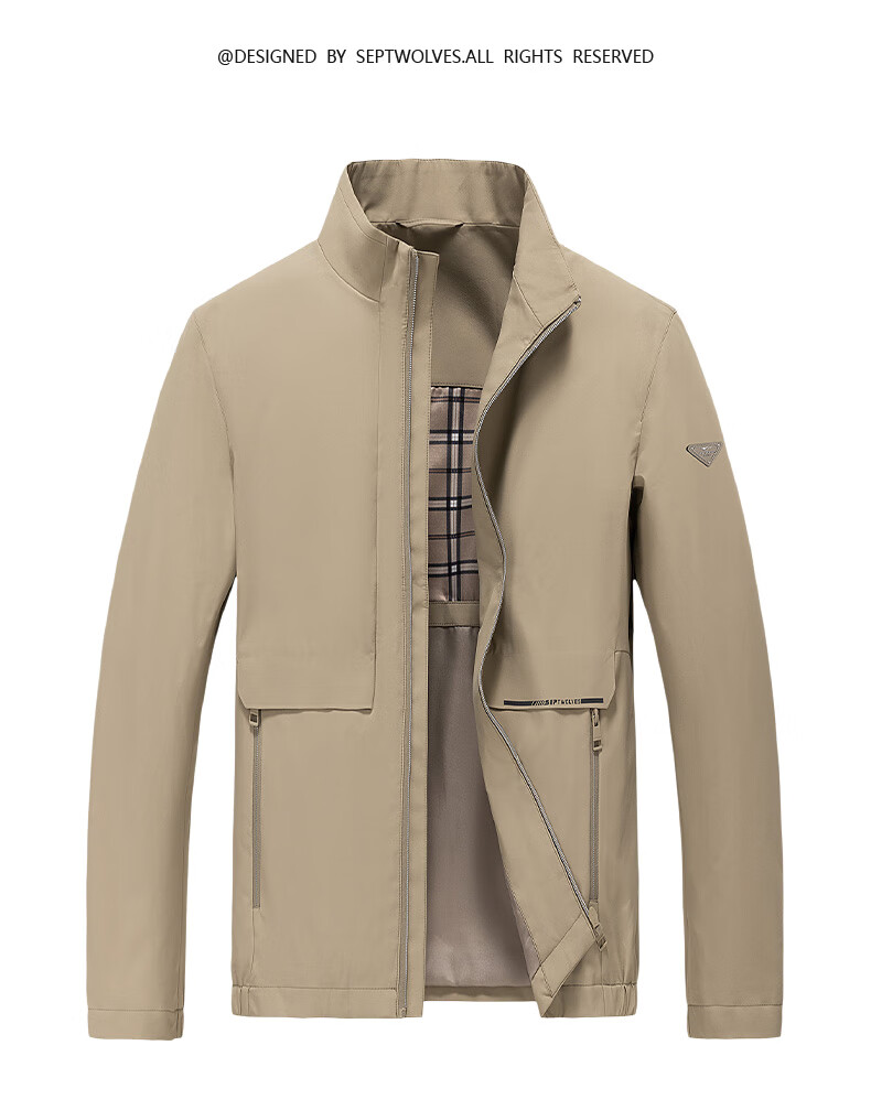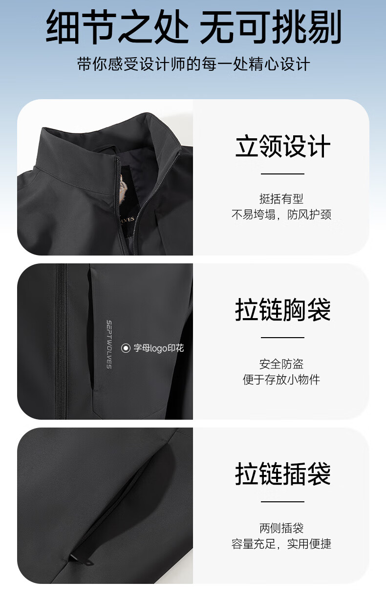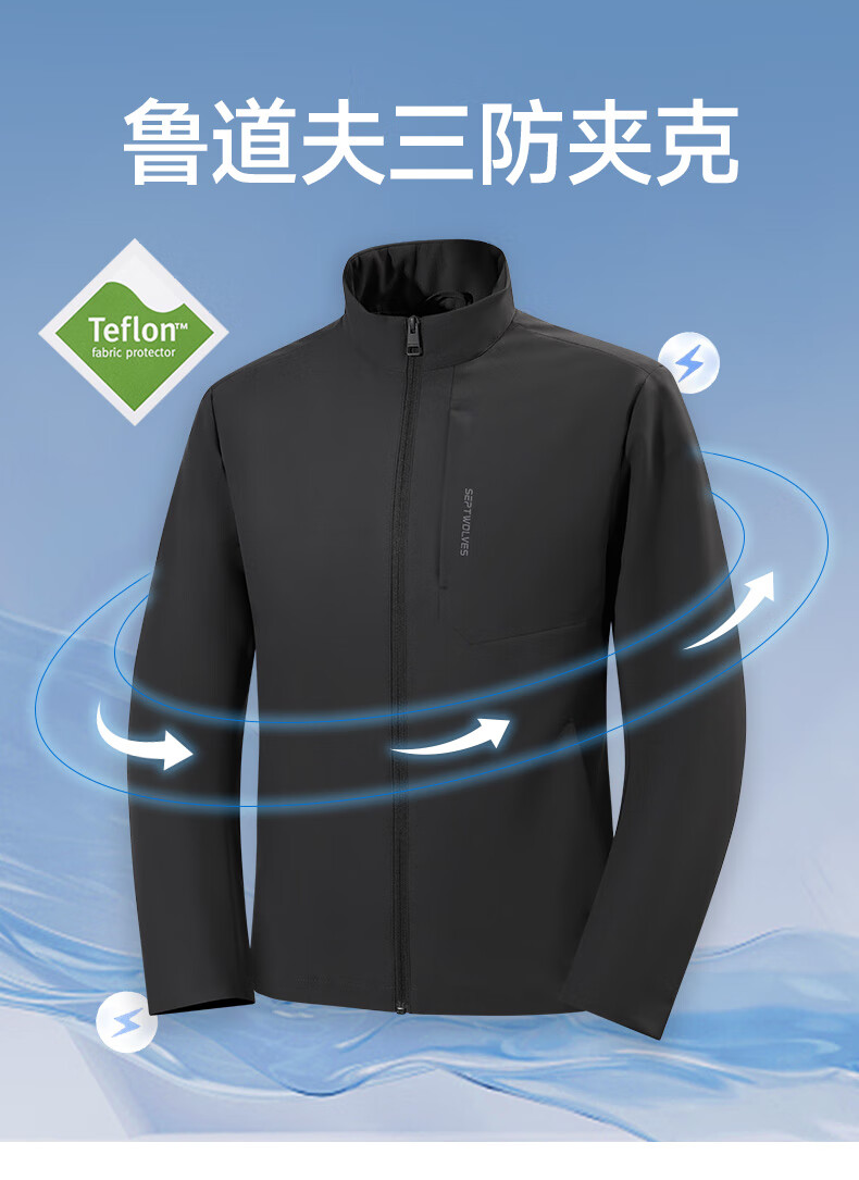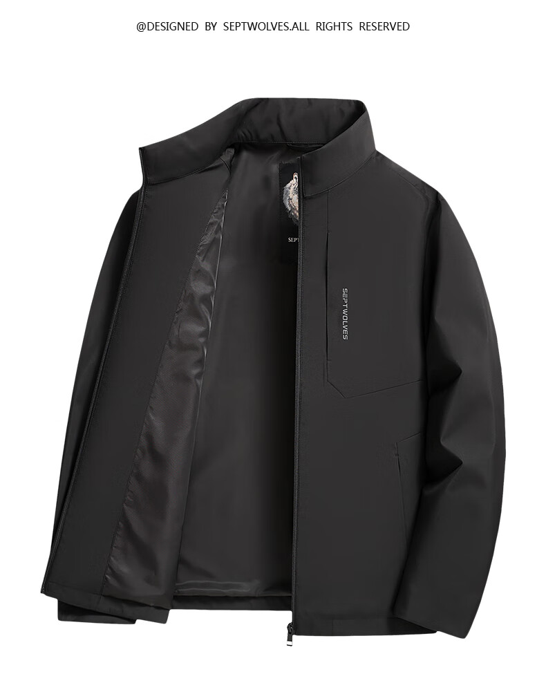 七匹狼外套男士锋衣秋季轻户外立领三防休闲夹克里布抗静电上衣服男装