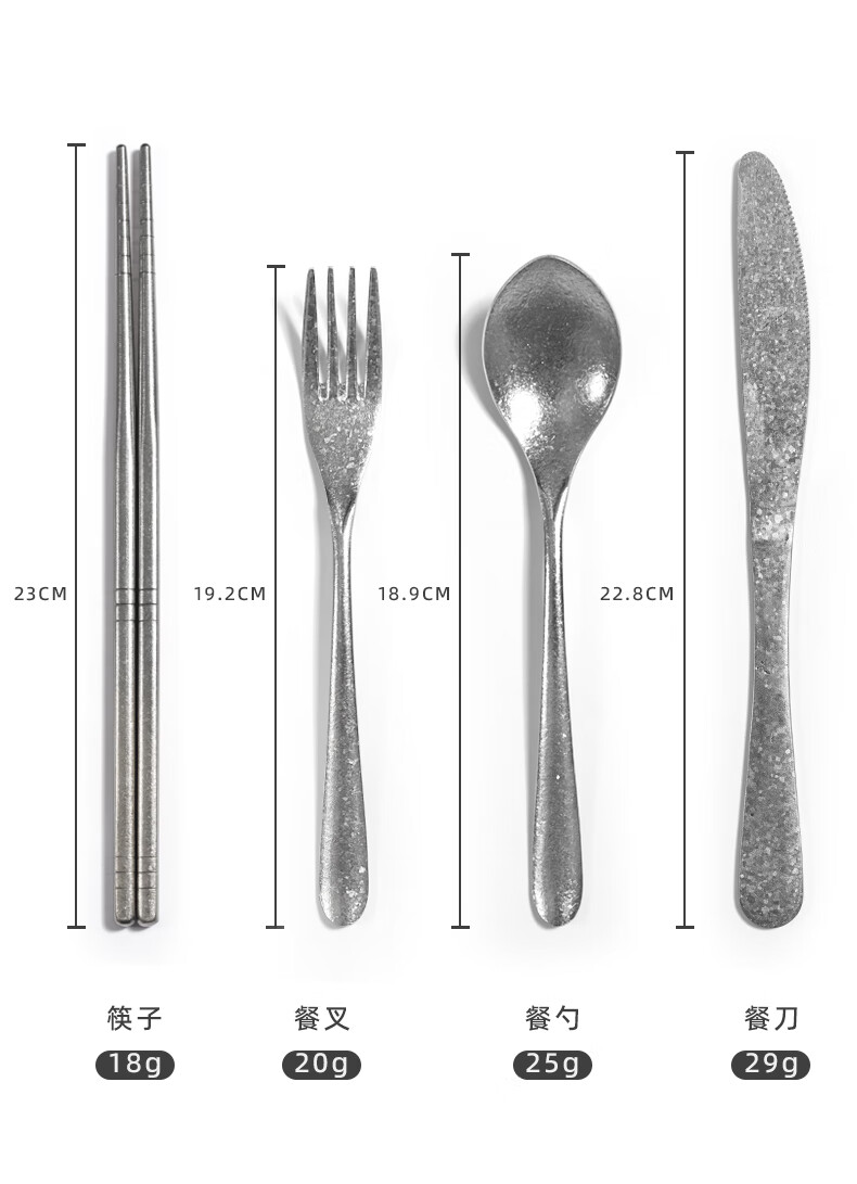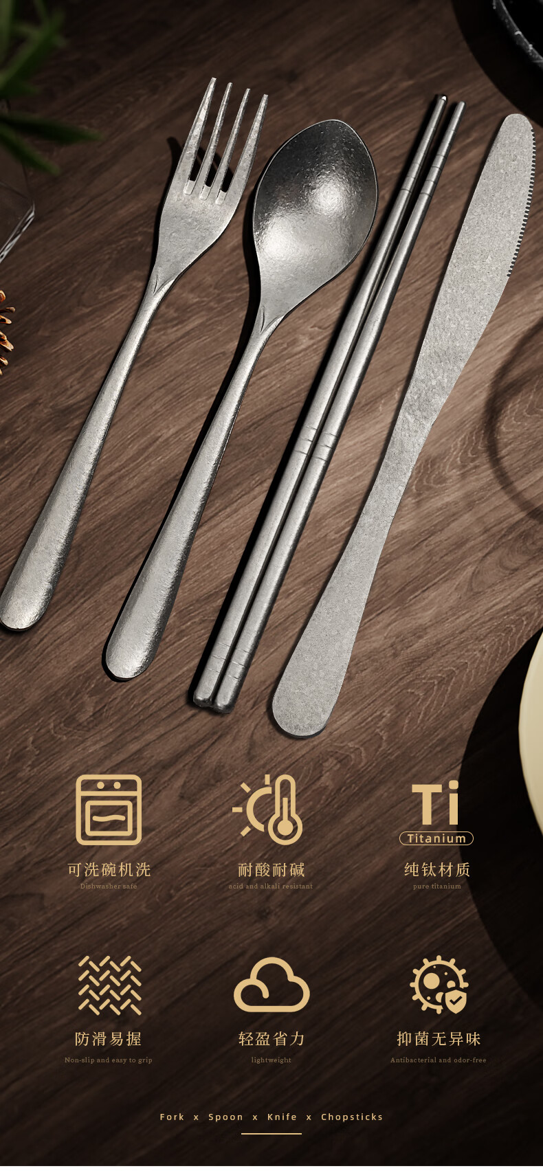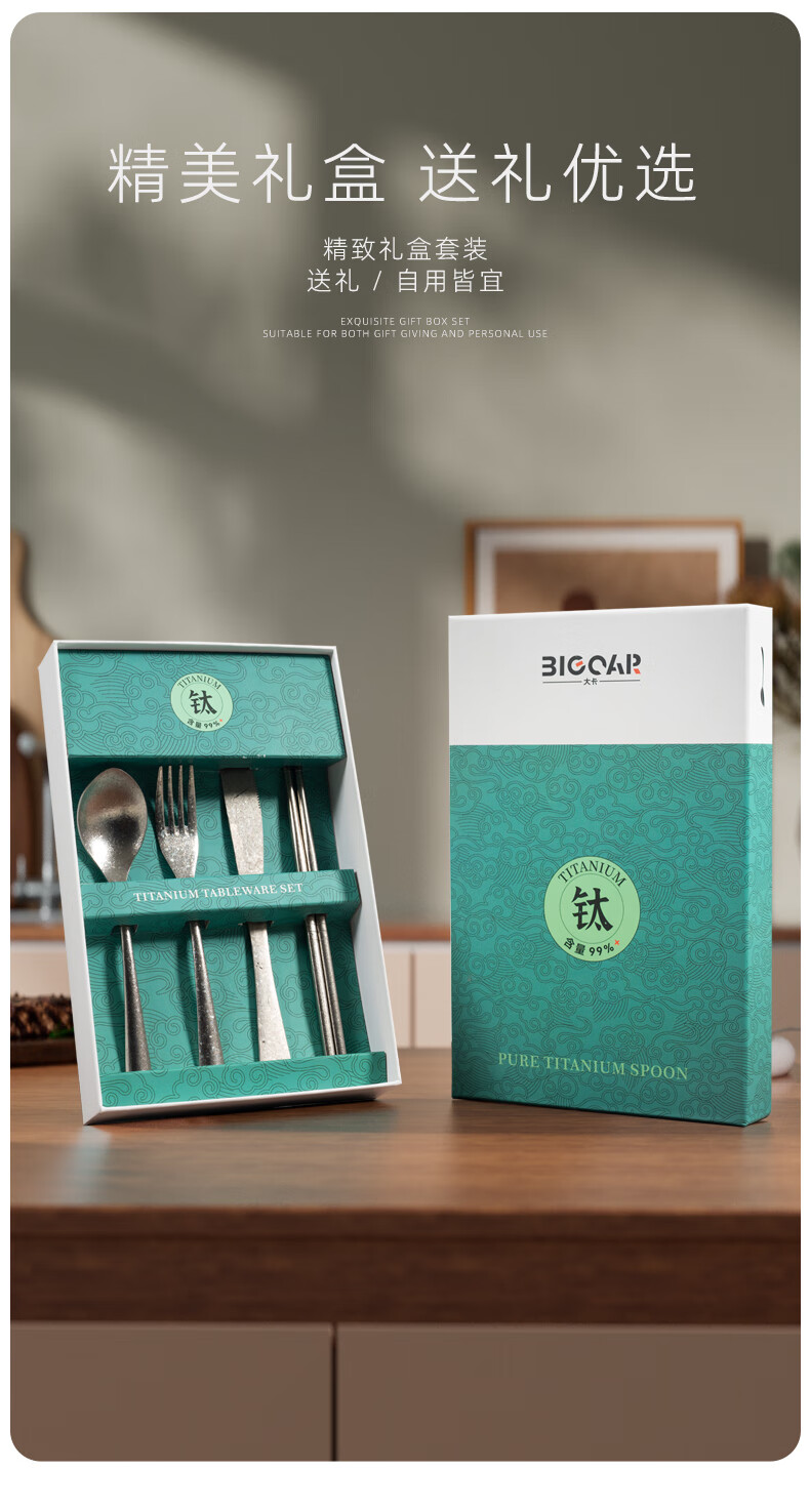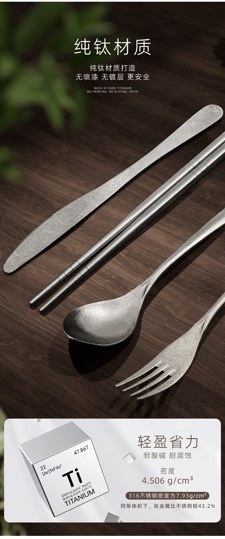 大卡纯钛筷子加厚勺子叉子餐刀家用抗菌防烫餐具套装个人专用餐具 纯钛餐具礼盒装 3件套