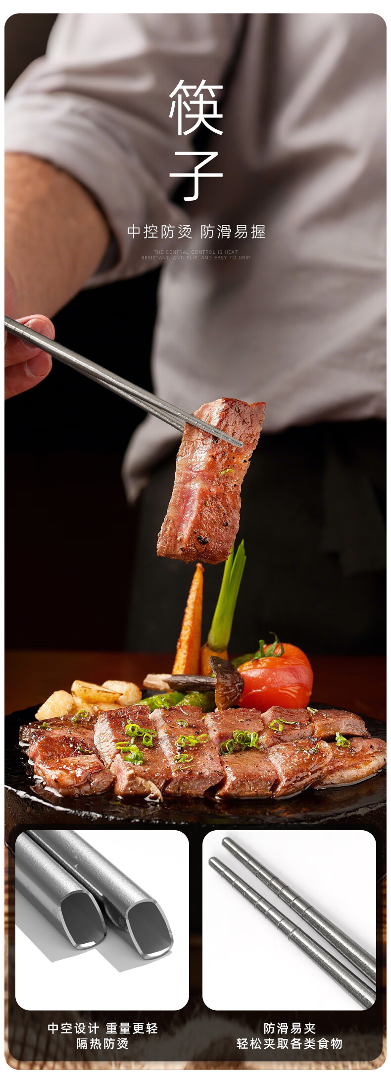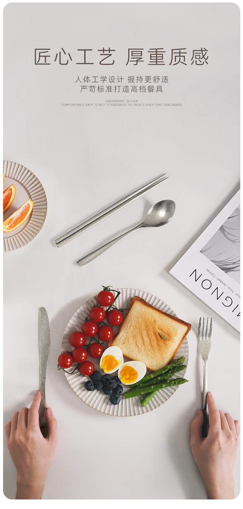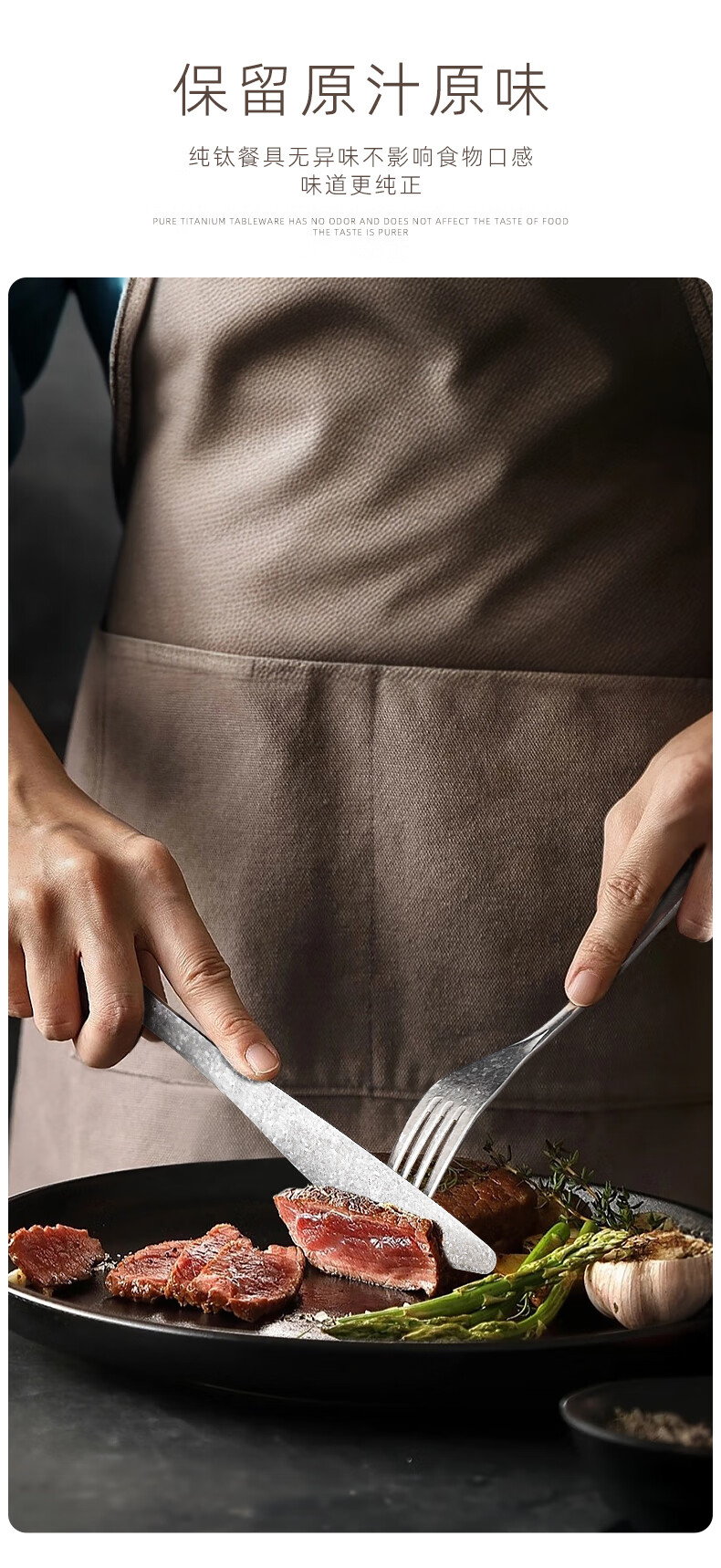 大卡纯钛筷子加厚勺子叉子餐刀家用抗菌防烫餐具套装个人专用餐具 纯钛餐具礼盒装 3件套