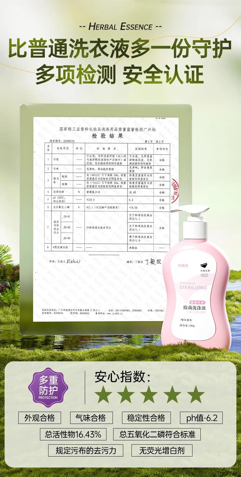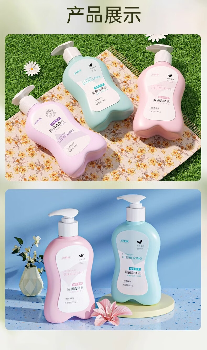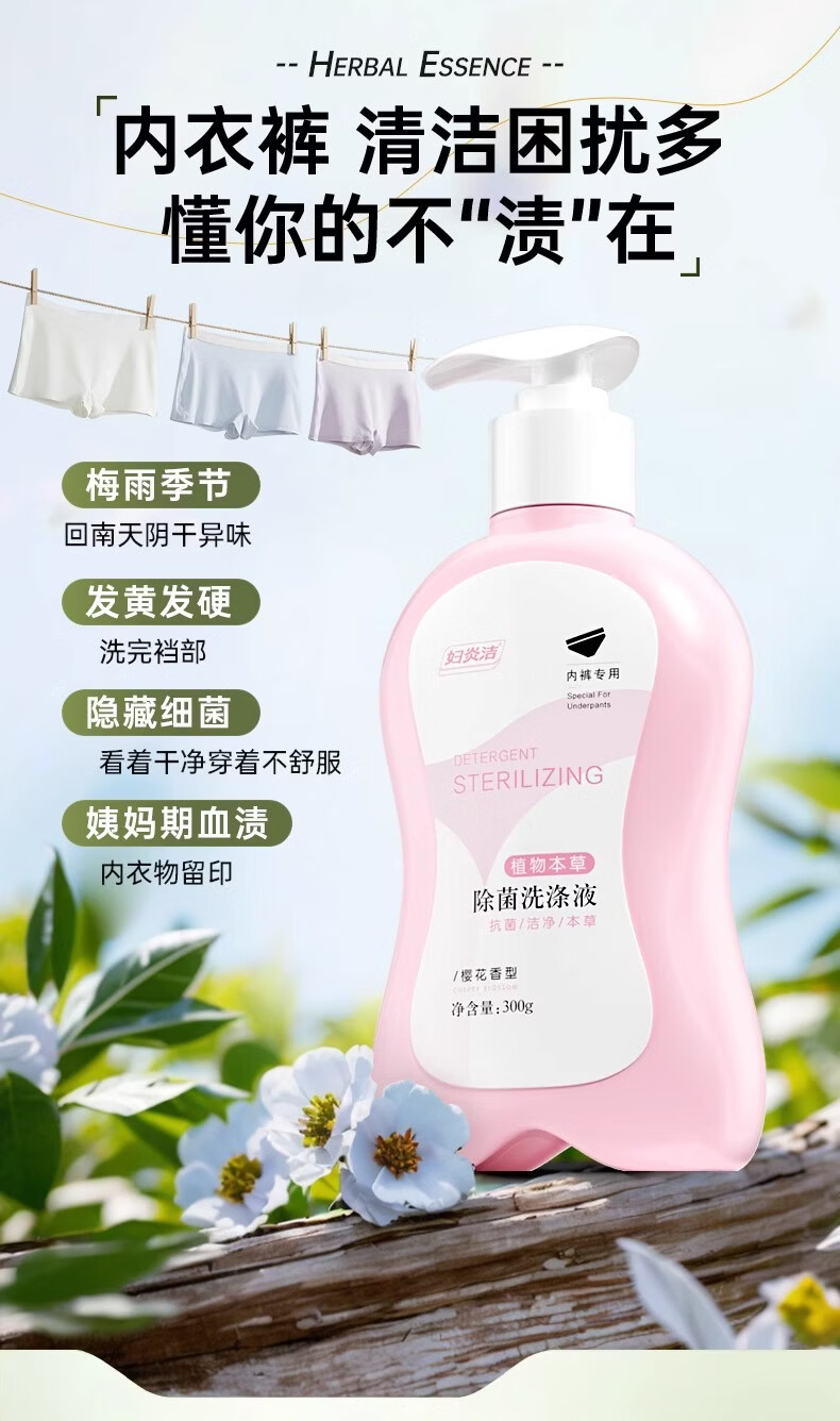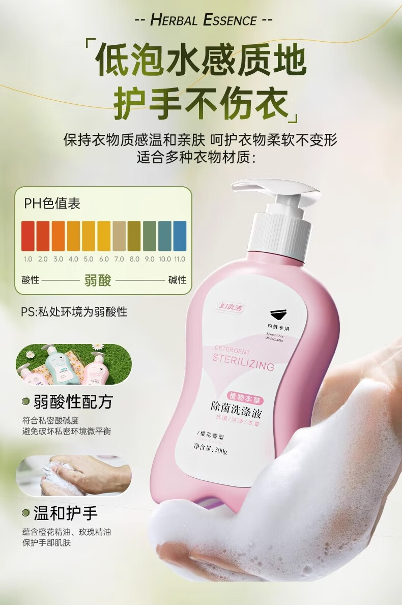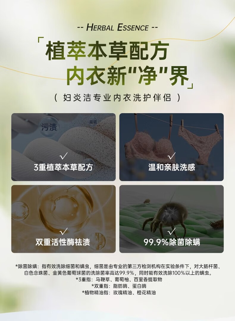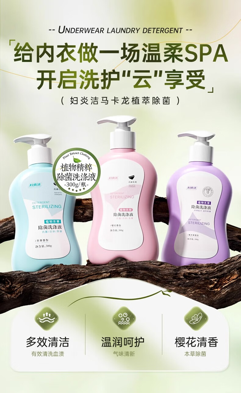 妇炎洁内衣清洗液内衣内裤洗衣液植物本草内裤除菌洗液除螨去血渍污渍 300g粉2瓶+蓝色1瓶性价比爆款