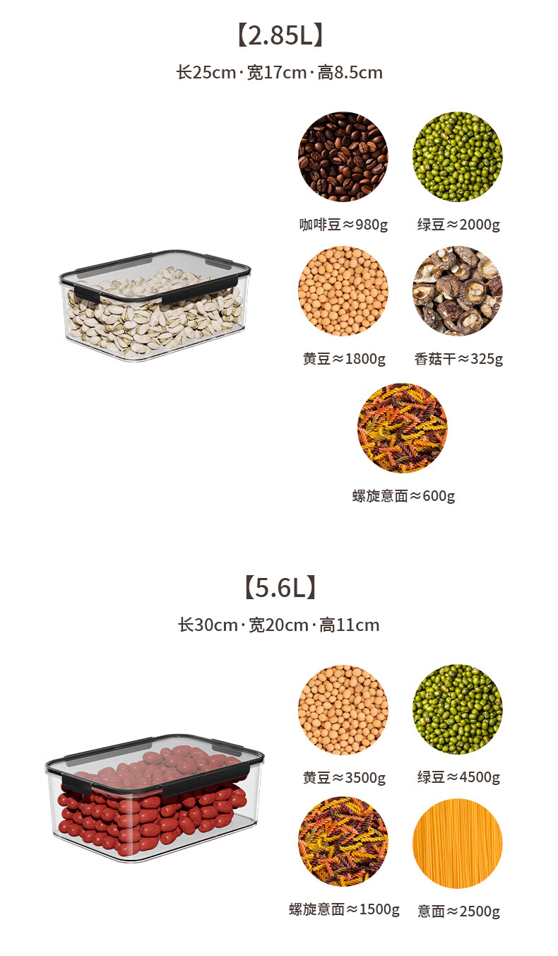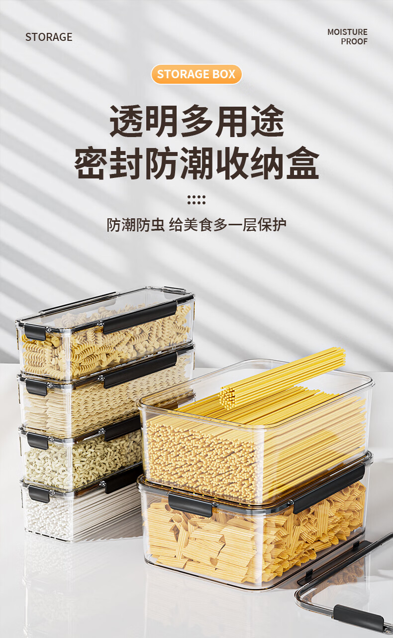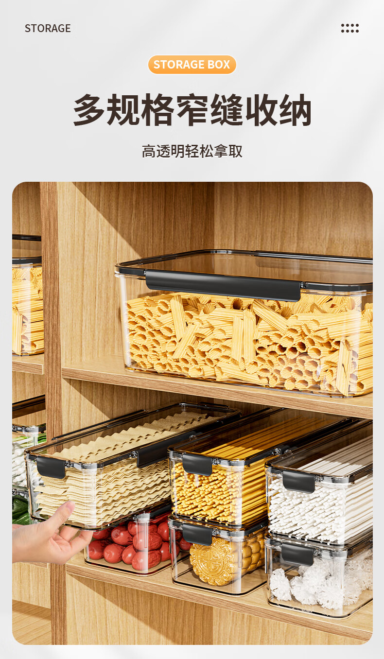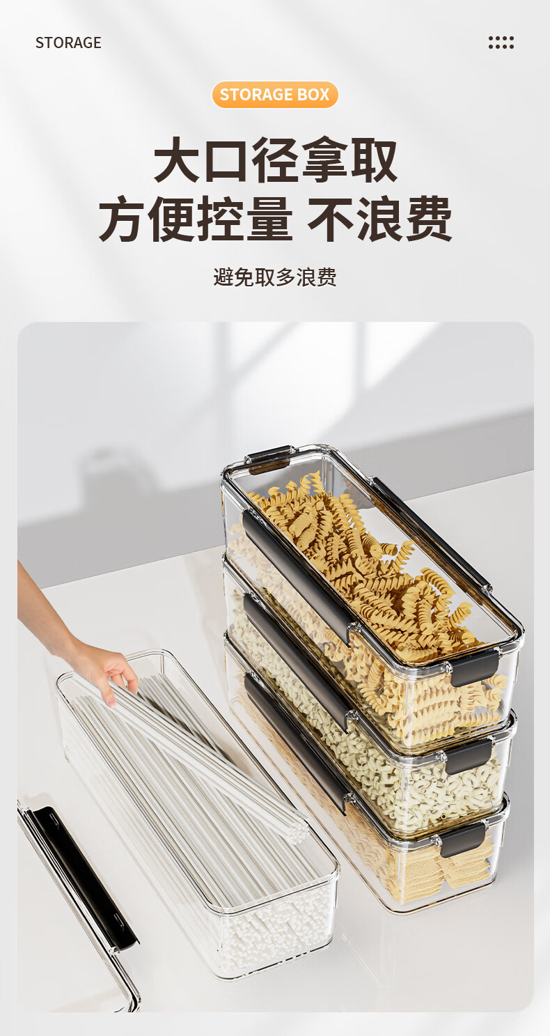 稻草熊五谷杂粮面条收纳盒家用透明塑料储物盒食物保鲜盒分装盒意面盒子 【5.6L】 30*20*11cm