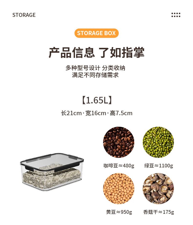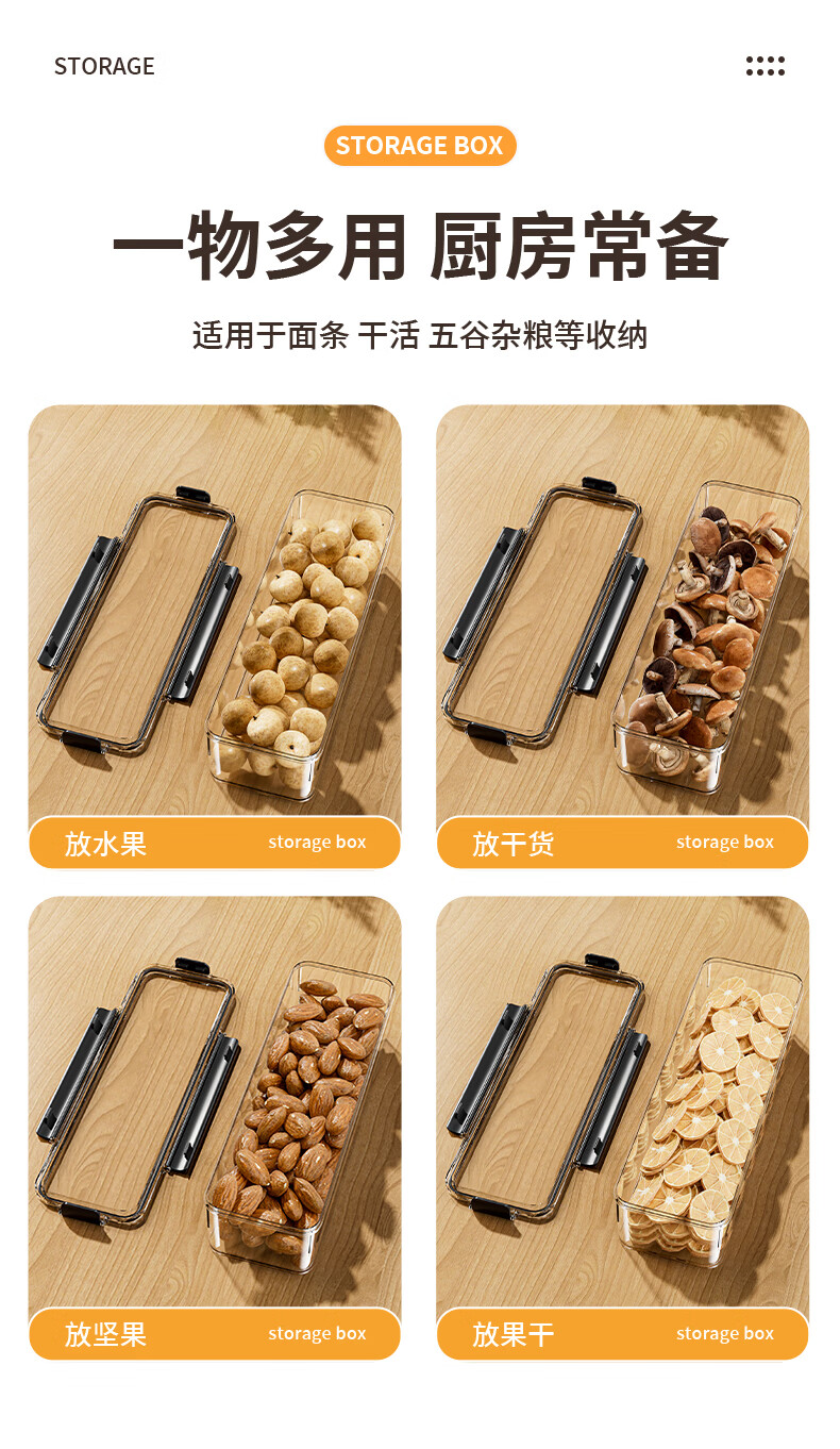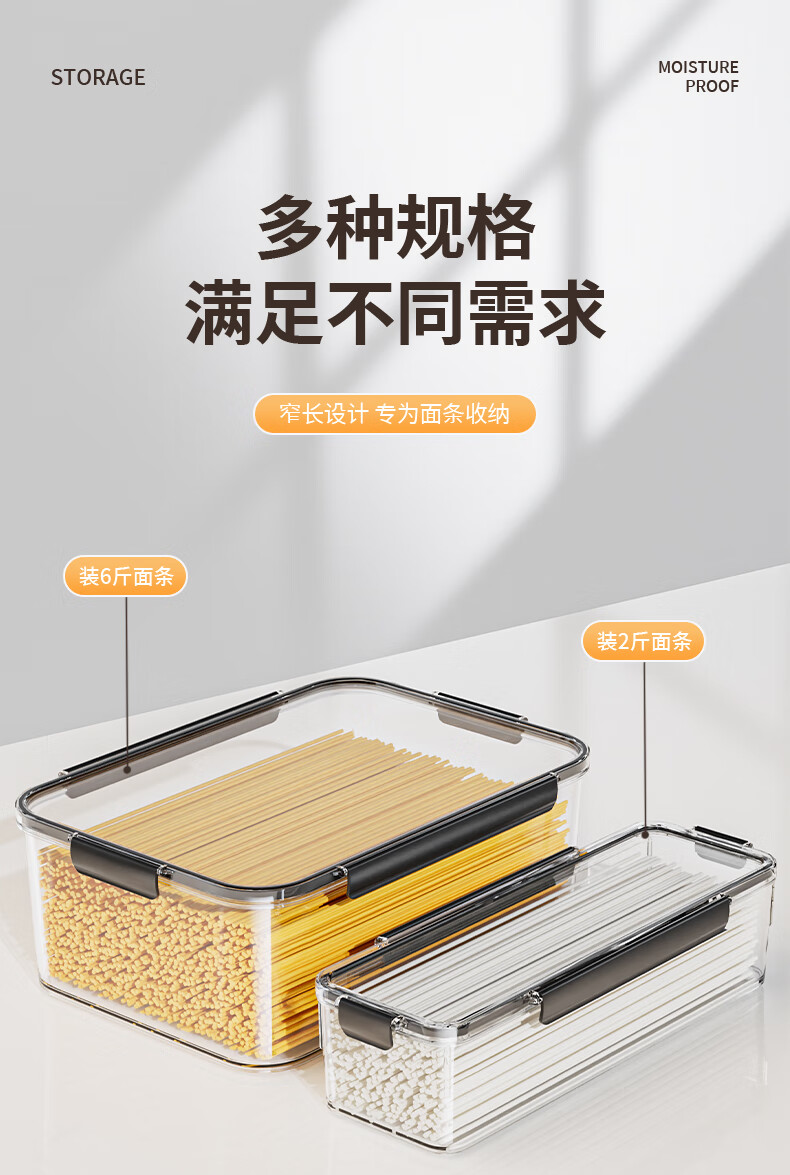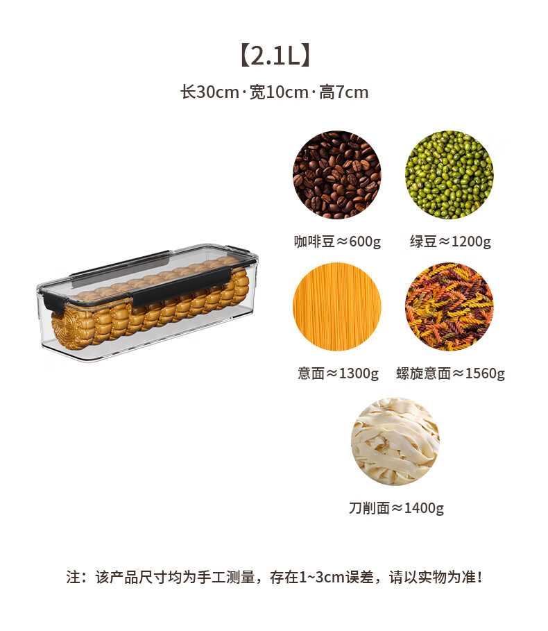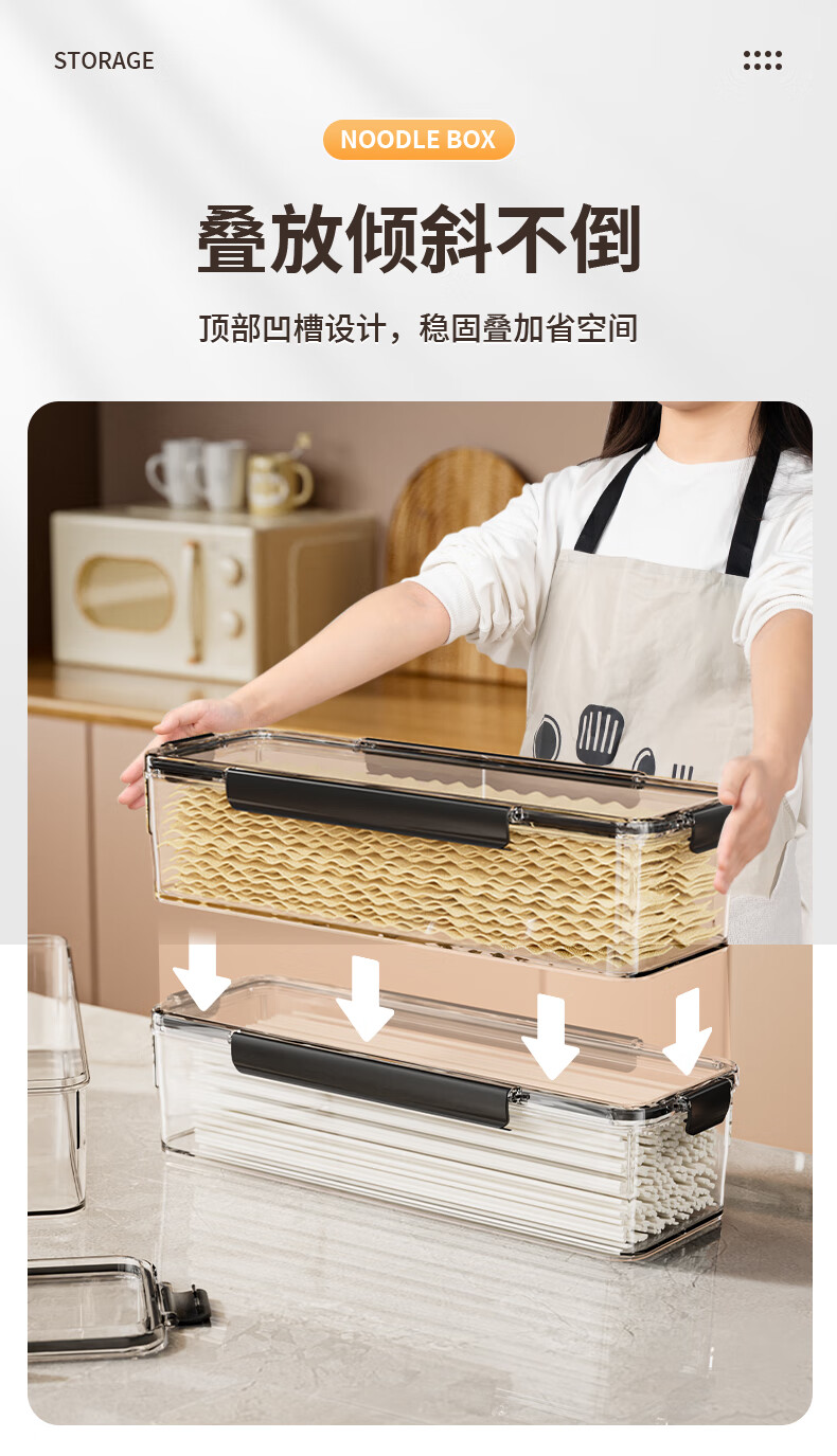 稻草熊五谷杂粮面条收纳盒家用透明塑料储物盒食物保鲜盒分装盒意面盒子 【5.6L】 30*20*11cm
