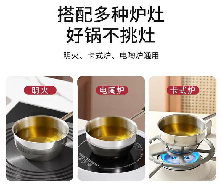 简漾不锈钢烧油榨油烧油迷你淋油炝油锅厨房泼油小锅家用热油锅具配件 食品级不锈钢 200m