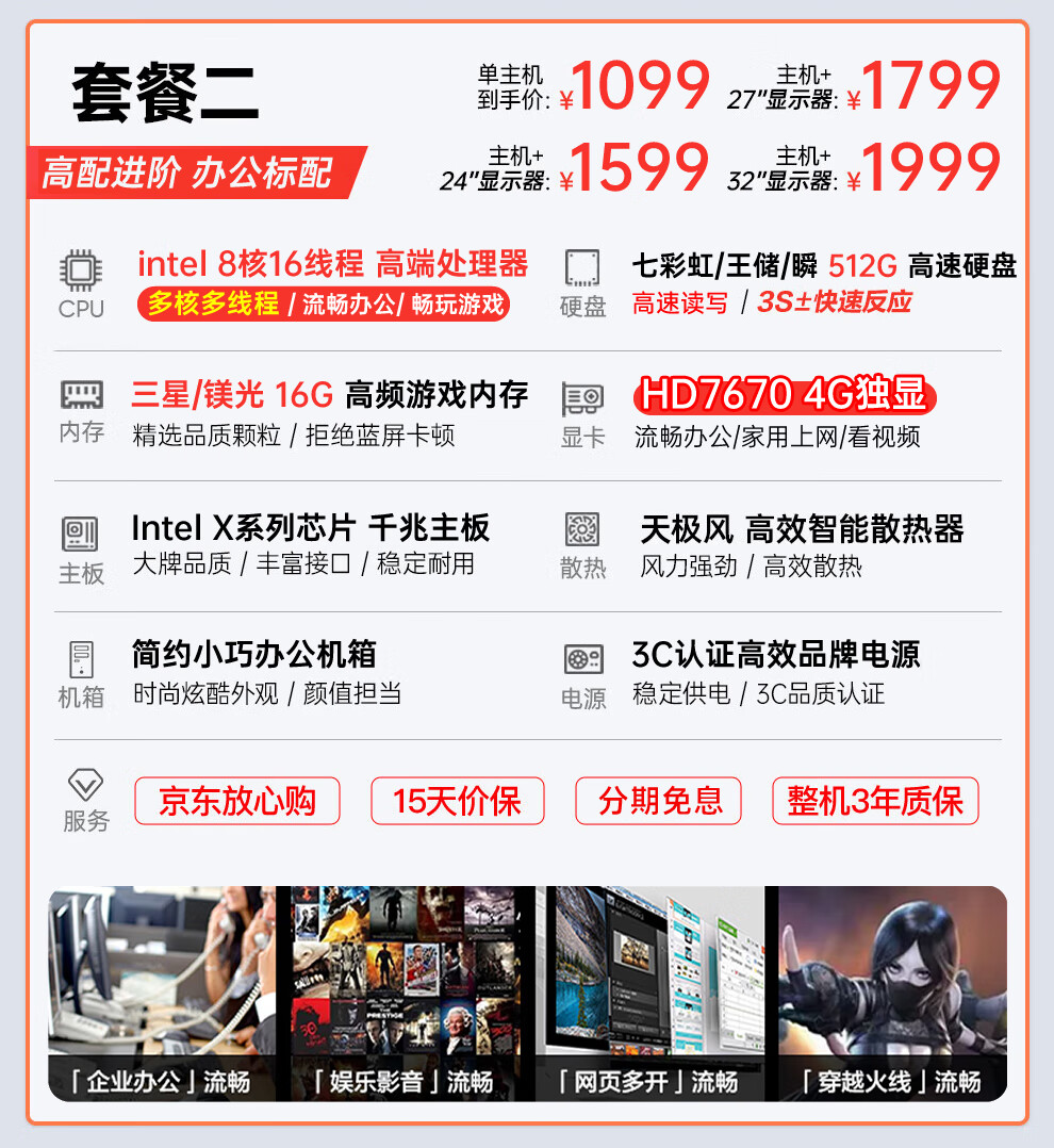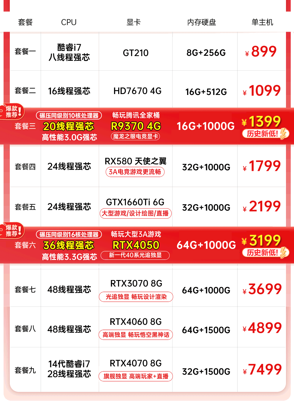 领睿英特尔酷睿i7升24核RTX4060独显64G内存台式电脑主机黑神话悟空3A游戏办公设计师渲染组装电脑全套 四:24线程强芯+32G+RX580/游戏电竞 主机