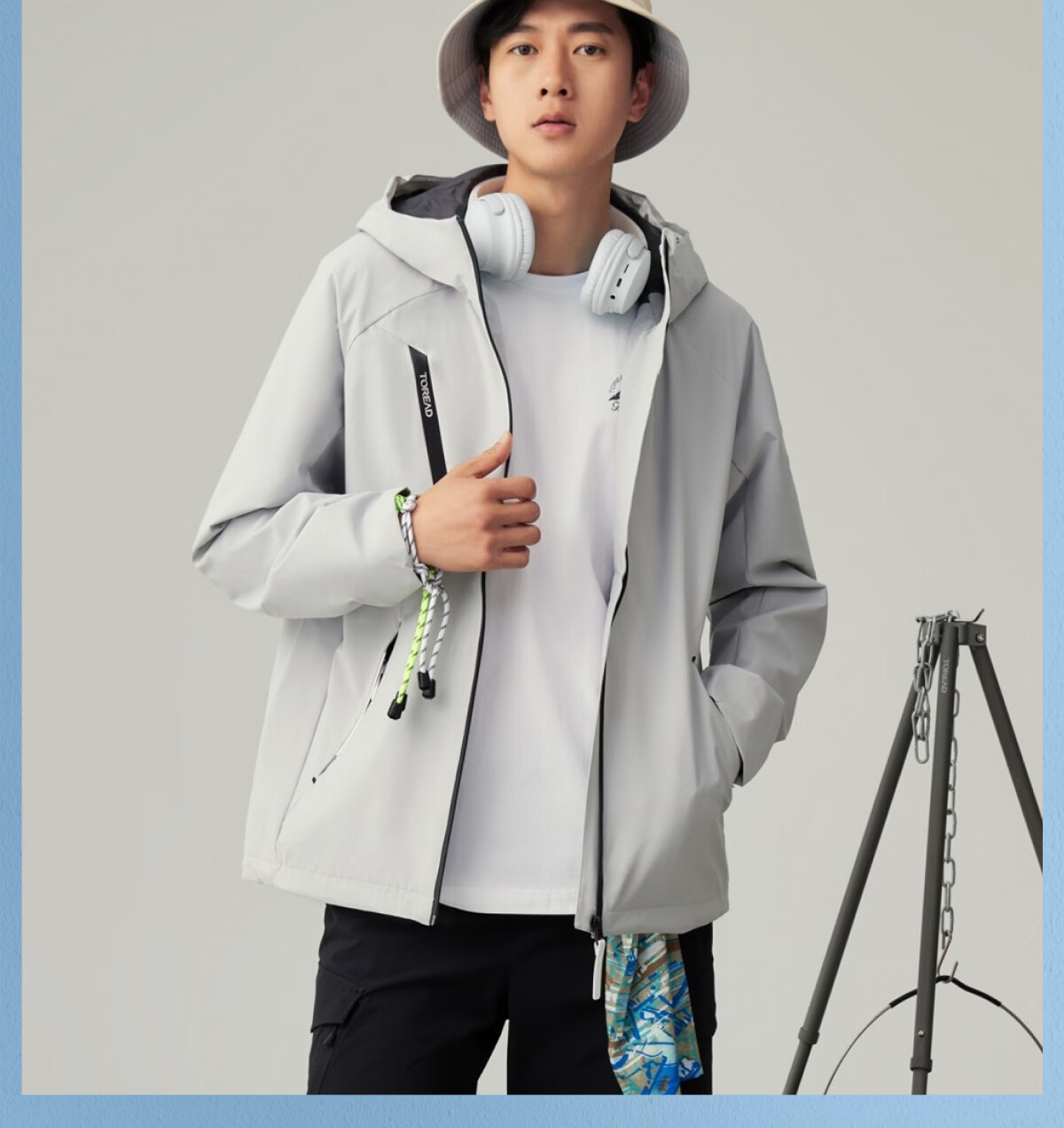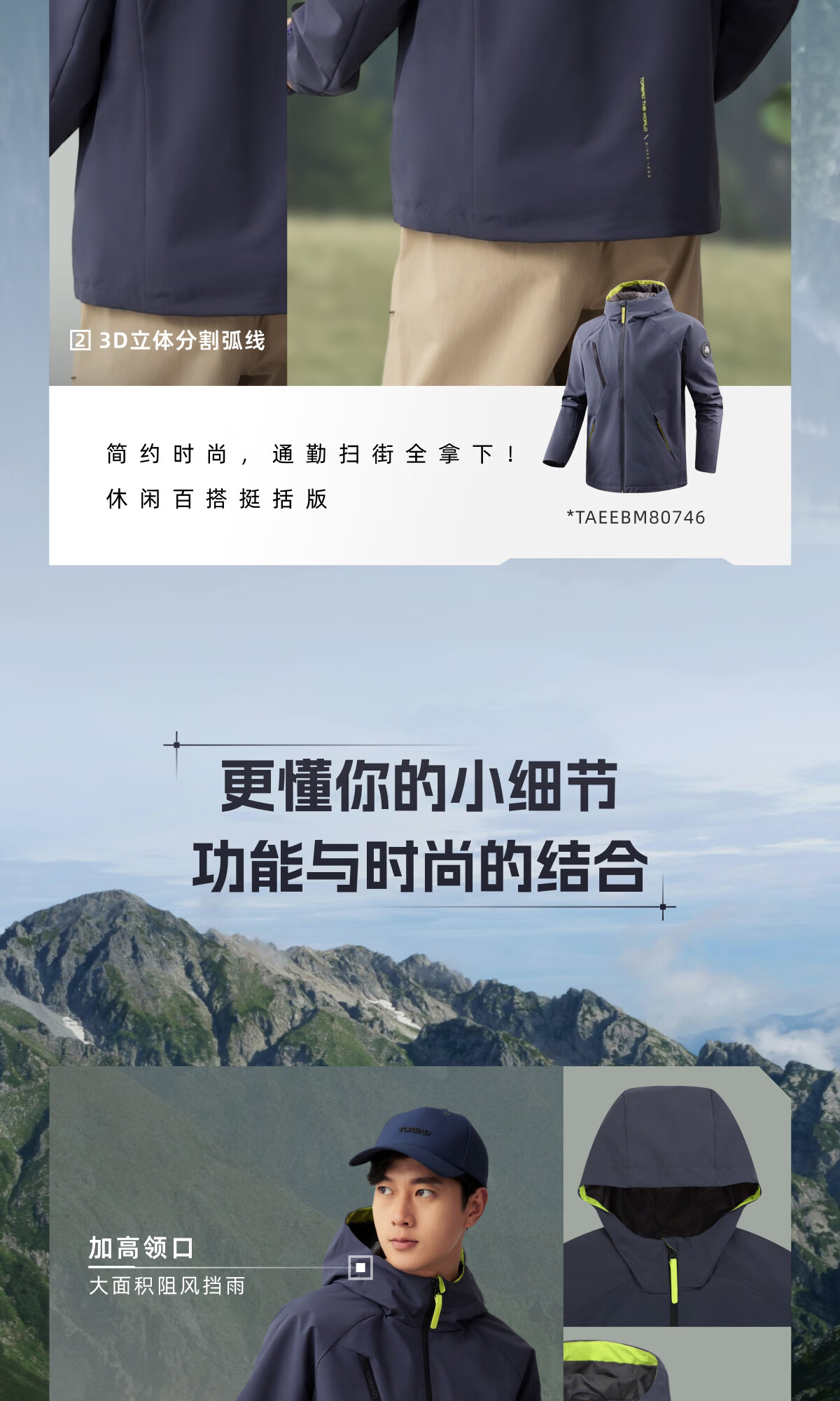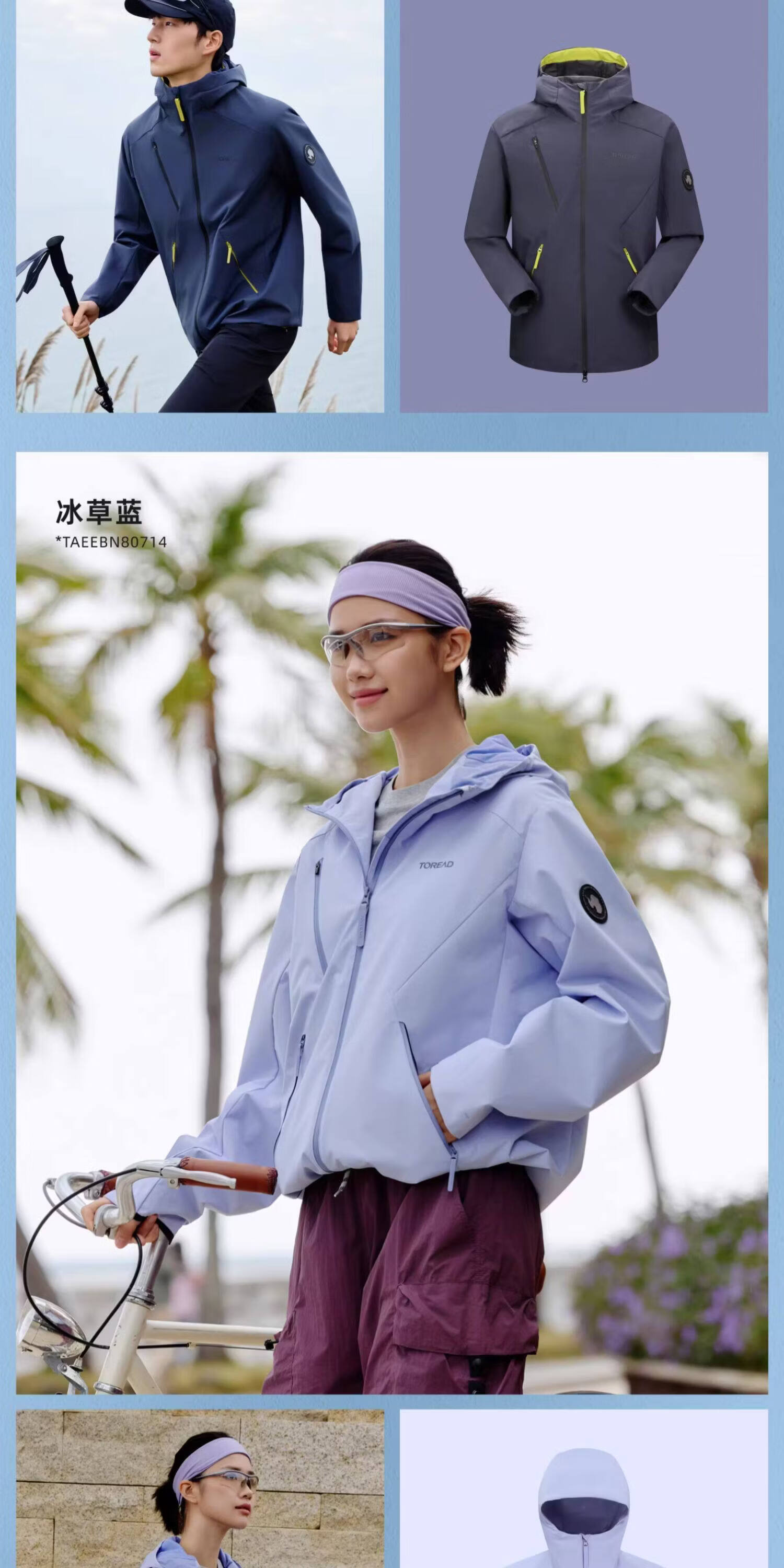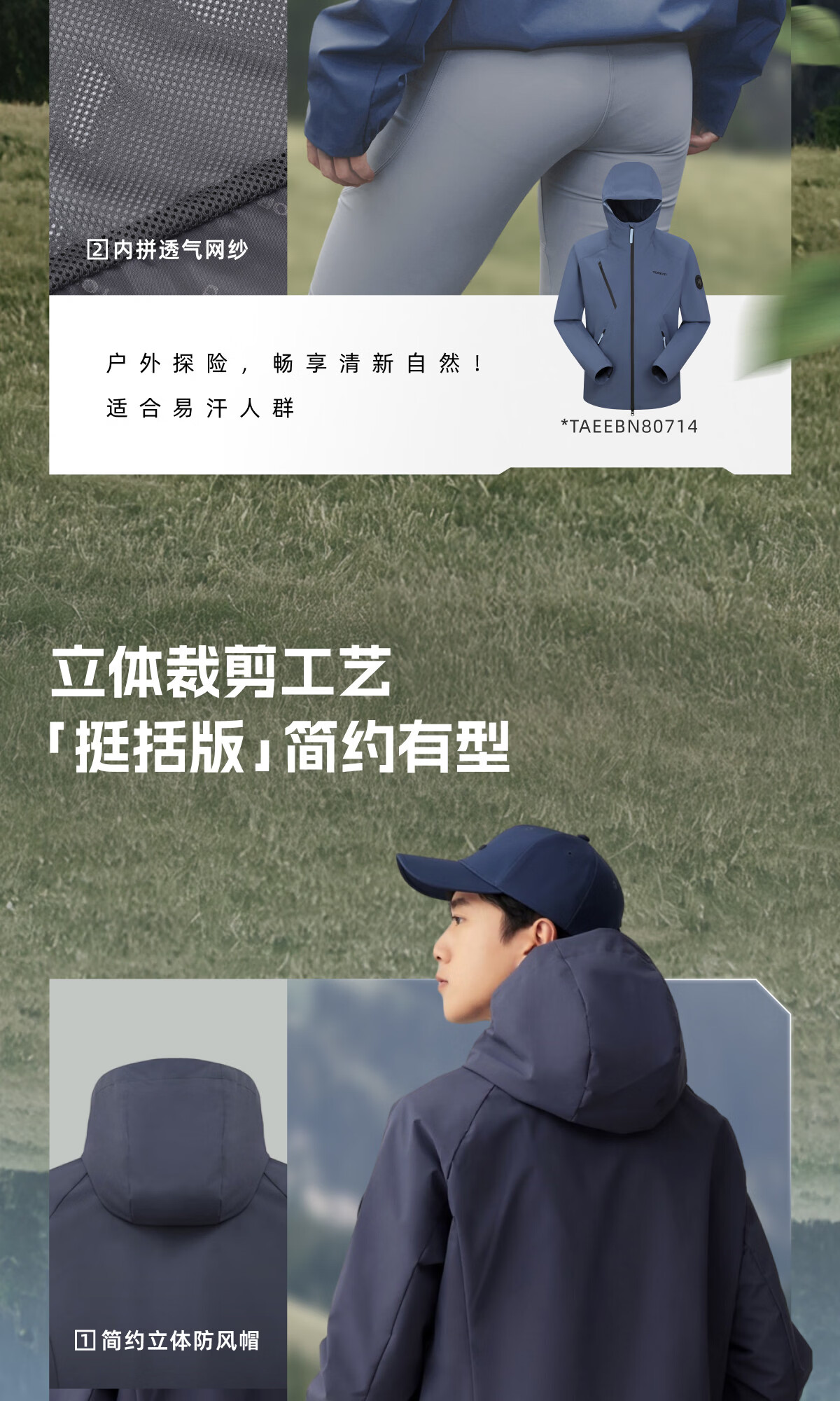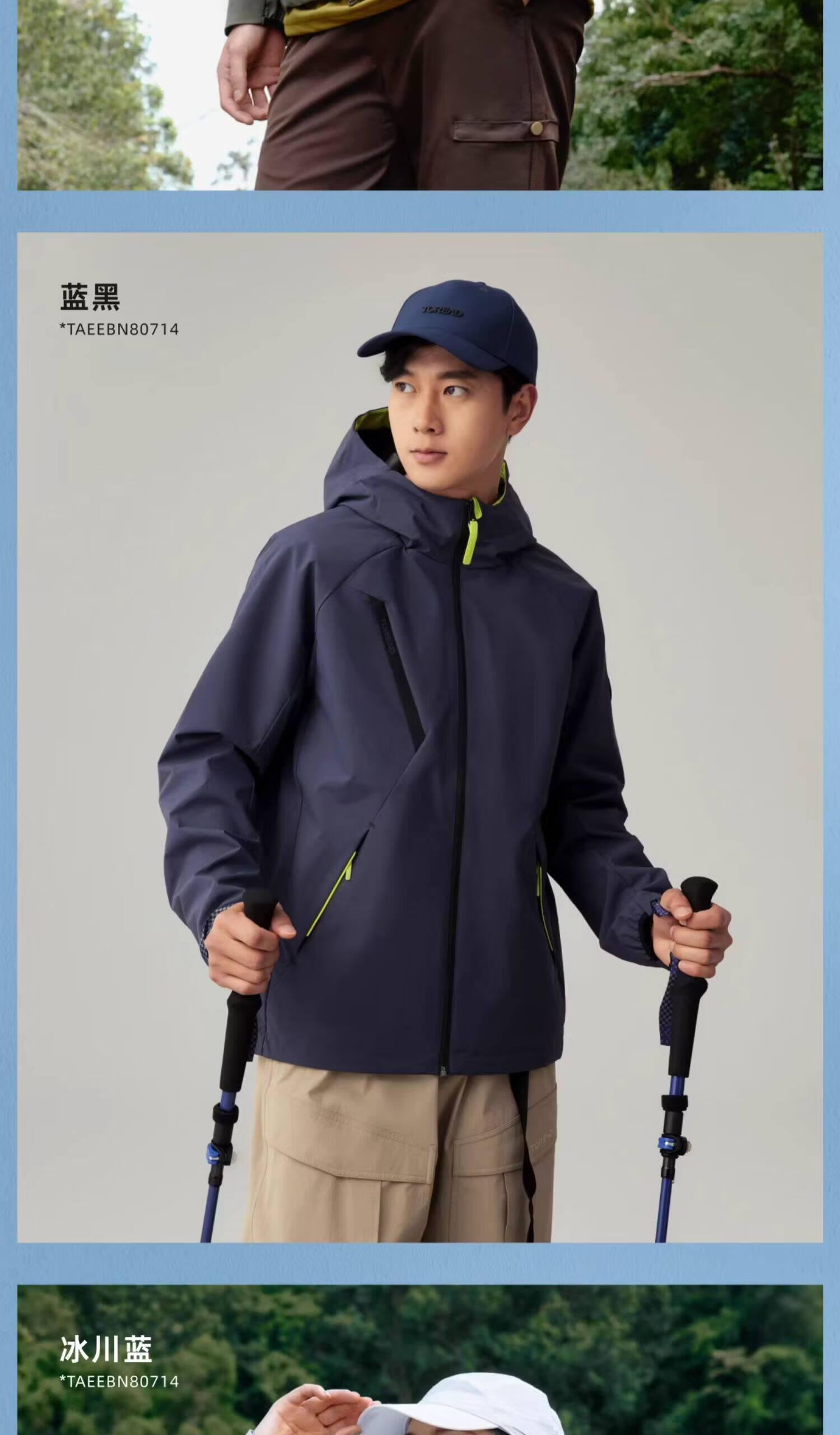 探路者【山行】软壳衣春秋户外运动徒步登山服防风防泼水连帽功能外套 蓝黑-TAEEBM80746-男女同款 XL