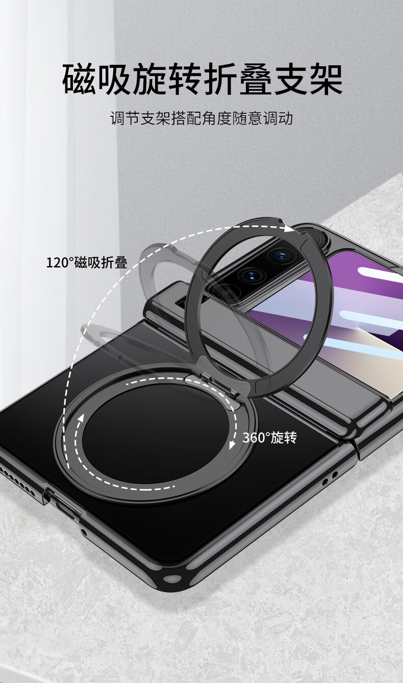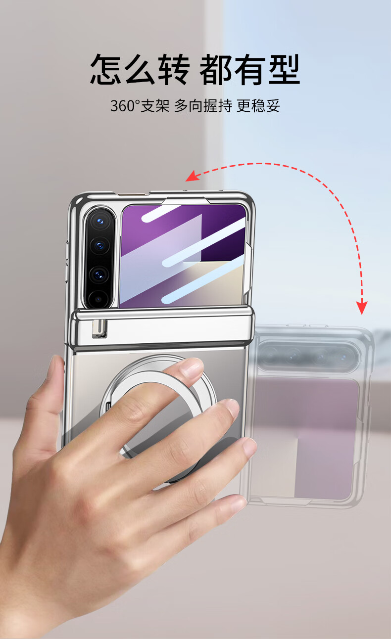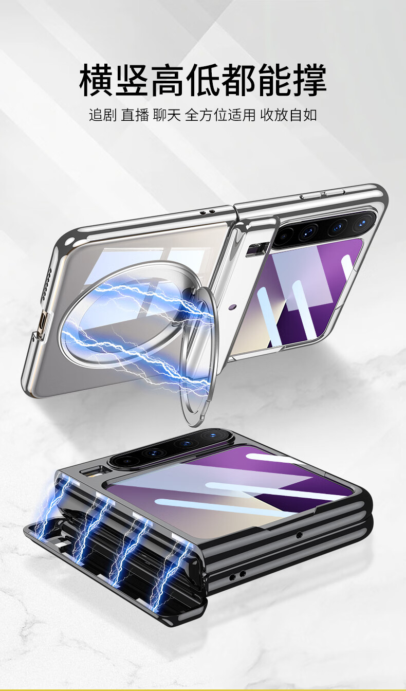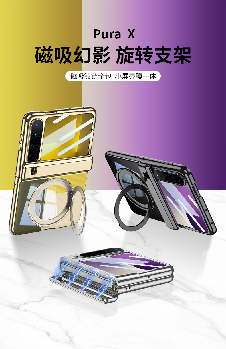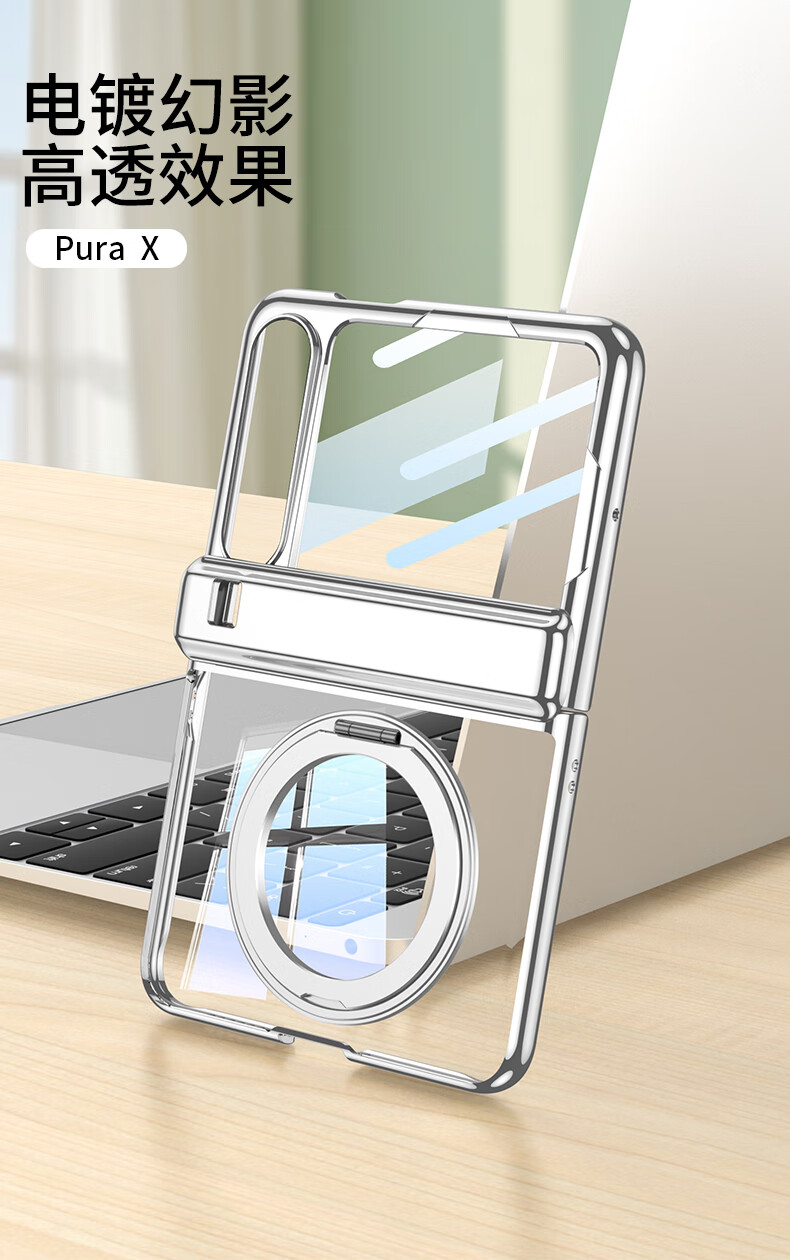 麦焕适用华为PuraX阔折叠手机壳puraX典藏版壳膜一体中轴铰链镜头加高小屏保护旋转支架防摔保护套 【夜光银】透明款丨壳膜一体丨旋转支架 华为 Pura X/Pura X典藏版通用