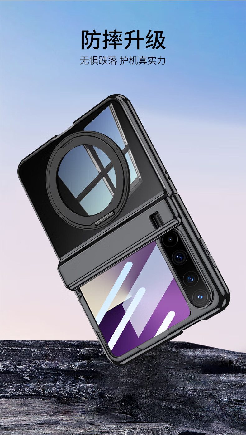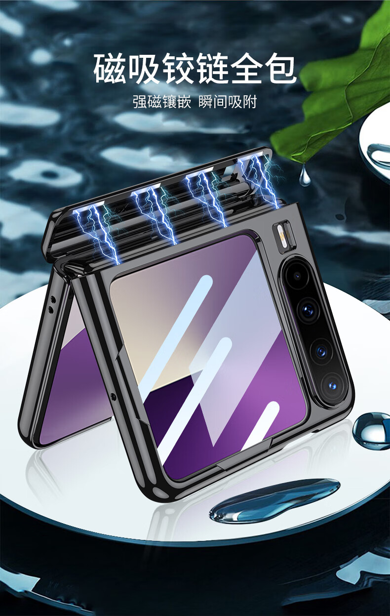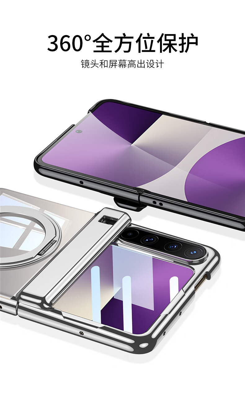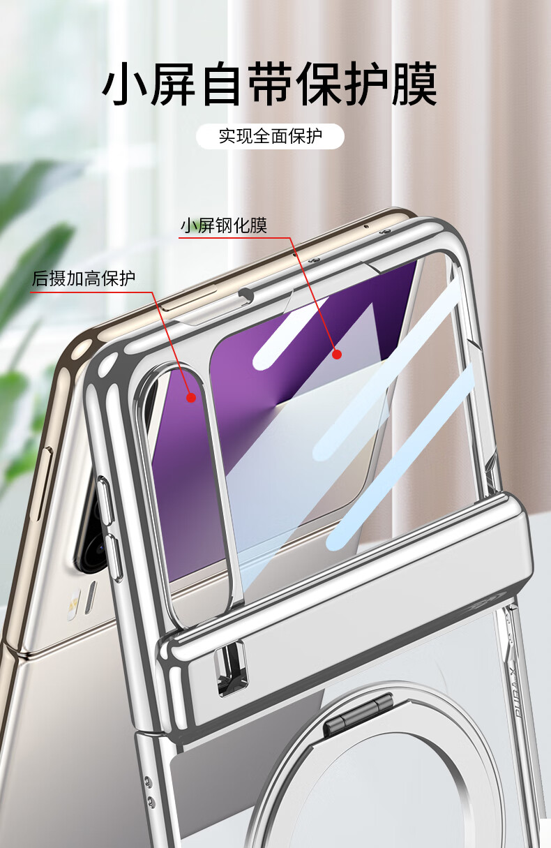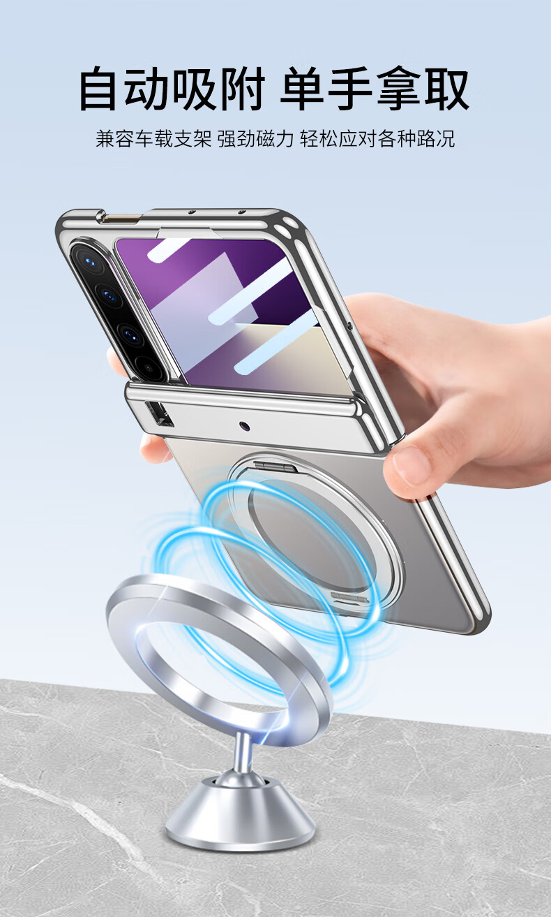麦焕适用华为PuraX阔折叠手机壳puraX典藏版壳膜一体中轴铰链镜头加高小屏保护旋转支架防摔保护套 【夜光银】透明款丨壳膜一体丨旋转支架 华为 Pura X/Pura X典藏版通用