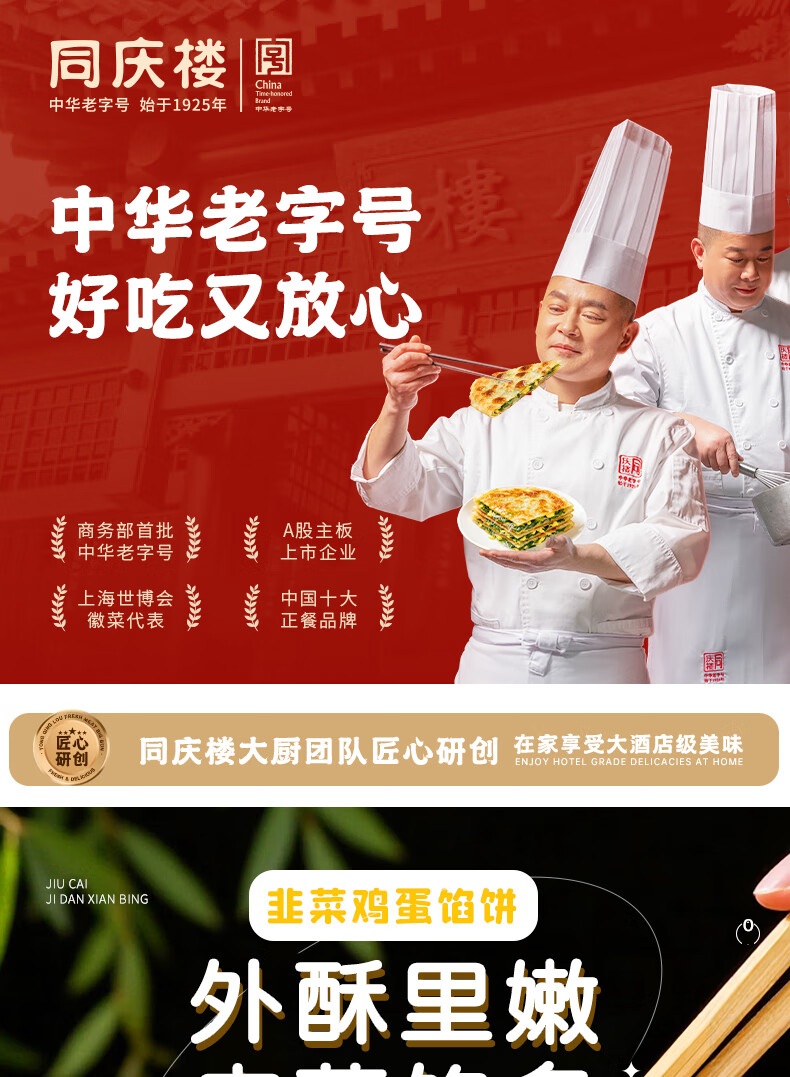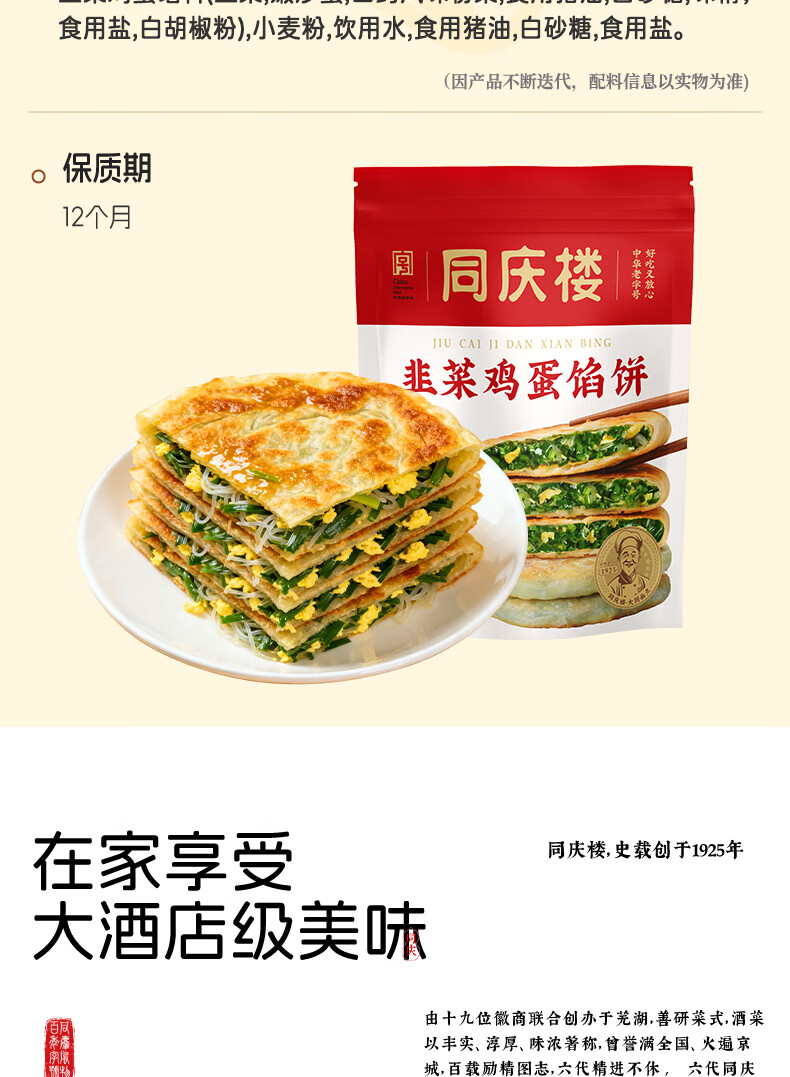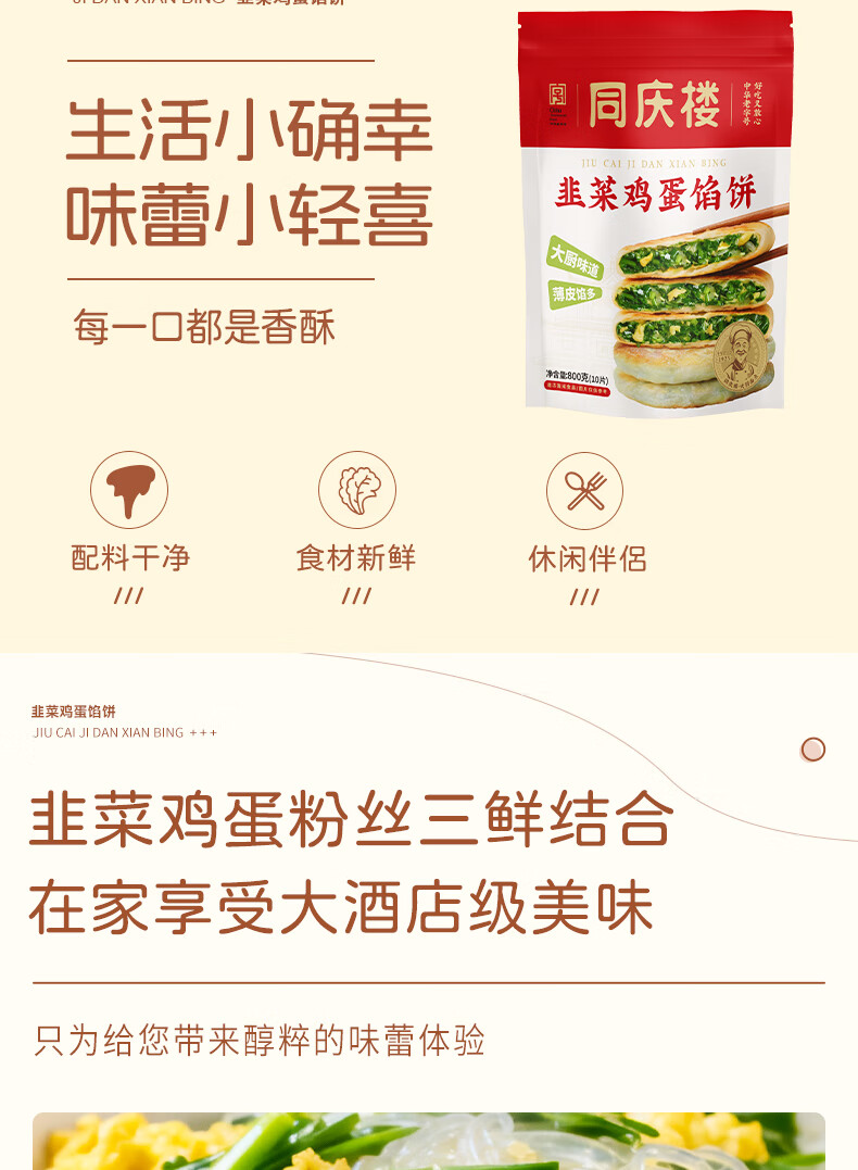 同庆楼香酥饼薄皮韭菜鸡蛋馅饼 韭菜盒子速食早餐面点加热即食源头直发 韭菜鸡蛋馅饼2袋+老面小笼包500g