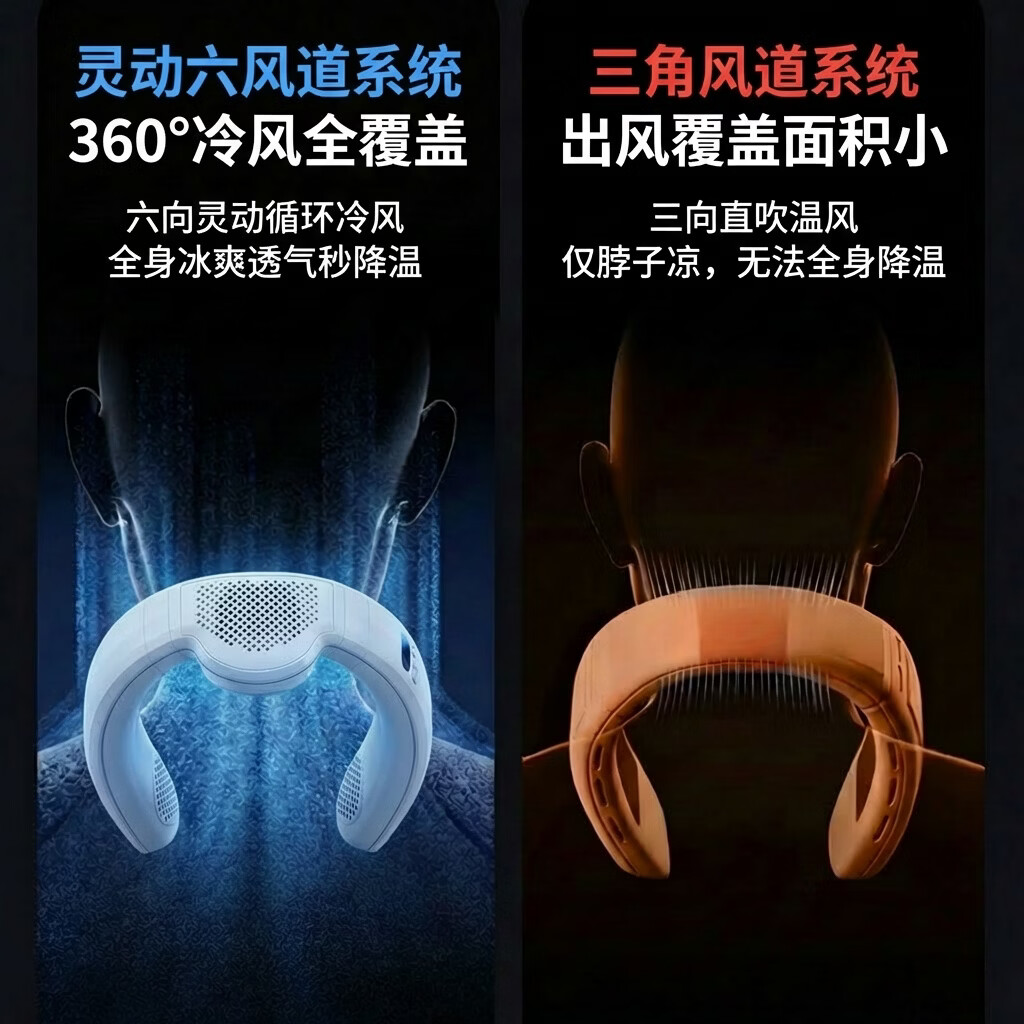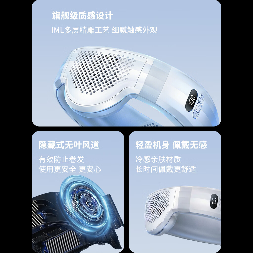 益克松挂脖风扇便携式随身制冷空调超长续航无叶静音电风扇户外运动usb头戴小风扇 常规版【礼盒装】 7000mAh