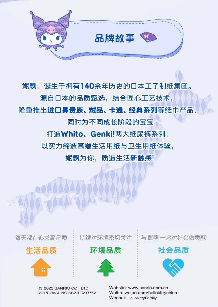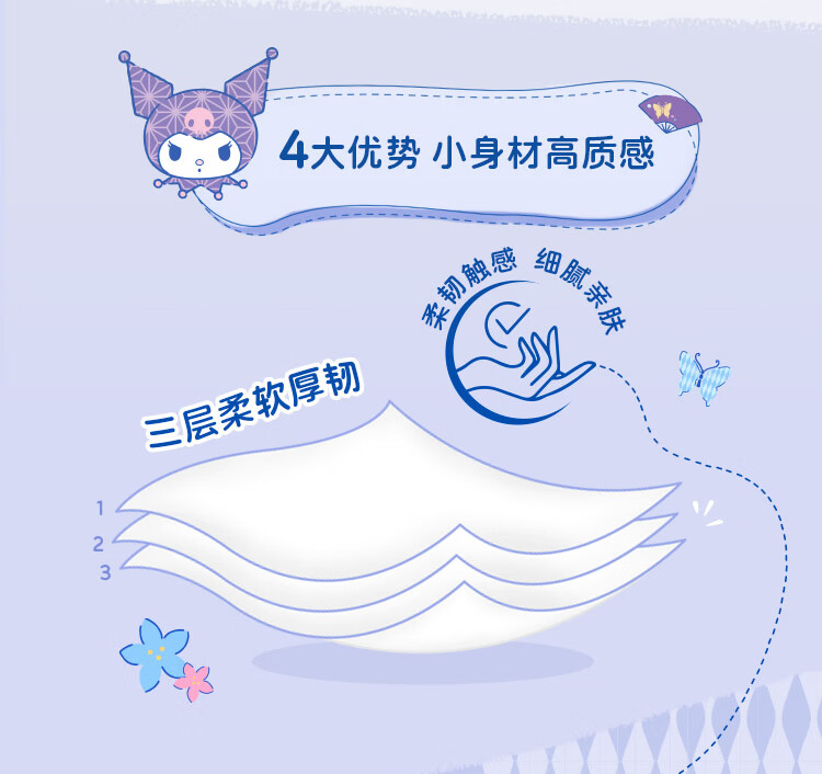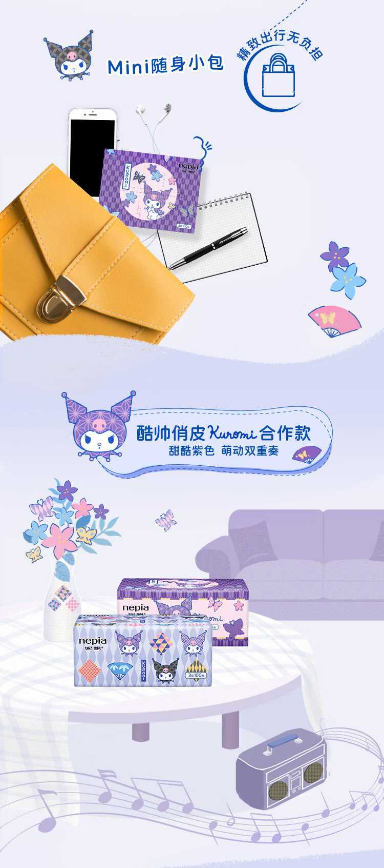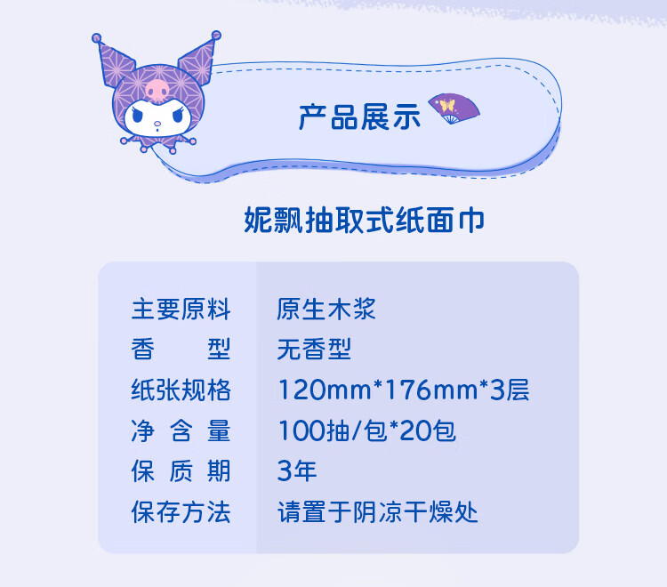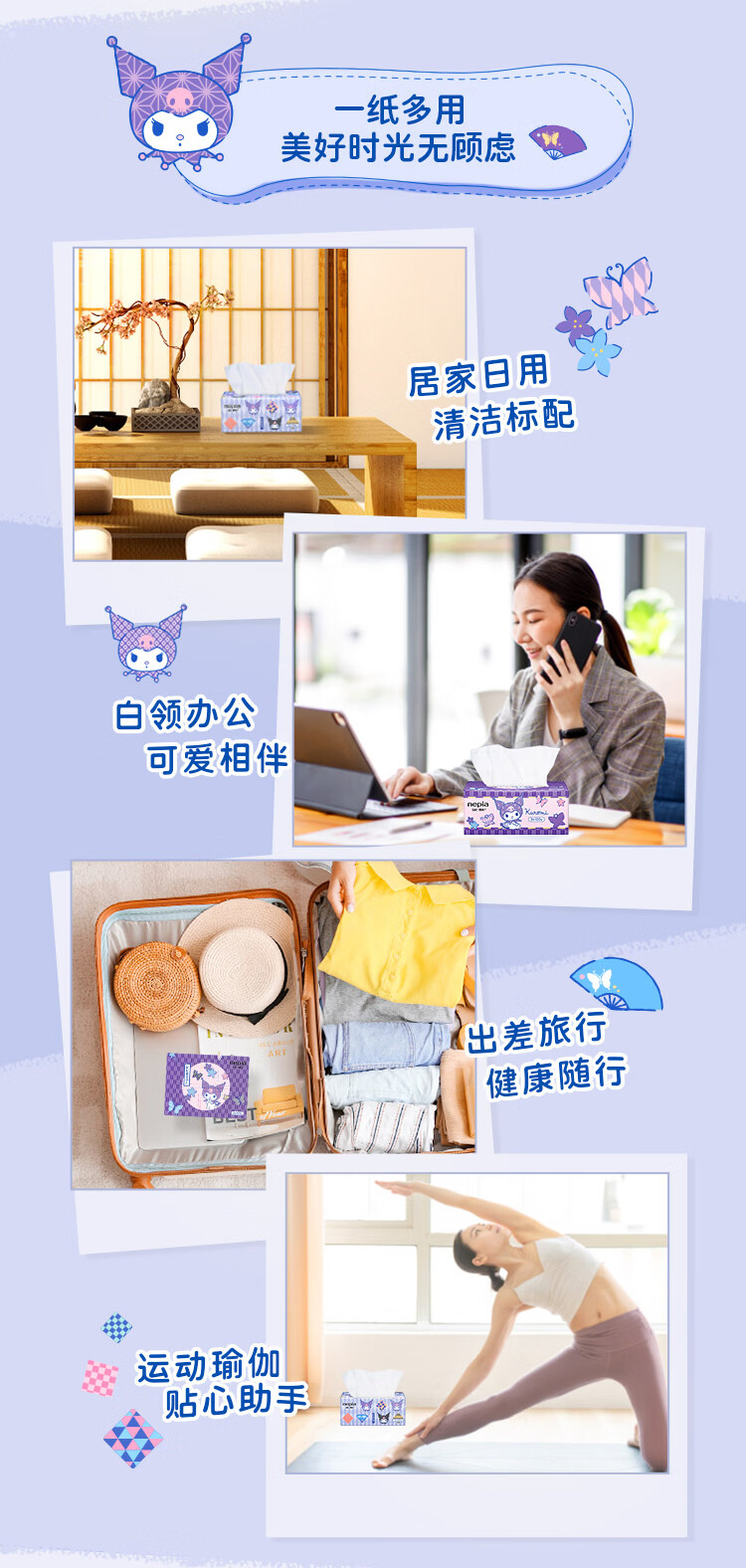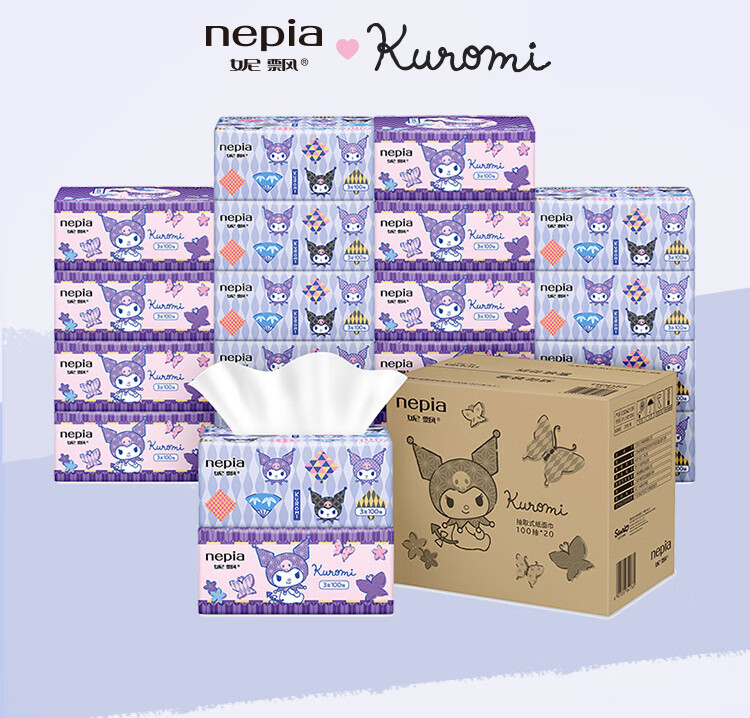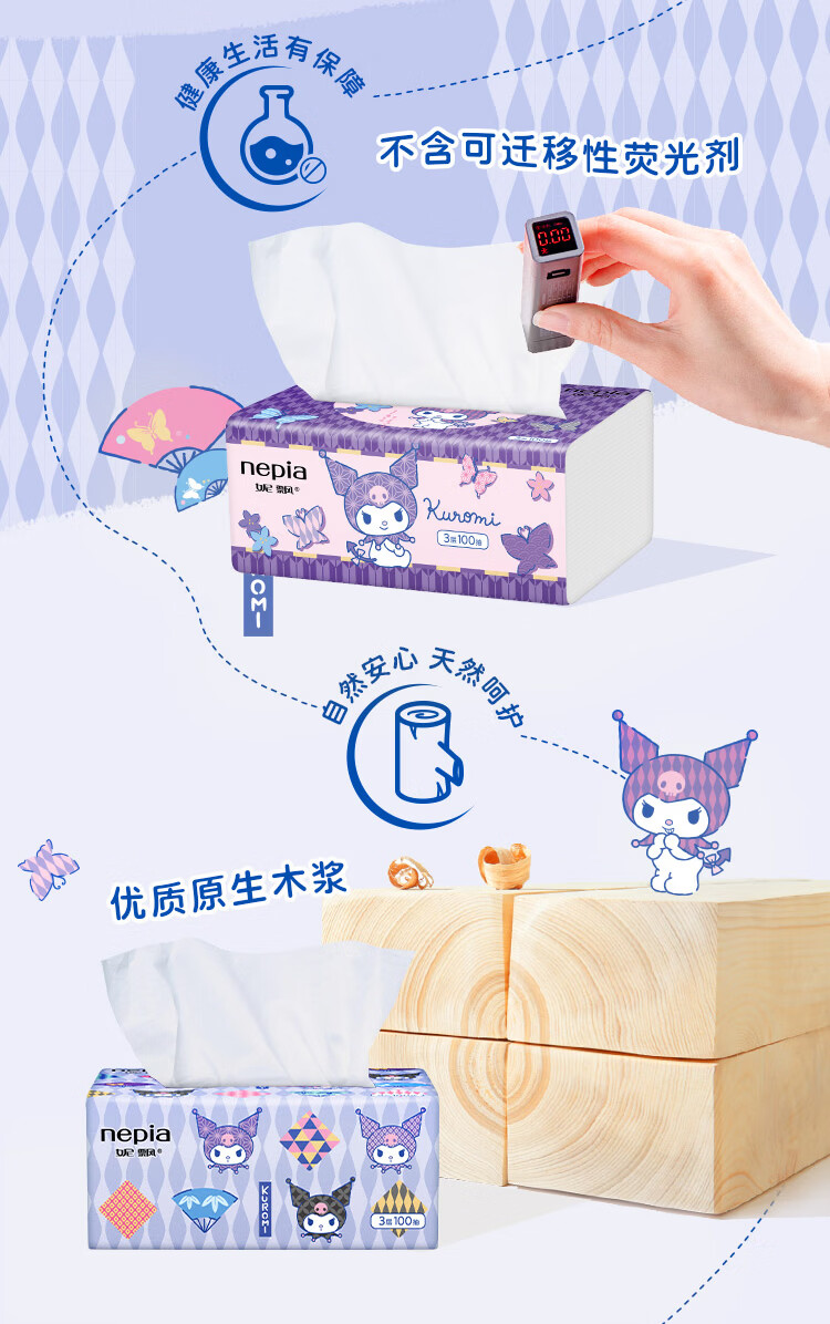 妮飘(Nepia)抽纸三丽鸥库洛米大规格加厚面巾纸家用箱装 5层 80抽*8包