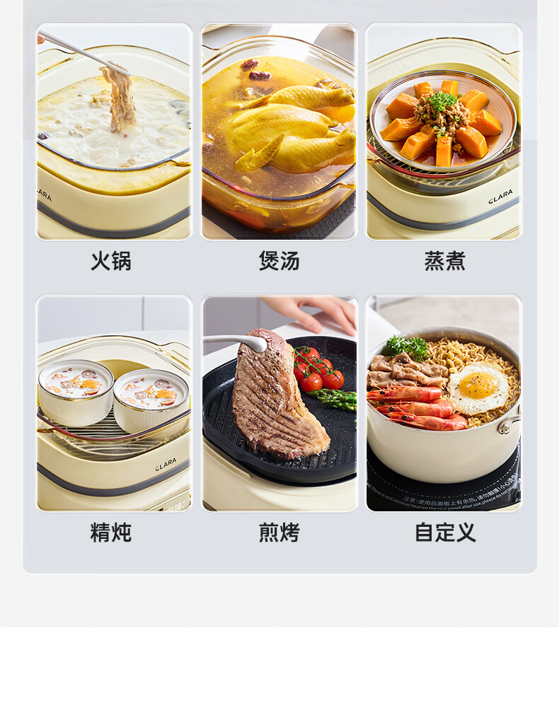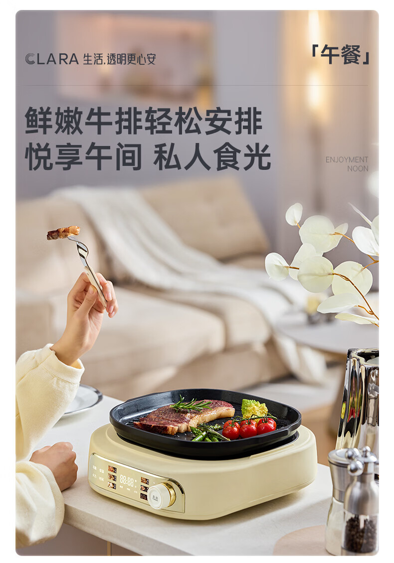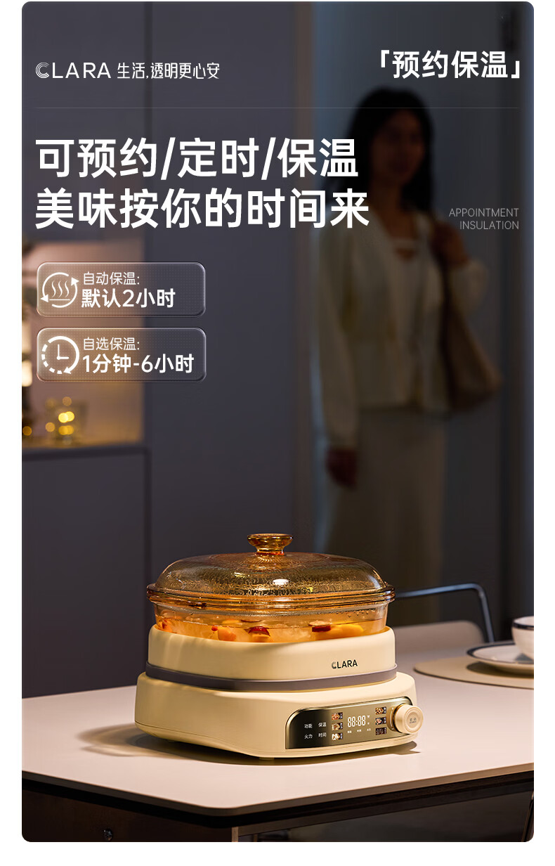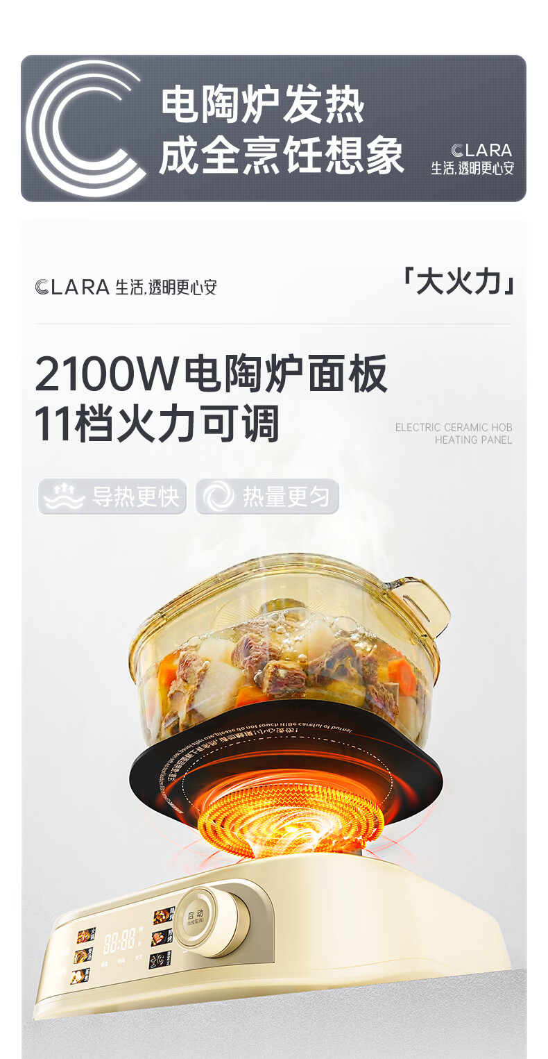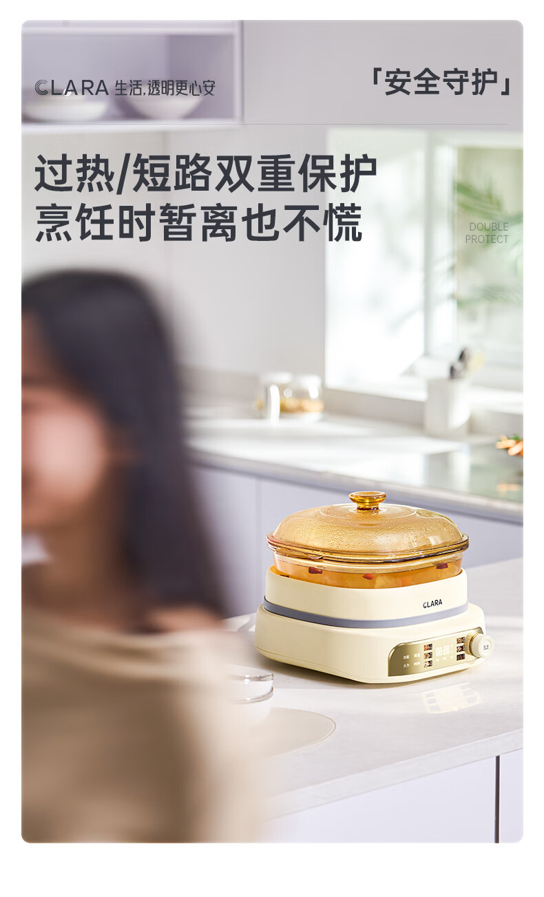 CLARA可莱全玻璃多功能料理锅涮烤锅煎烤肉火锅电蒸煮锅0涂层分体式电热锅4-6人电煮锅乔迁好礼新婚礼