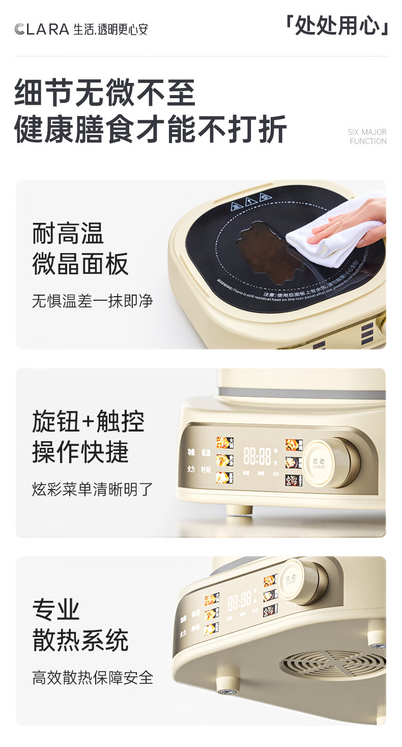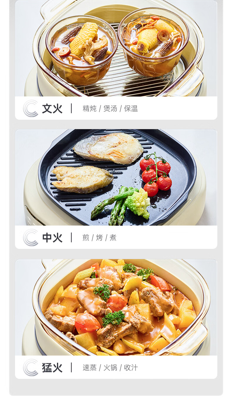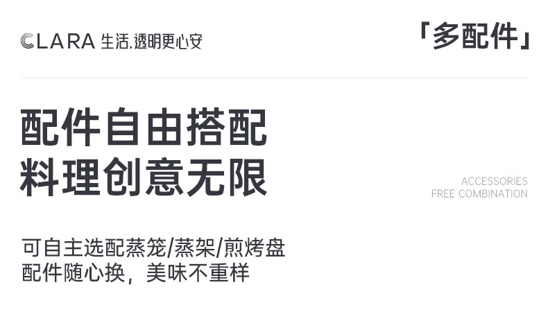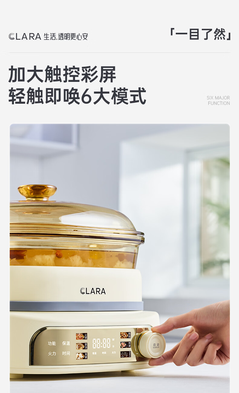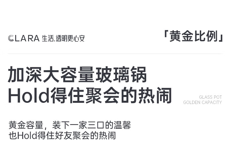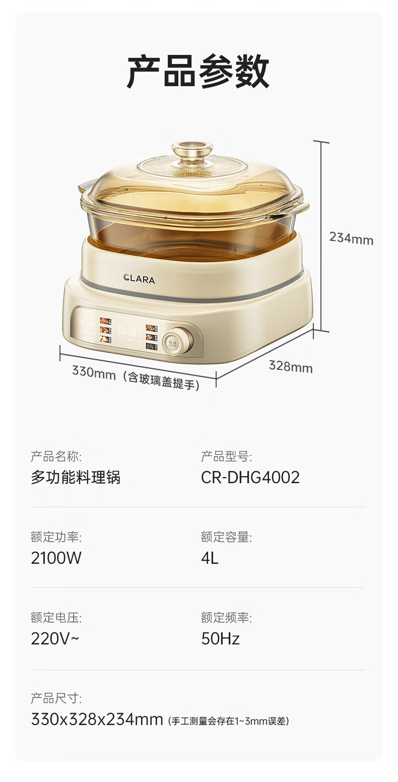 CLARA可莱全玻璃多功能料理锅涮烤锅煎烤肉火锅电蒸煮锅0涂层分体式电热锅4-6人电煮锅乔迁好礼新婚礼