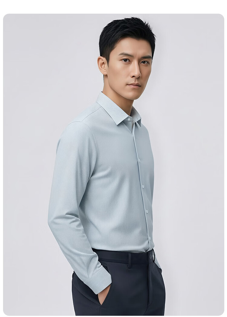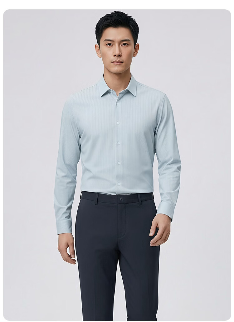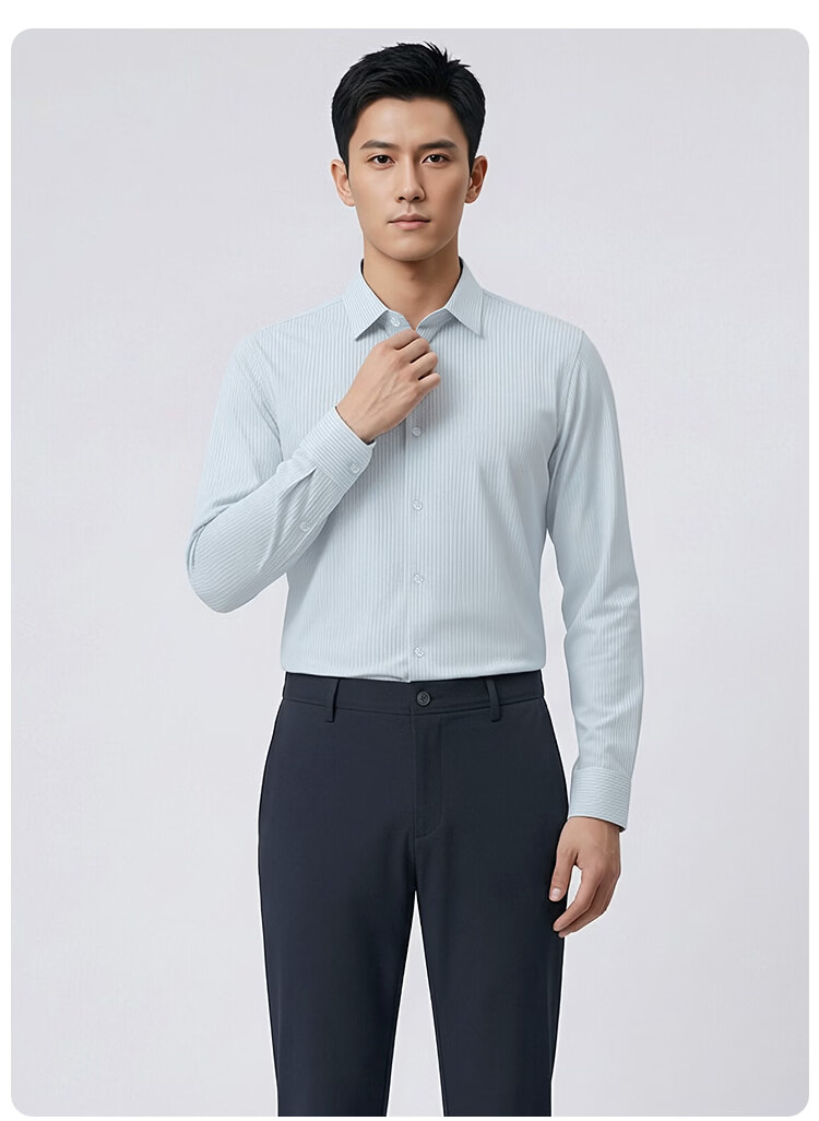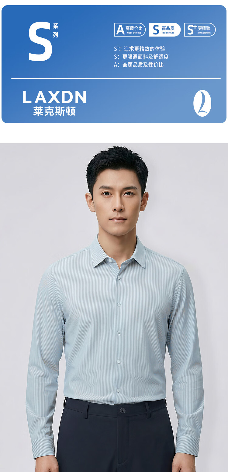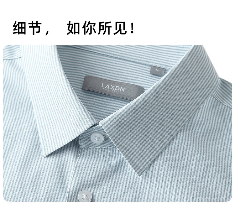 莱克斯顿(laxdn)长袖衬衫男春秋经典竖条纹速干柔软舒适顺滑商务通勤正装衬衫男 浅绿色 S