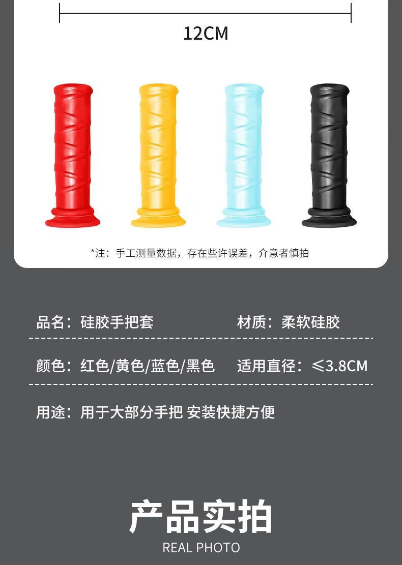 适用摩托车手把套电动车硅胶把套防滑耐磨握把套手柄加厚保护 黑色-硅胶手把套(一对2只)