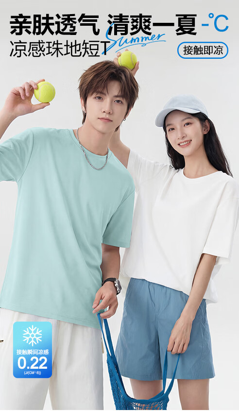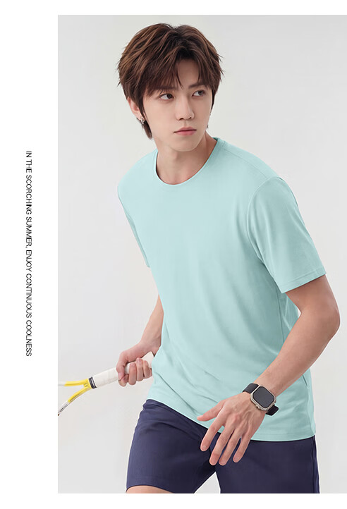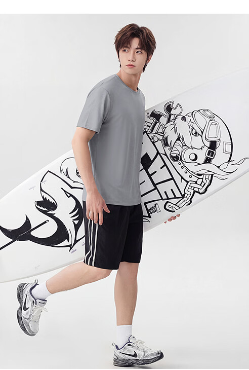真维斯(Jeanswest)珠地凉感短袖t恤男款2026夏季轻薄透气半袖青少年圆领运动上衣服 中灰 最特别的 M