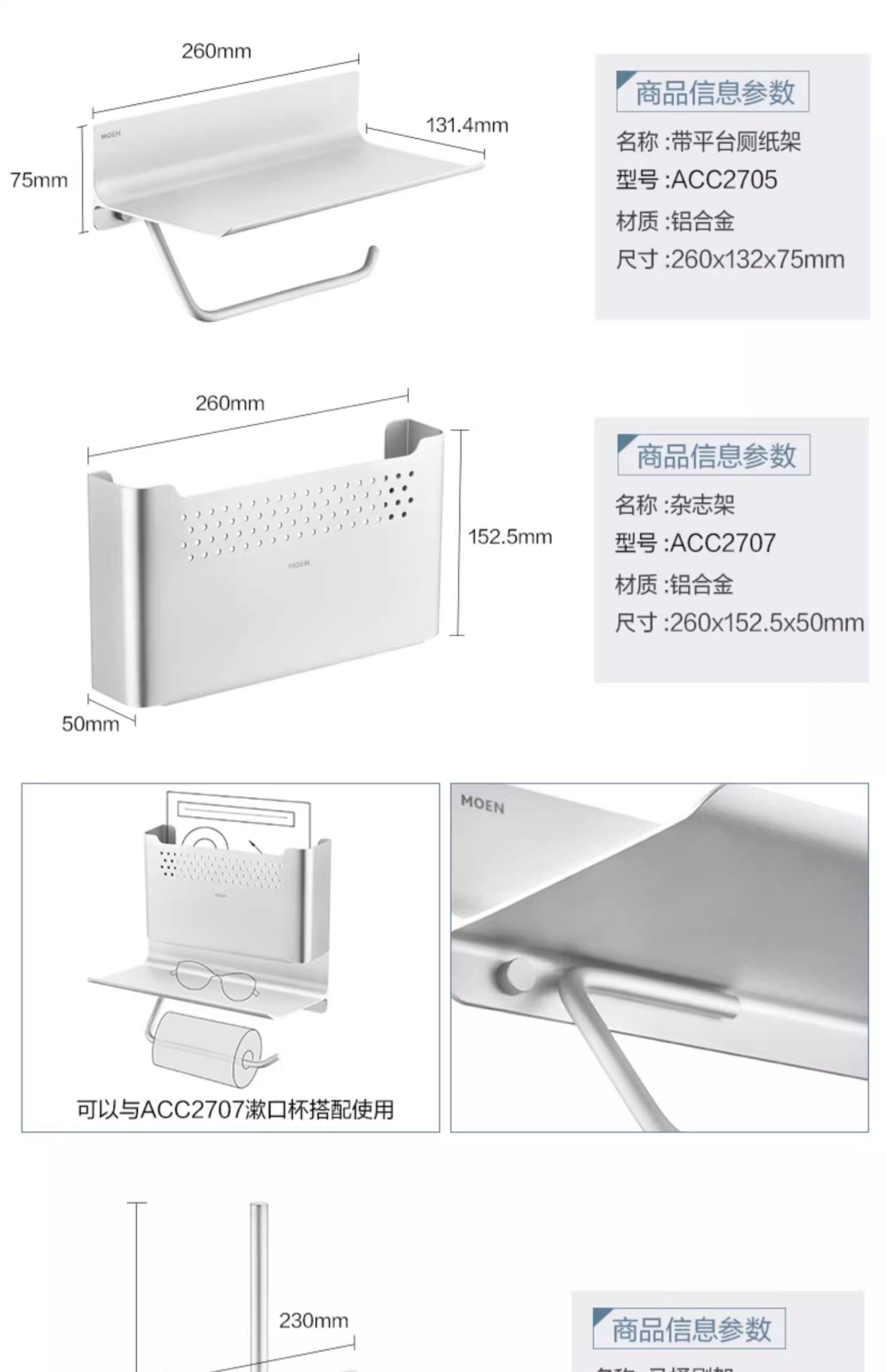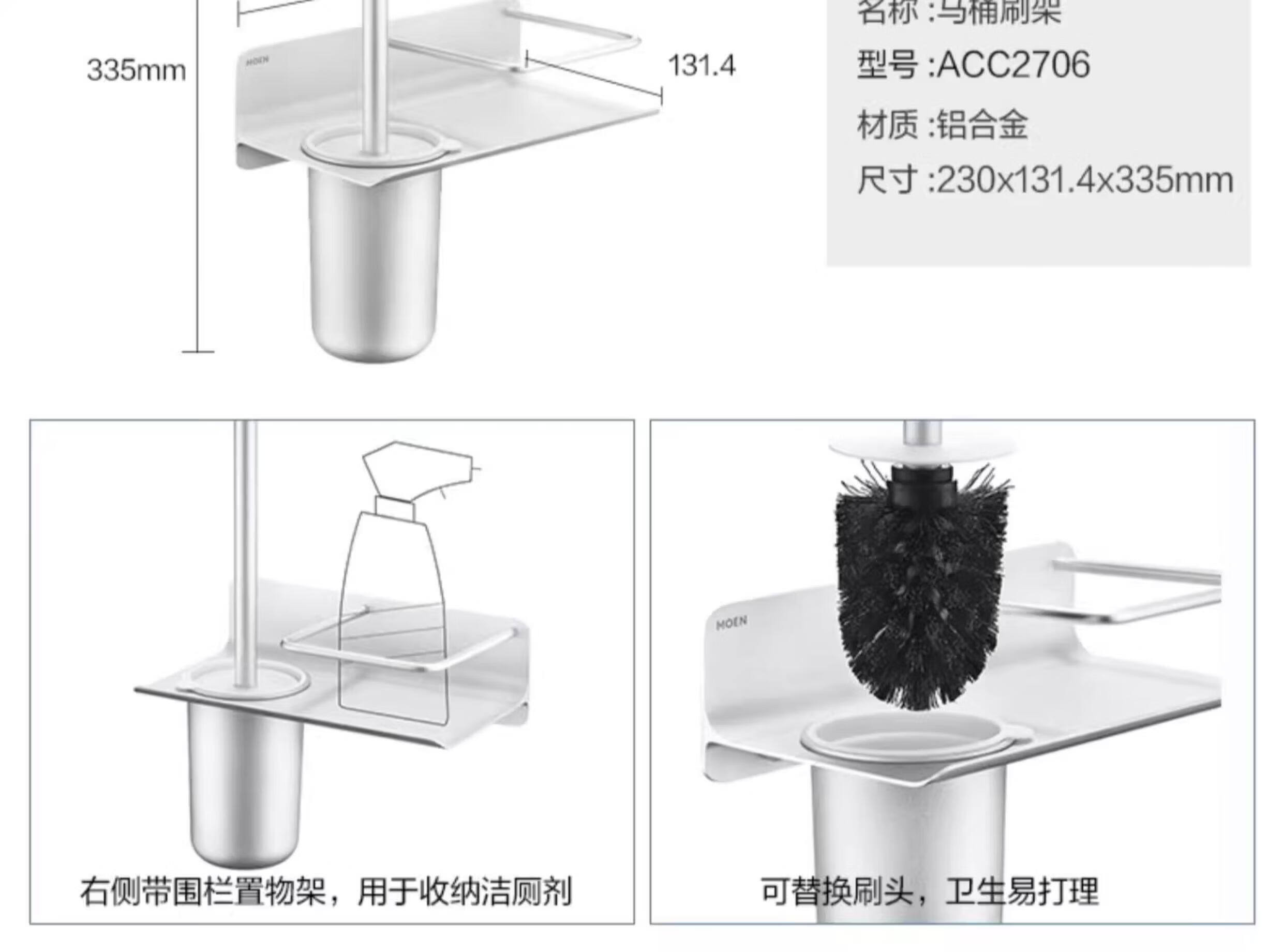摩恩(MOEN)特价摩恩浴巾架毛巾架黑色单杆简约毛巾杆卫生间卫浴置物架清仓 摩恩马桶刷架(星际银)ACC2706