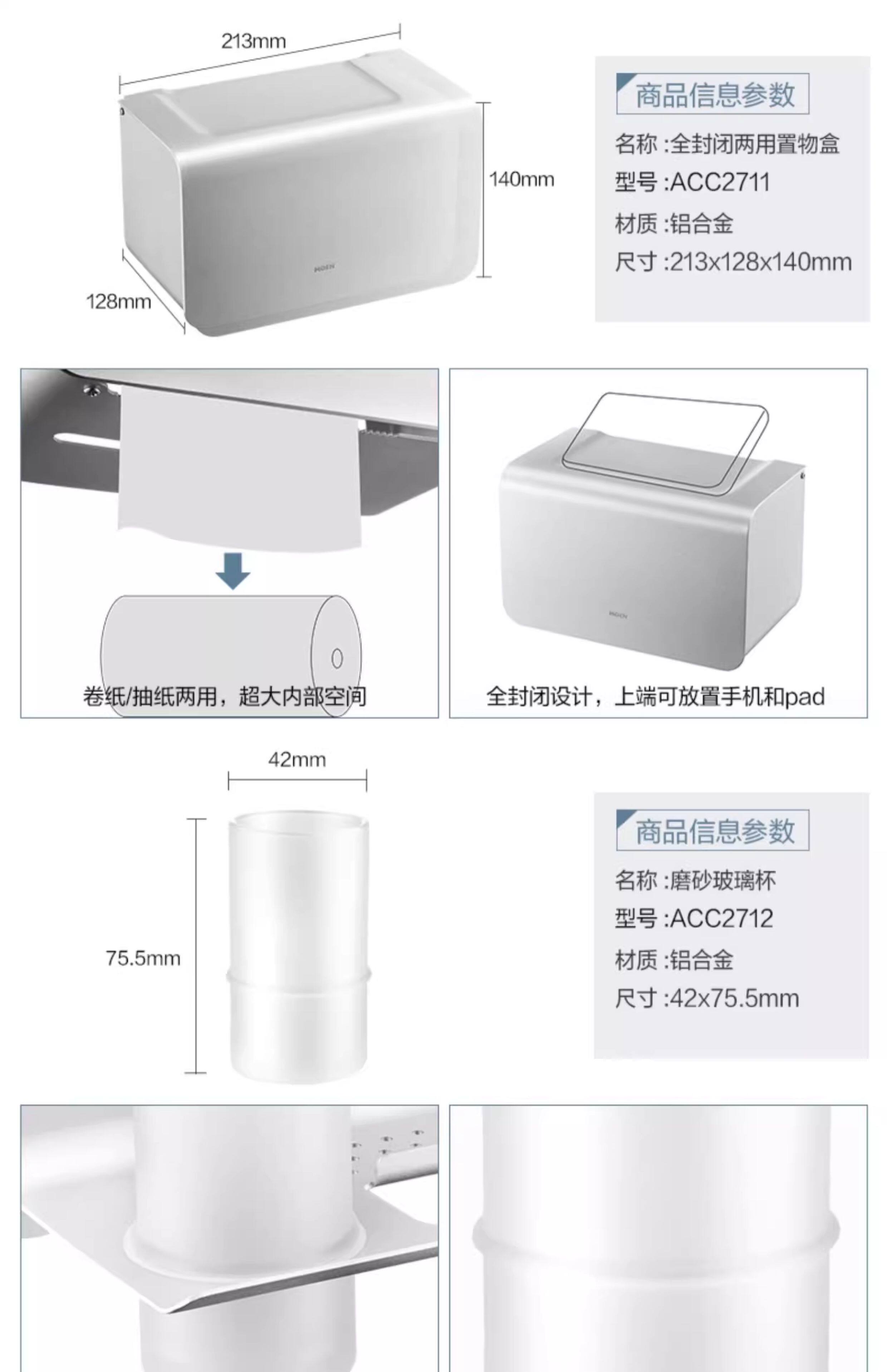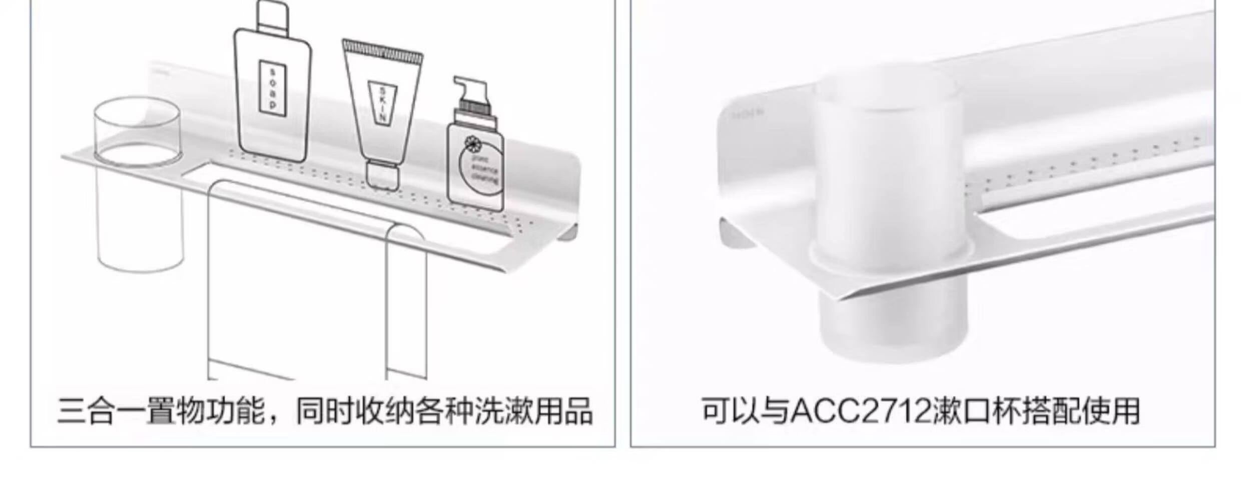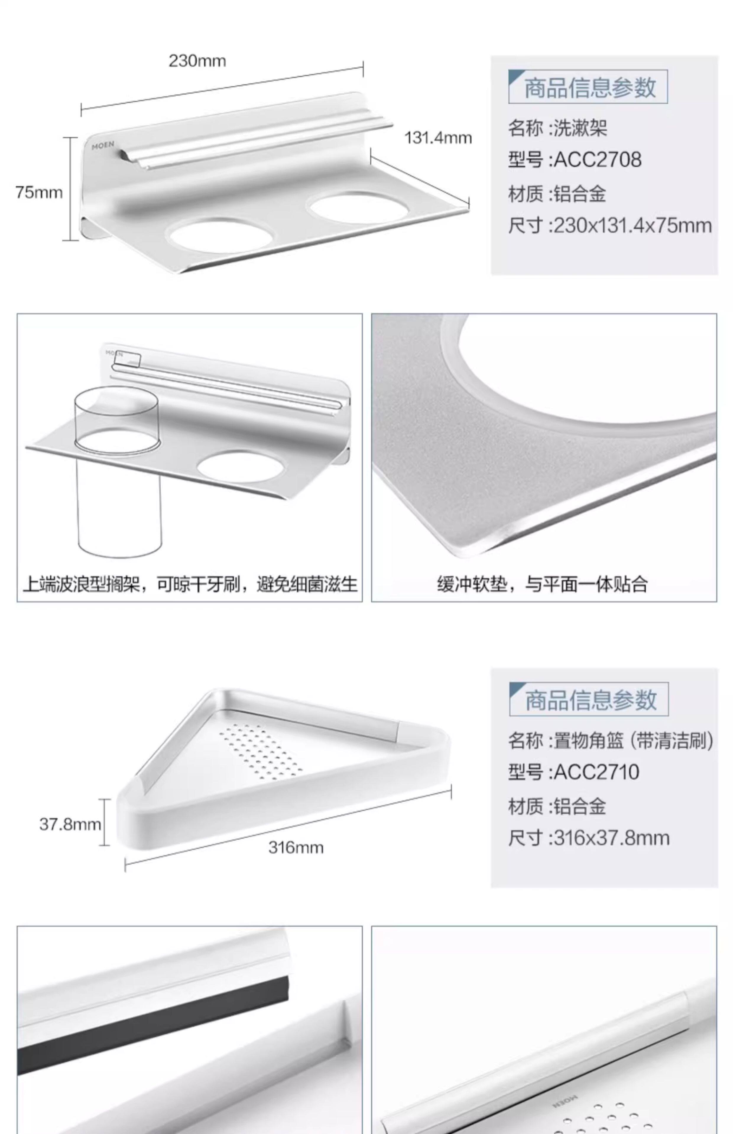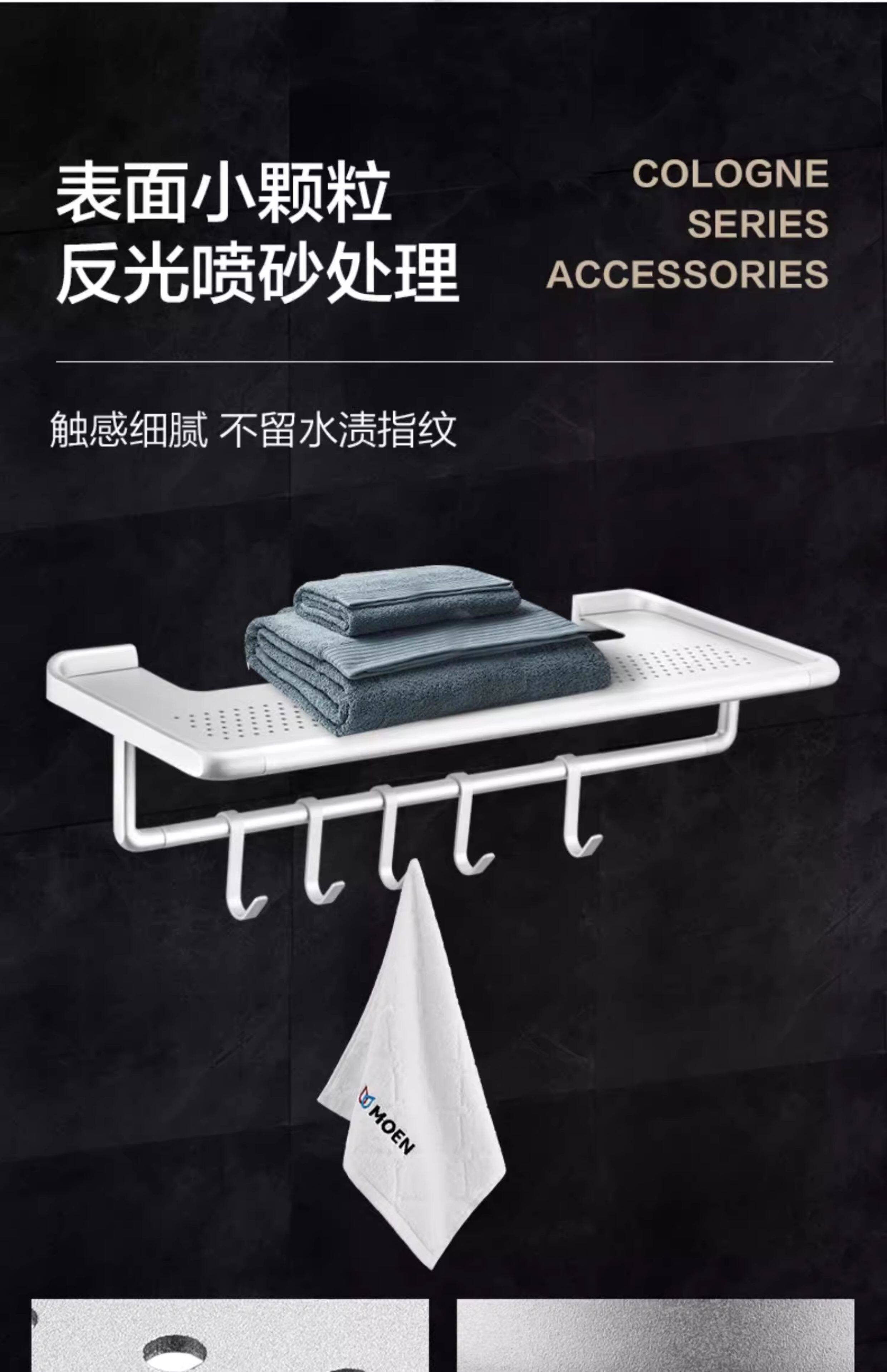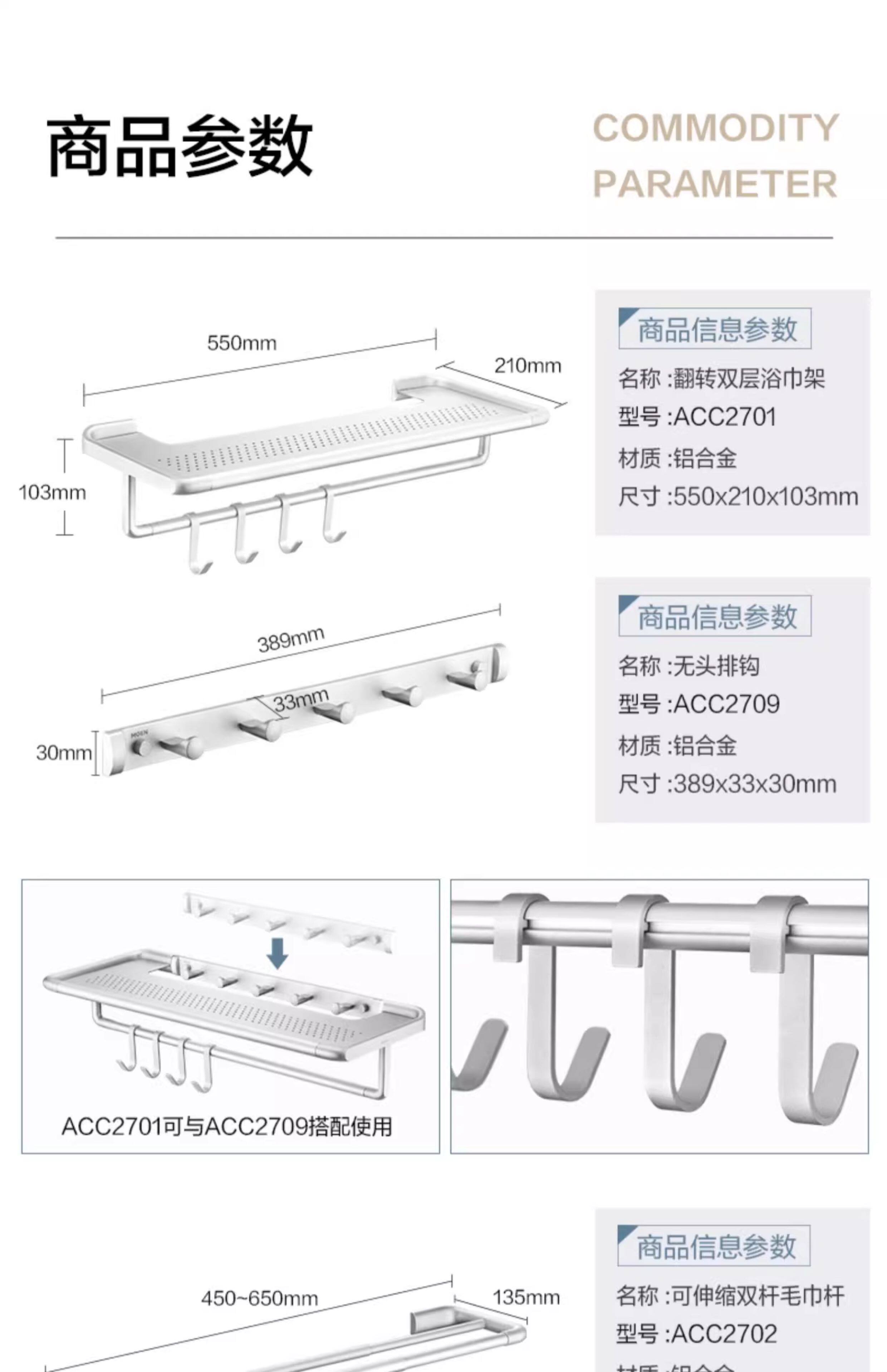 九牧(JOMOO)卫生间置物架双折叠奶白铝合金免打孔防锈耐腐浴室挂件93058系列 【热销大爆款】亮银色7件套