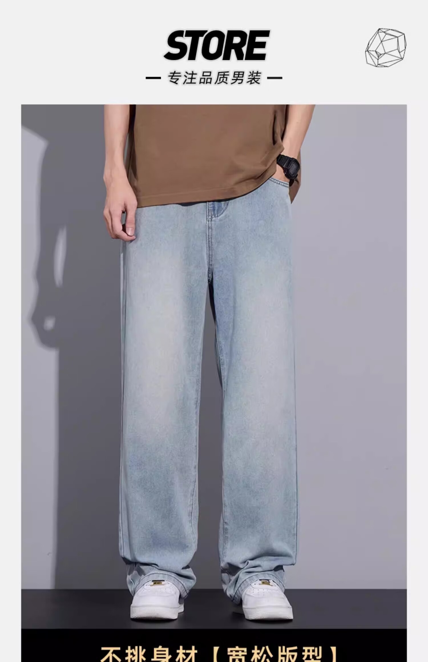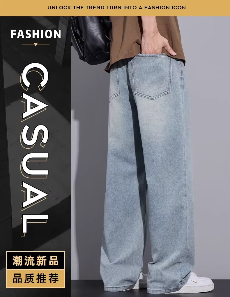 真维斯(Jeanswest)2026春夏季新款复古牛仔裤男士薄款宽松阔腿潮牌直筒休闲长裤子男 浅蓝色 28 【推荐80-100斤】