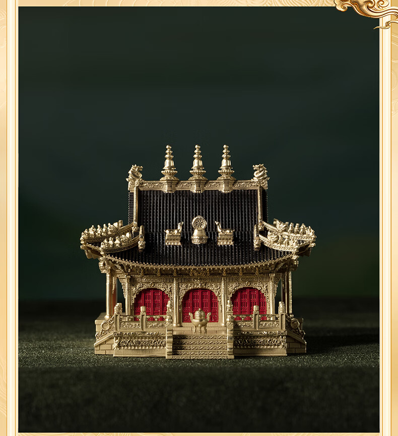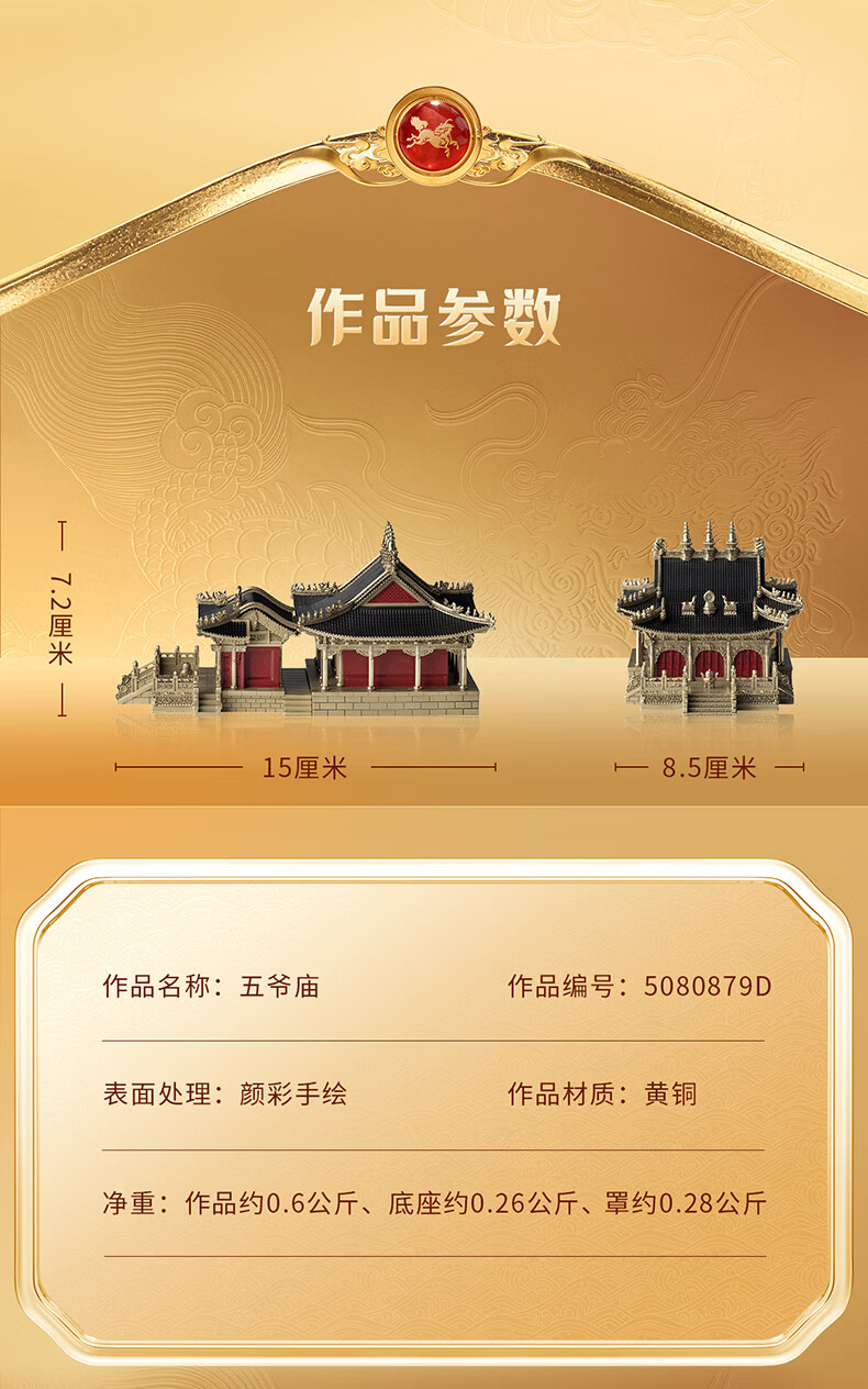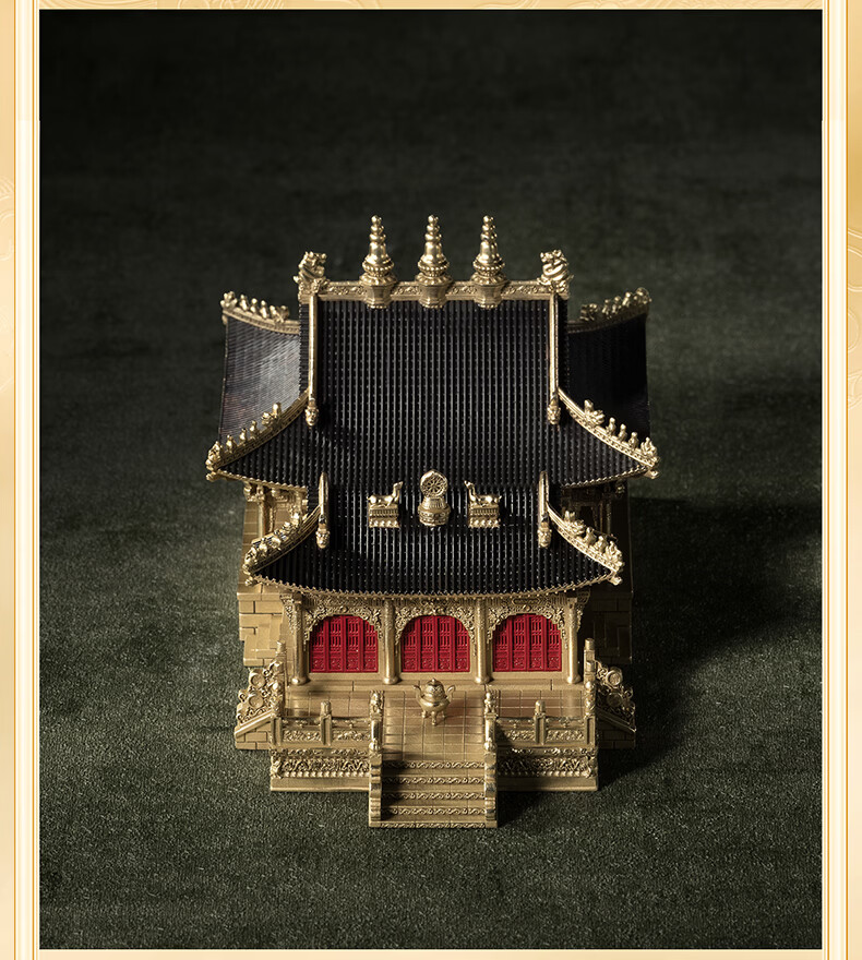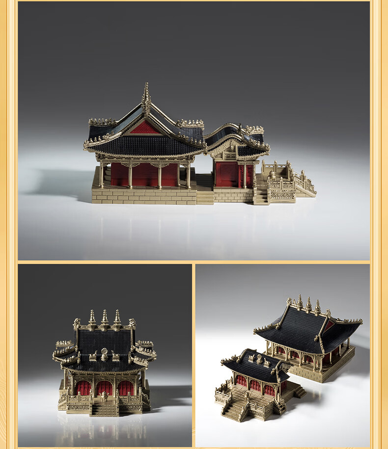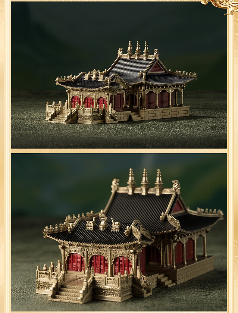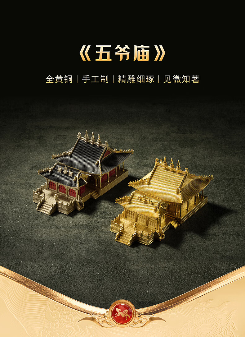 铜师傅见微系列《五爷庙》 客厅桌面龙王庙寺庙铜工艺品家居摆件 五爷庙
