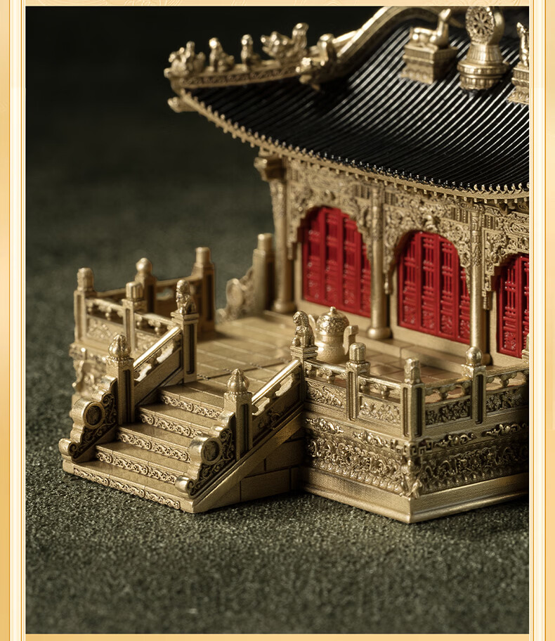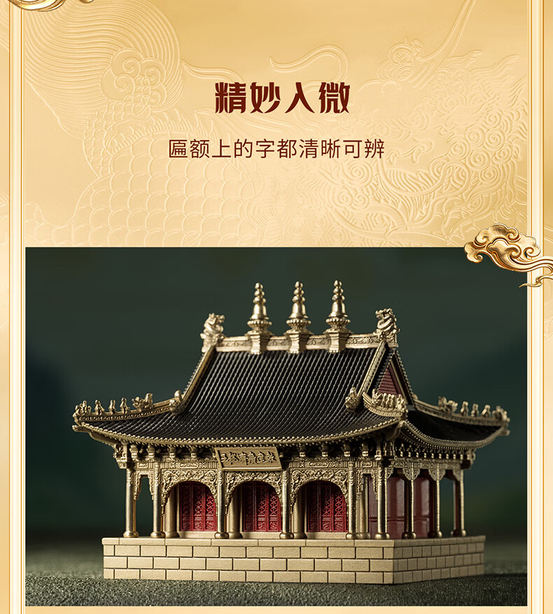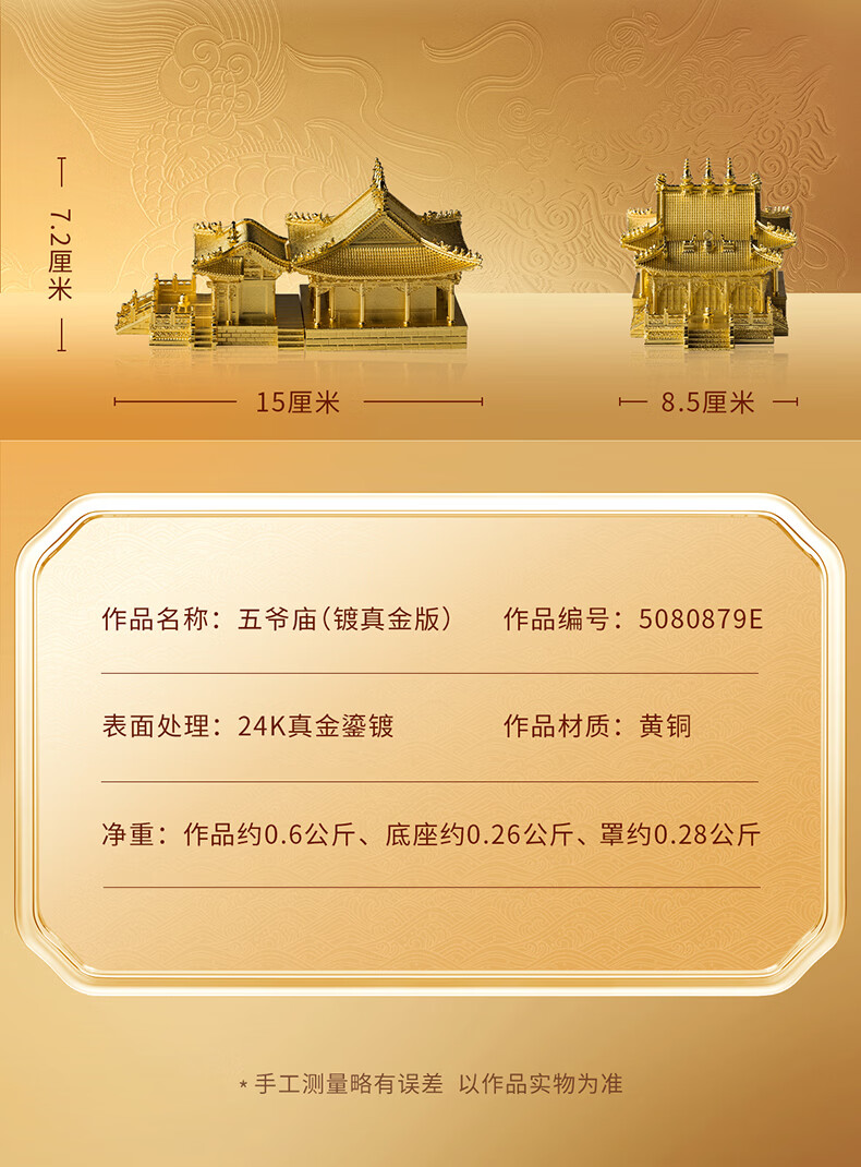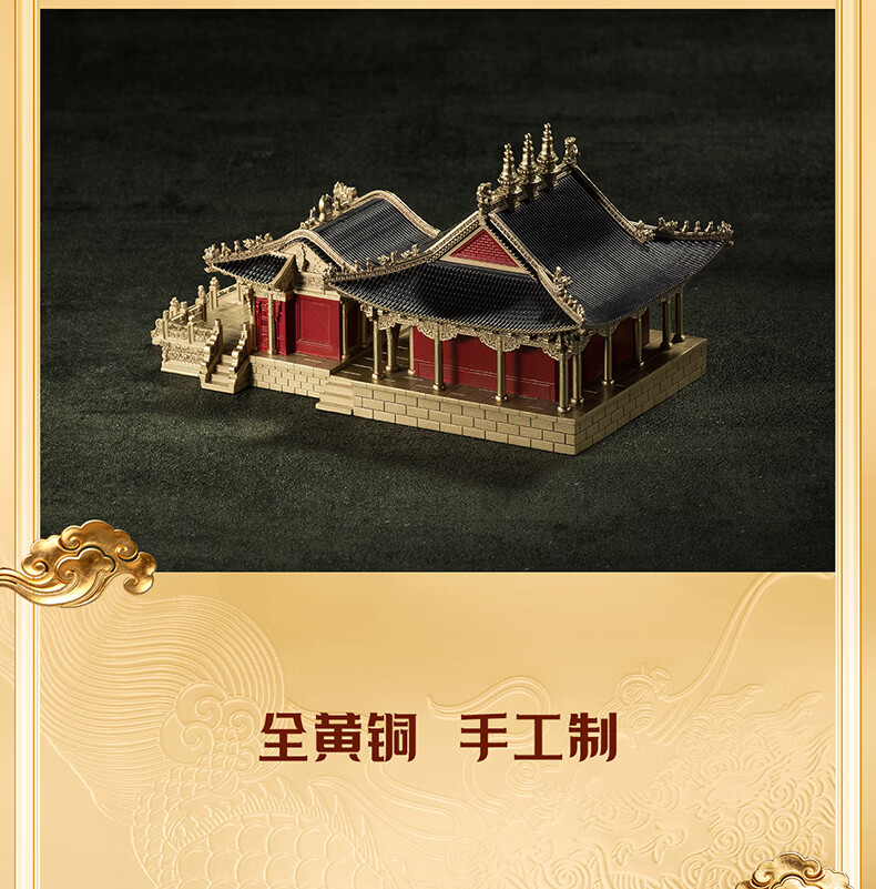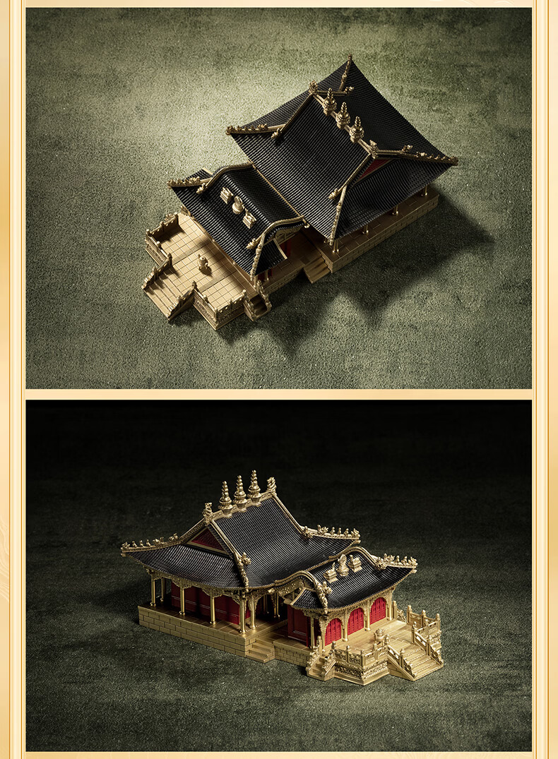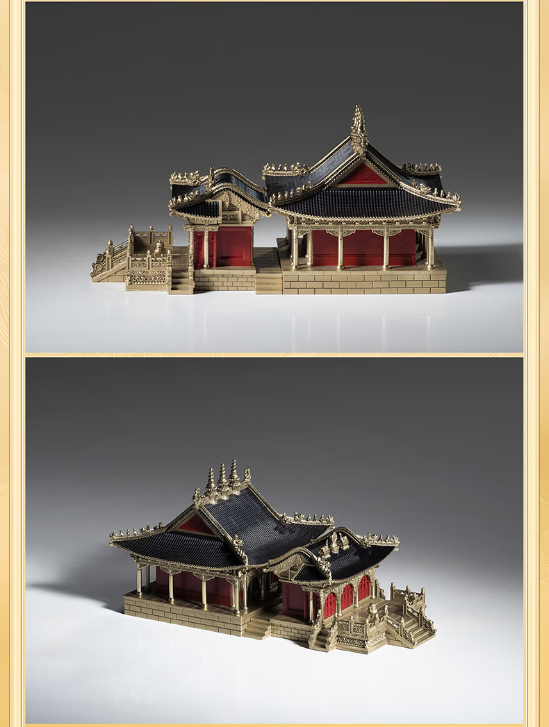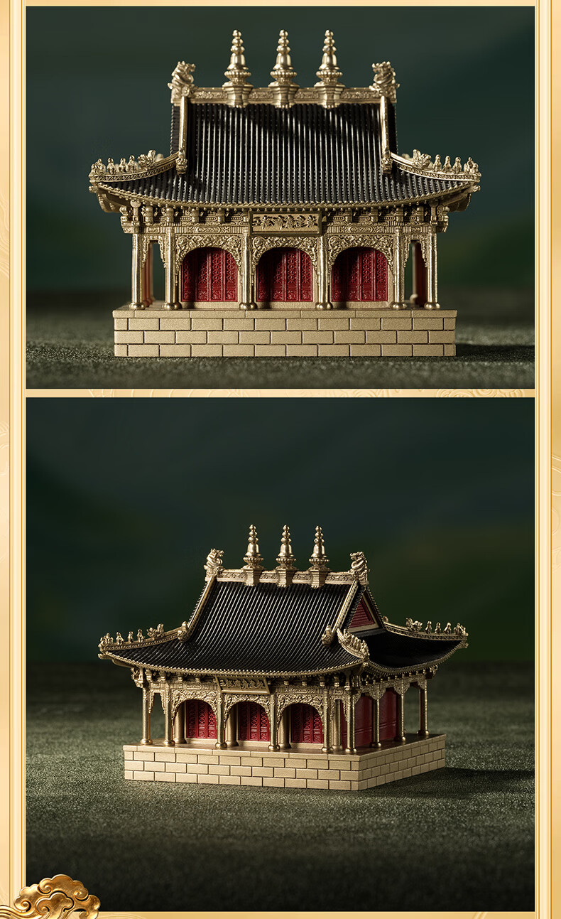铜师傅见微系列《五爷庙》 客厅桌面龙王庙寺庙铜工艺品家居摆件 五爷庙