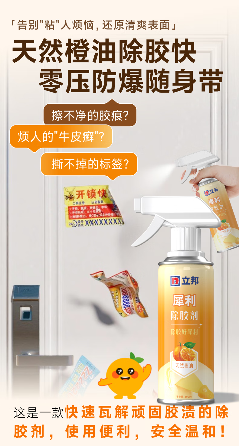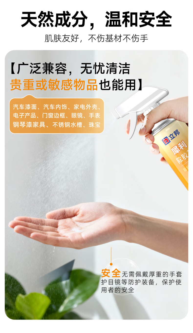 立邦天然除胶剂万能家用去胶神器不伤漆汽车玻璃双面胶带粘痕胶印去除