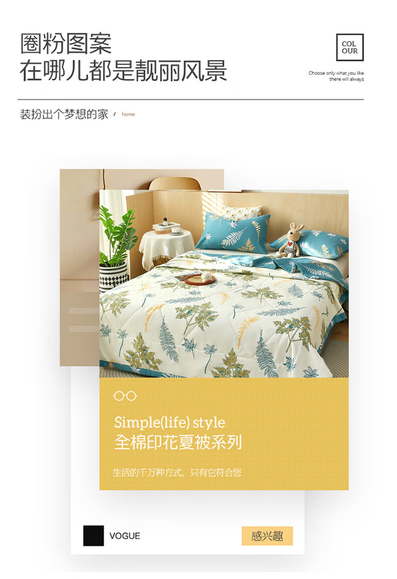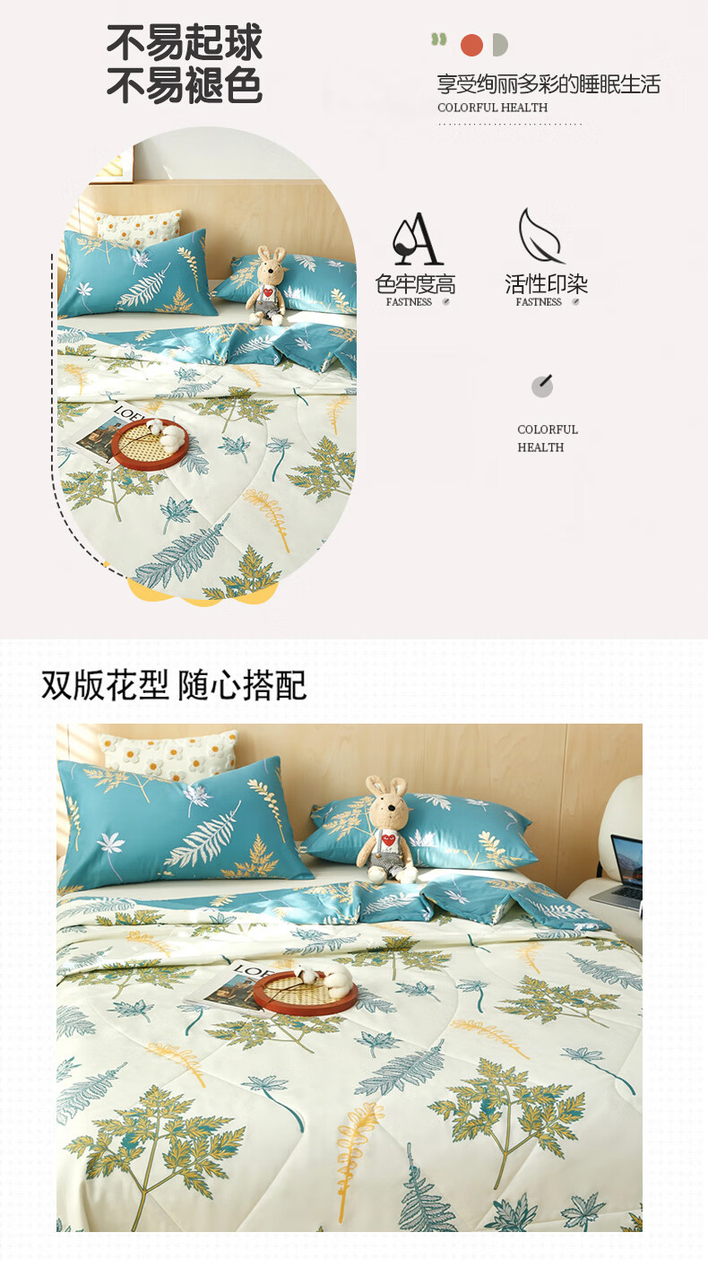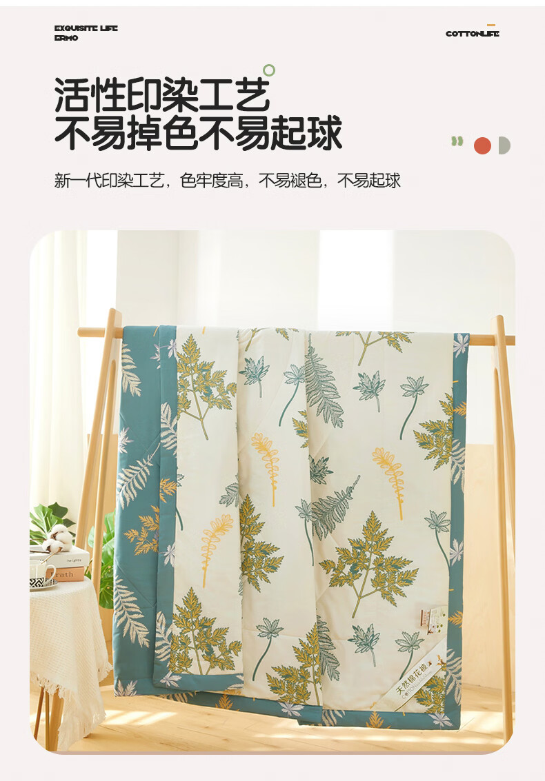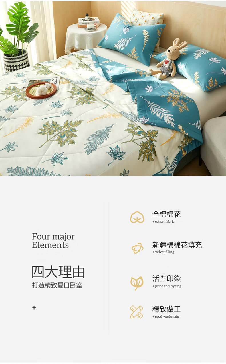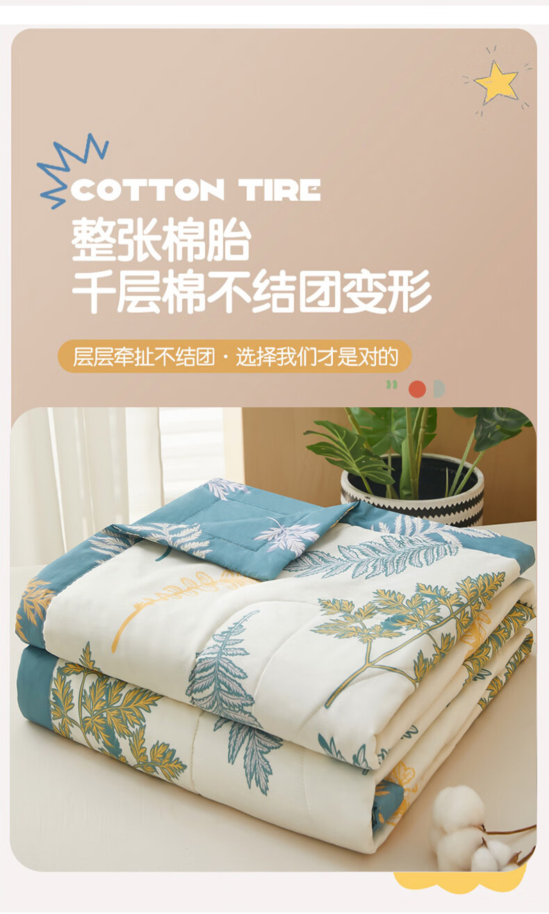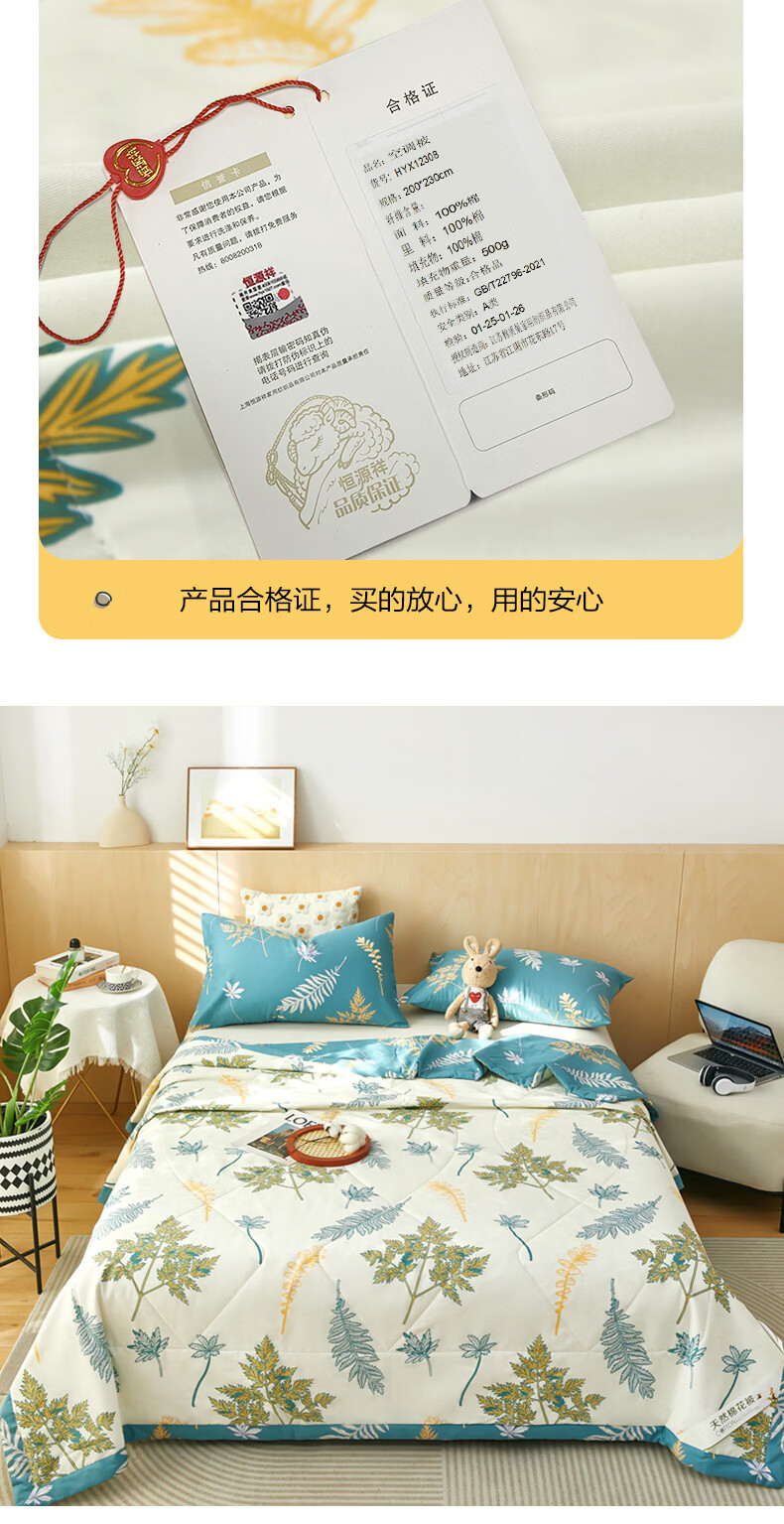 恒源祥 空调被 100%棉花夏凉被子纯棉可机洗午睡单人双人全棉被芯夏季 【全棉A类+新品上市】法式田园 150x200cm【夏被单件】