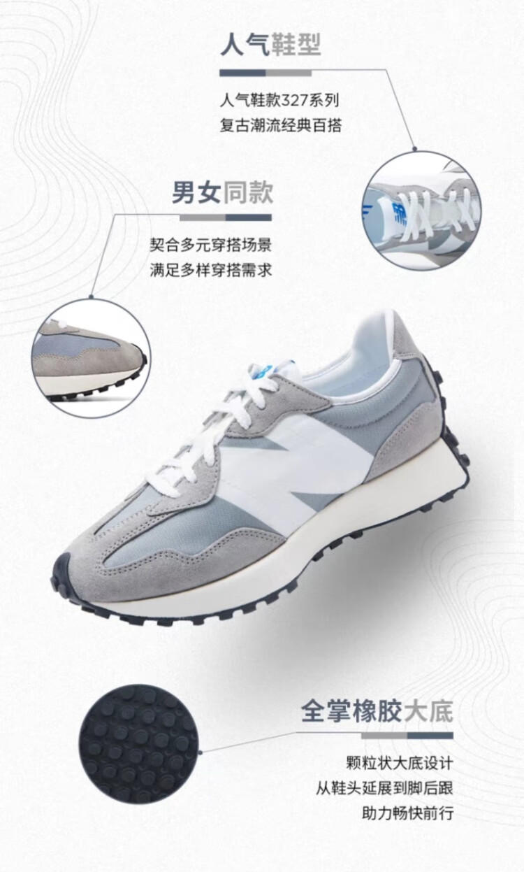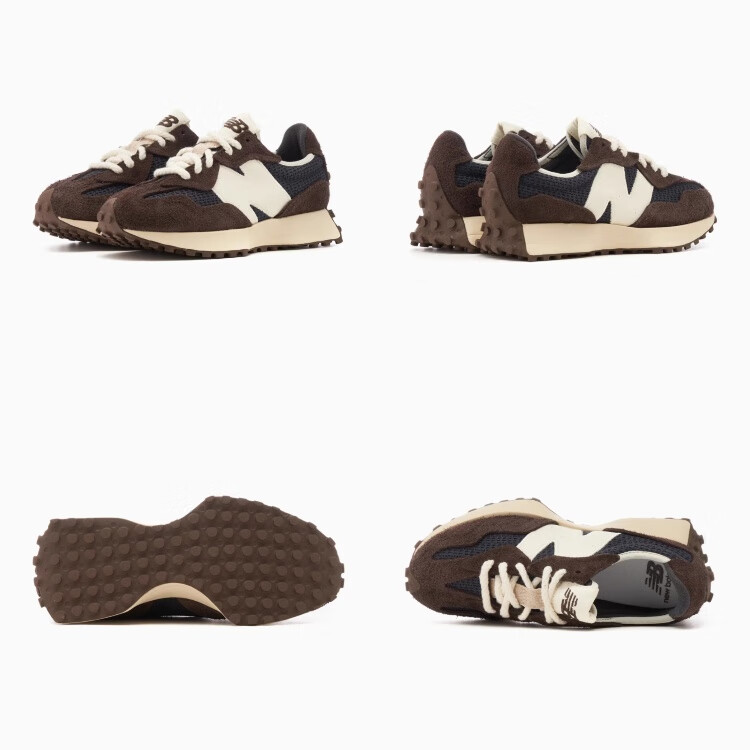 新百伦男女款 327系列复古休闲运动跑步鞋 深棕|米白 45