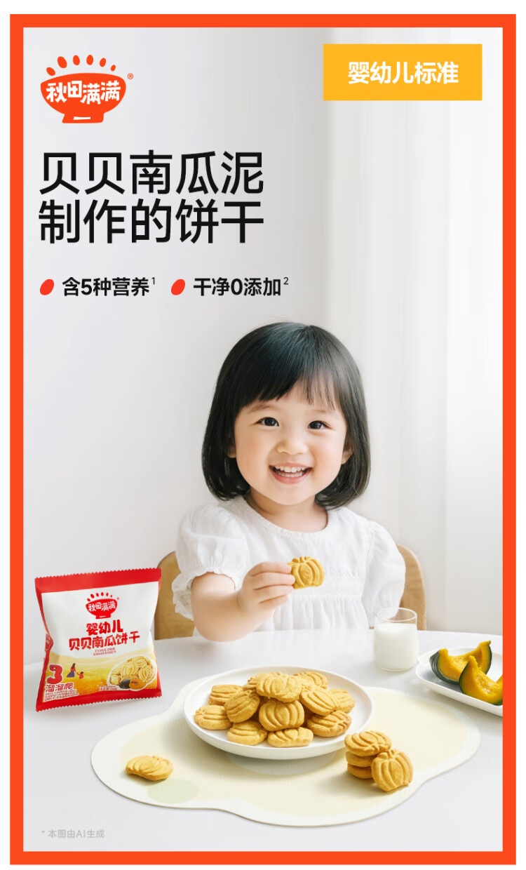 秋田满满婴幼儿贝贝南瓜饼干 宝宝零食 不添加食用盐香精儿童饼干 【婴标】婴幼儿贝贝南瓜饼干18g