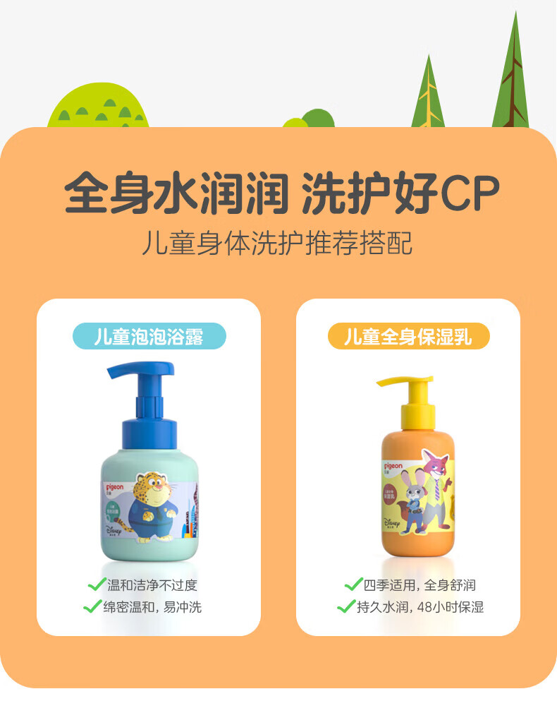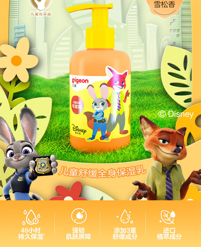 贝亲(Pigeon)儿童面霜 儿童身体乳 宝宝身体乳 宝宝润肤乳 男女童润肤露 【疯狂动物城】全身保湿乳180ml