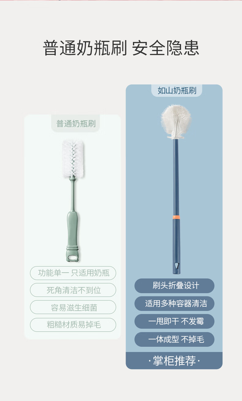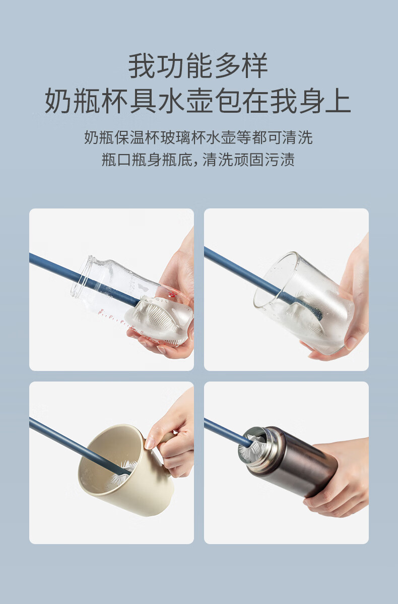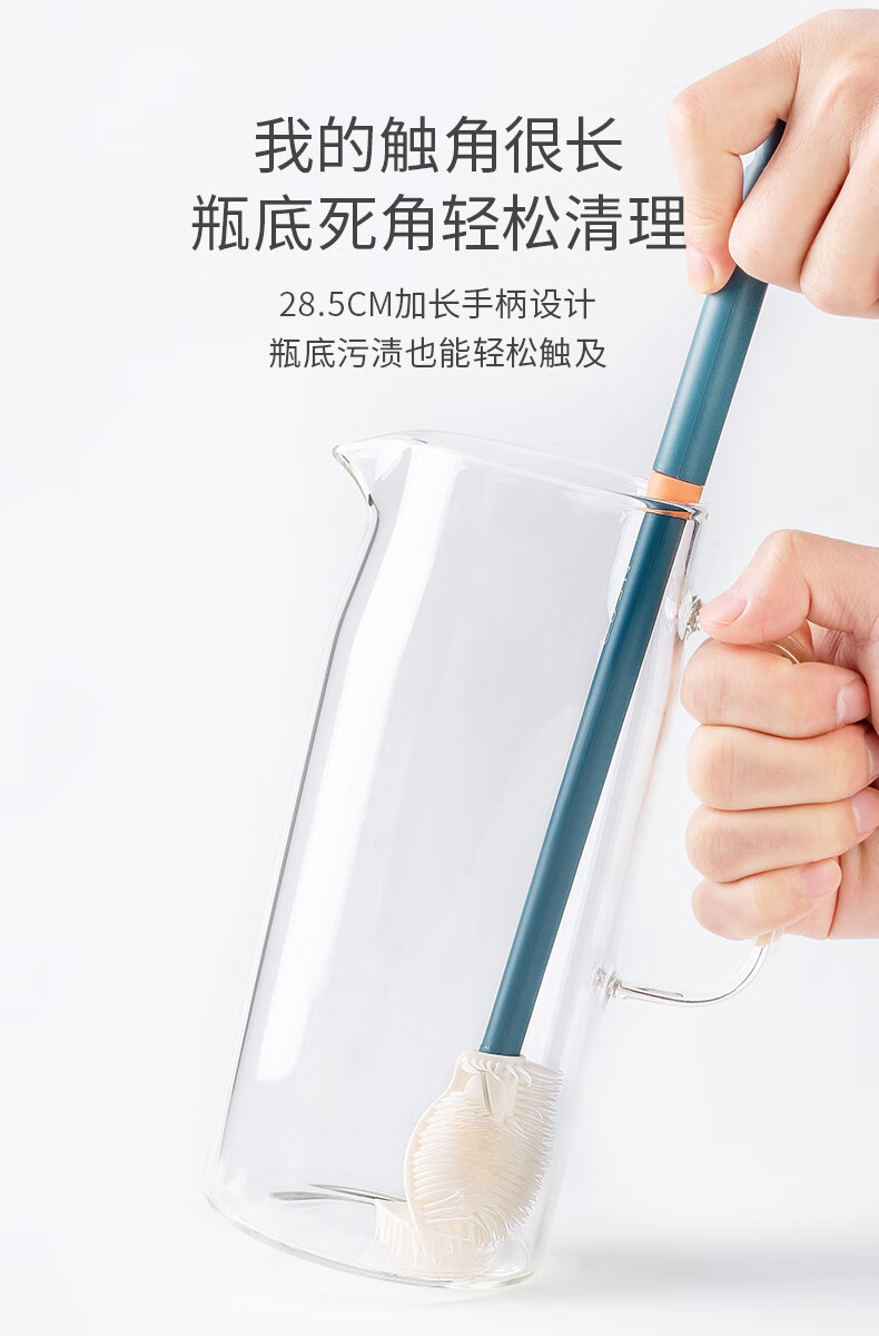 如山奶瓶刷清洁刷洗婴儿专用硅胶清洗刷宝宝儿童杯刷奶瓶刷吸管刷 复古绿-防滑3件套+置物架