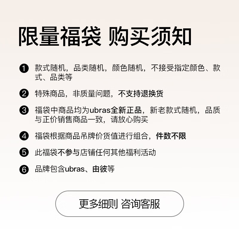 ubras限购一单【超值福袋】价值2000元 款式随机 品类不限 福袋【尺码不可选择】 1条