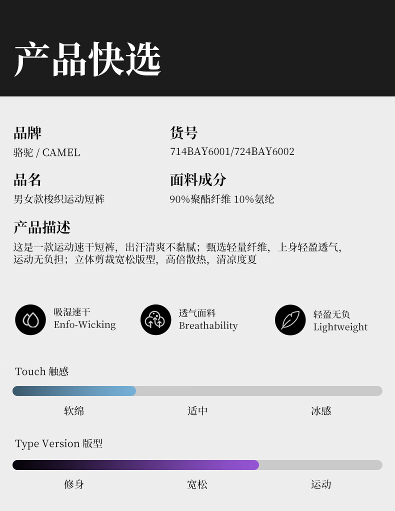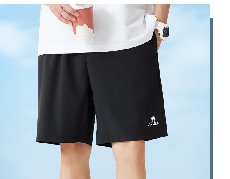 骆驼(CAMEL)运动速干短裤男士弹力宽松直筒户外休闲跑步五分裤夏季M13BZ00102
